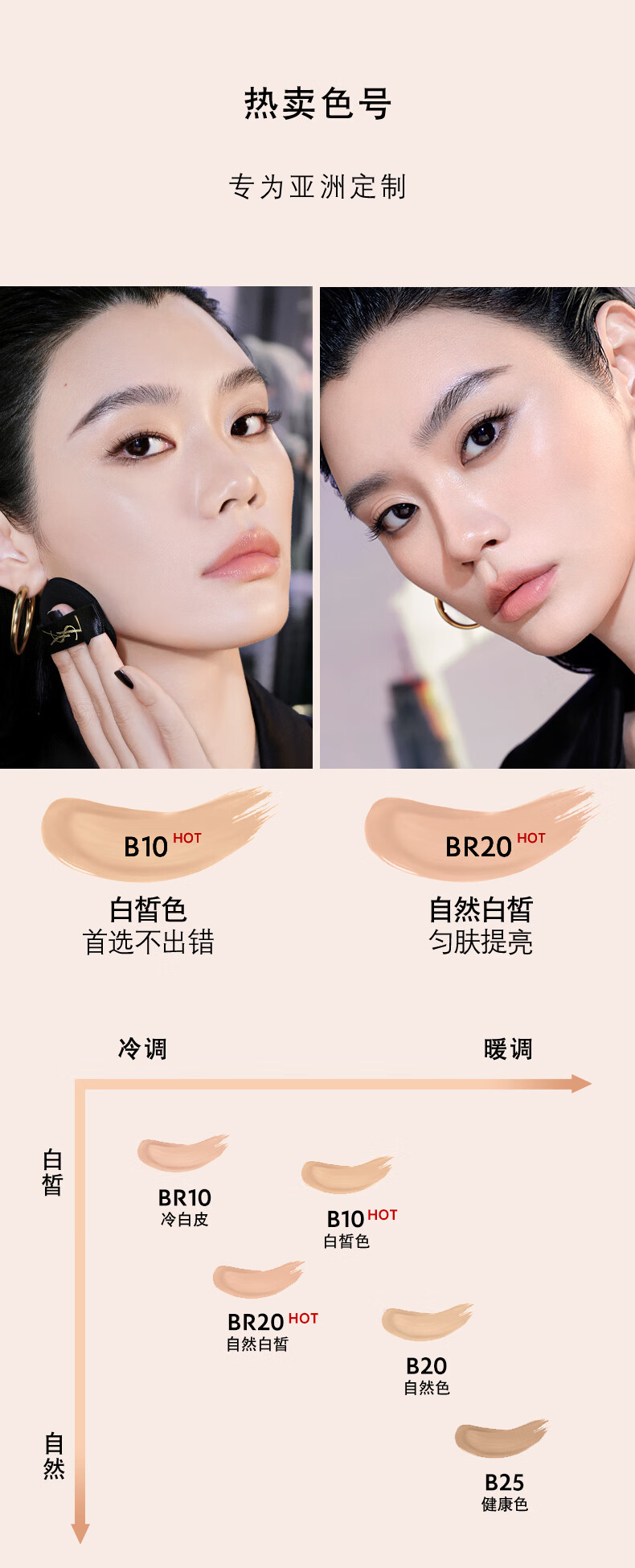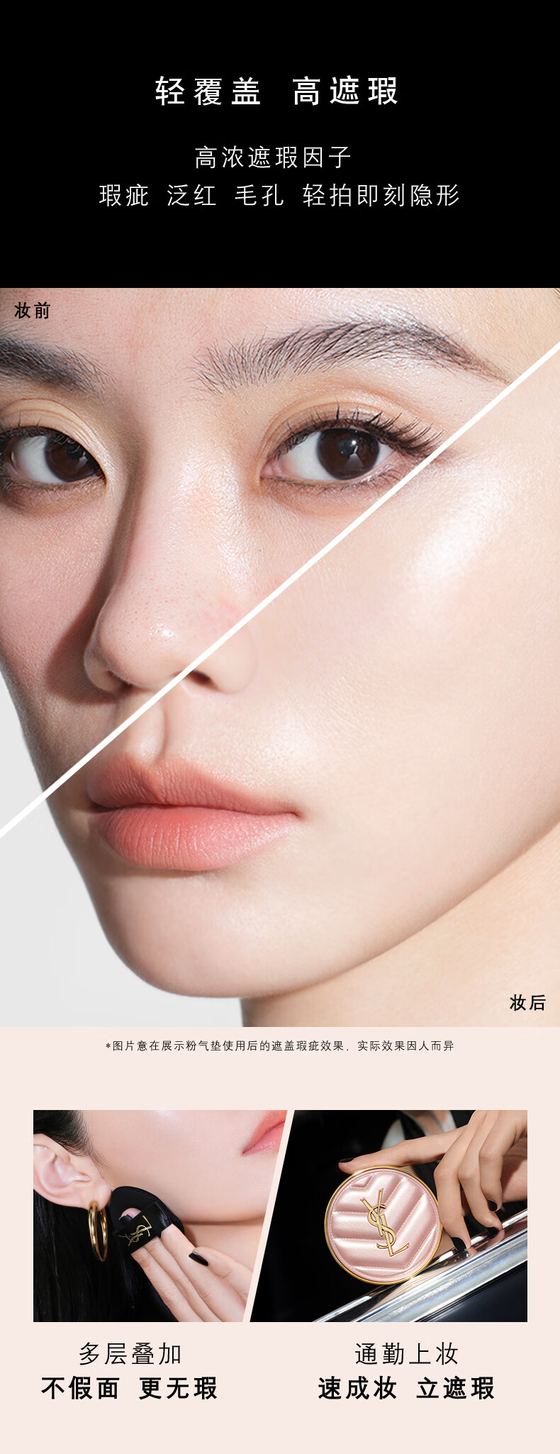 YSL圣罗兰粉气垫BR20干皮挚爱遮瑕持久防晒化妆品生日礼物送女友新年礼物