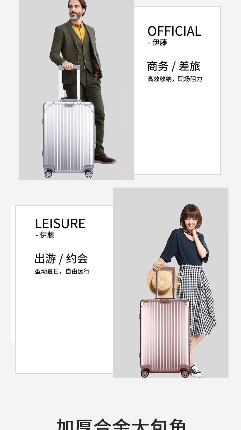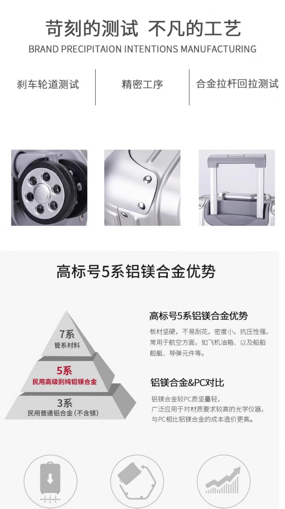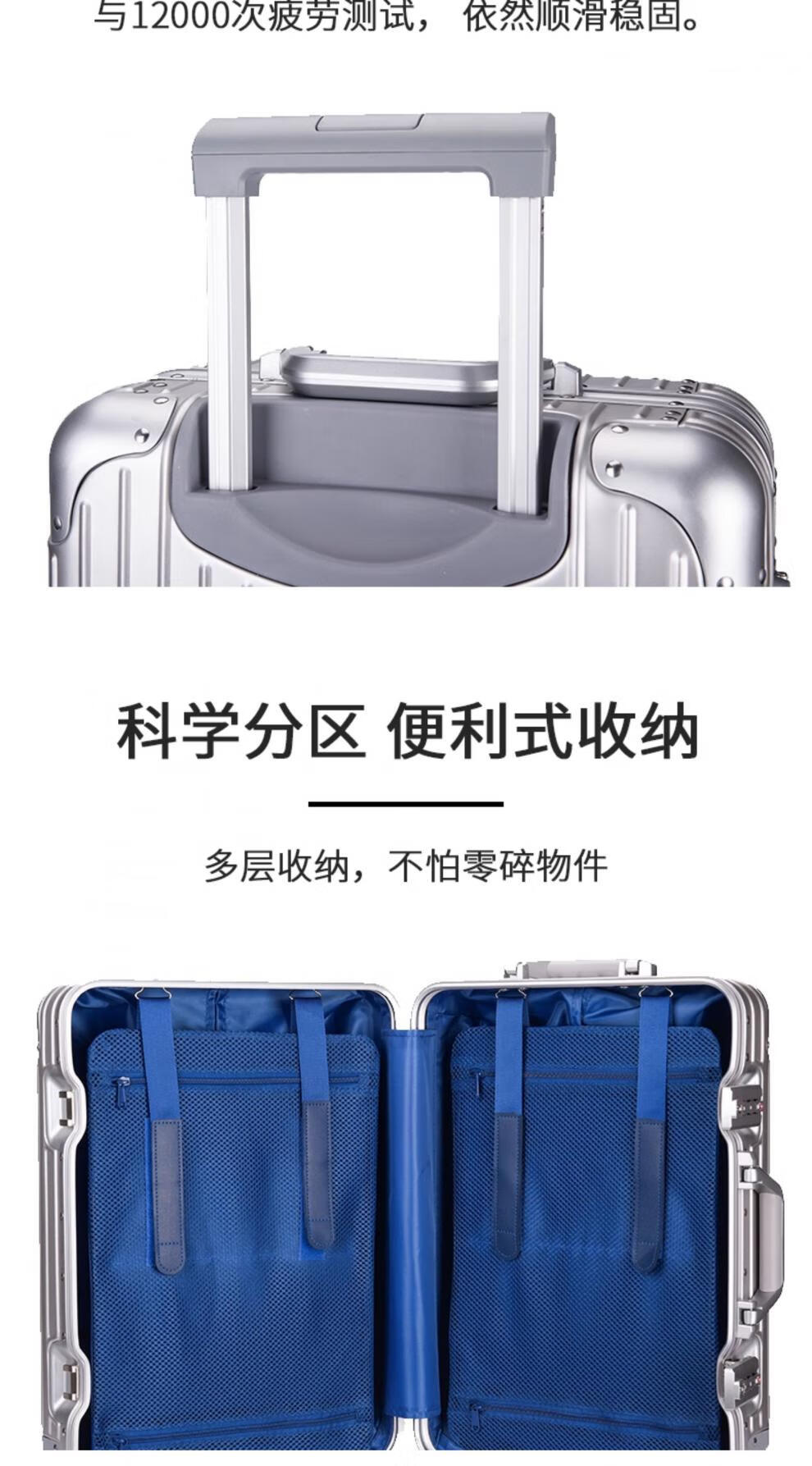 伊藤全铝镁合金拉杆箱行李箱万向轮24寸旅行箱商务20寸密码登机箱 银色 20寸