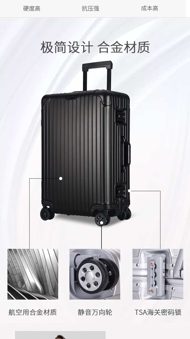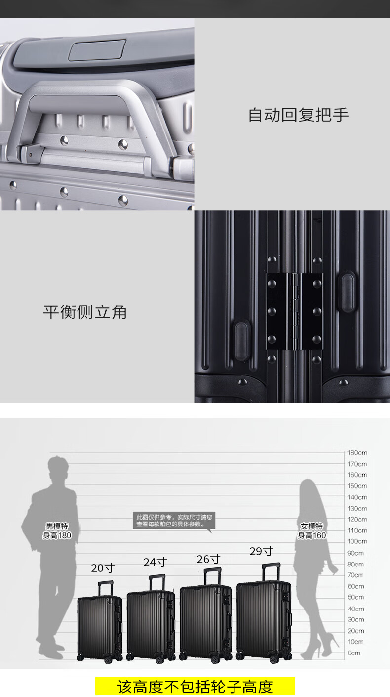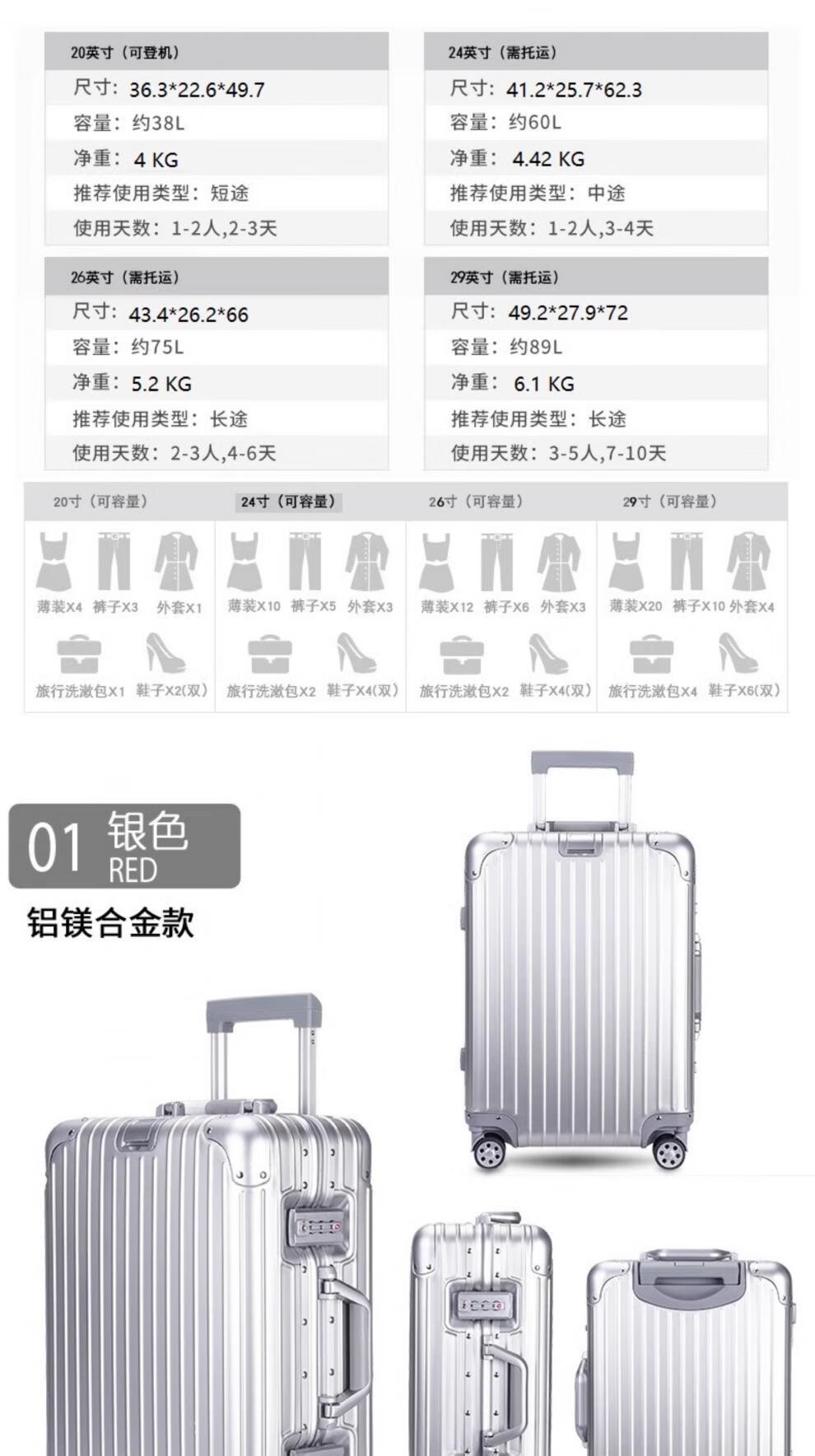 伊藤全铝镁合金拉杆箱行李箱万向轮24寸旅行箱商务20寸密码登机箱 银色 20寸