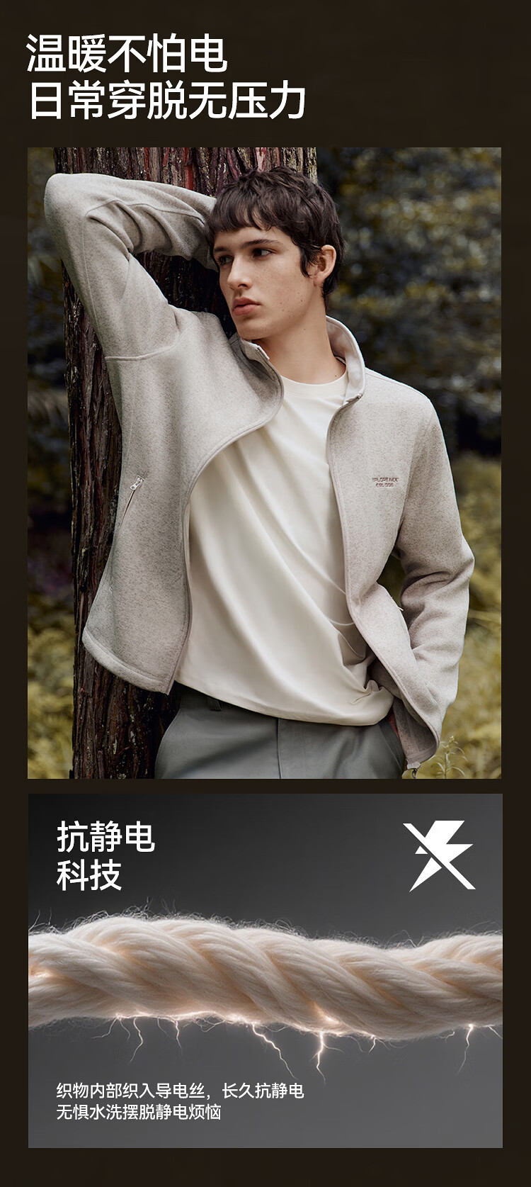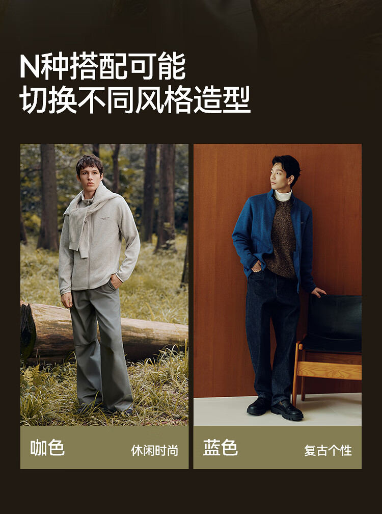 森马(Semir)外套男抗静电花纱针织夹克立领2025秋冬新款绣花上衣休闲时尚 咖色调00355 M