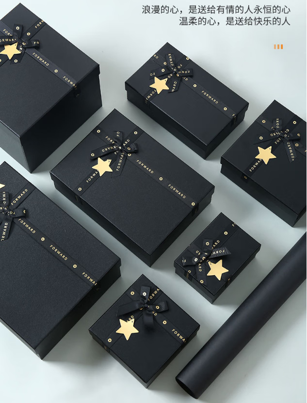 礼物盒送男生礼物包装盒礼品盒生日盒子黑色高级感教师节礼盒空盒 黑色星星20*18*8cm礼盒+礼袋