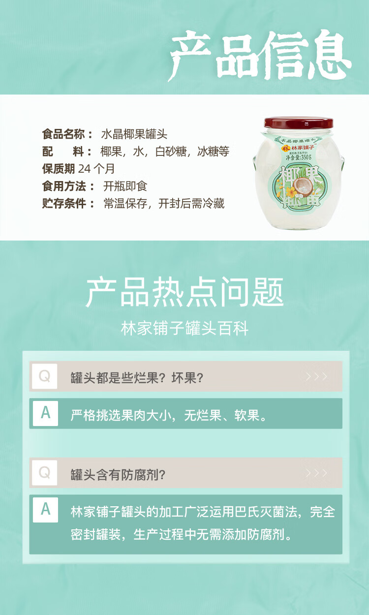 林家铺子糖水 椰果水果罐头 350*3罐 玻璃罐送父母朋友儿童零食即食