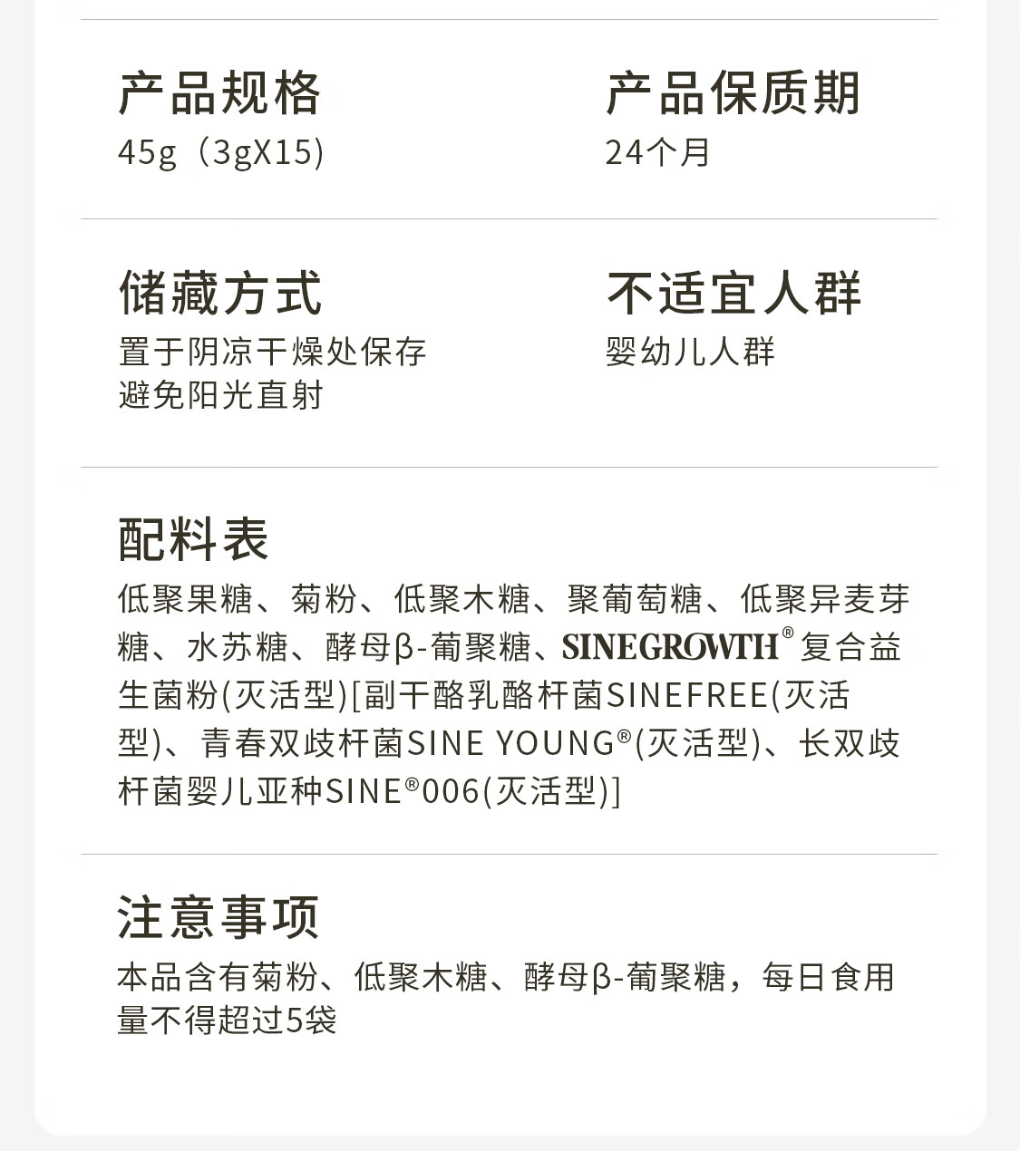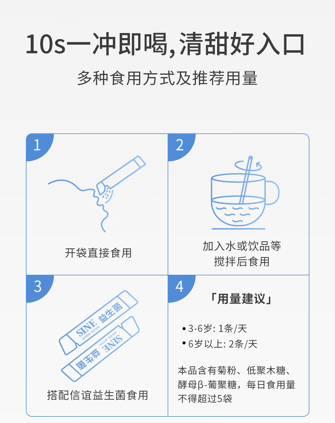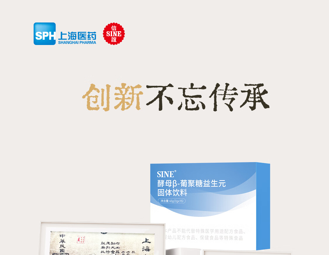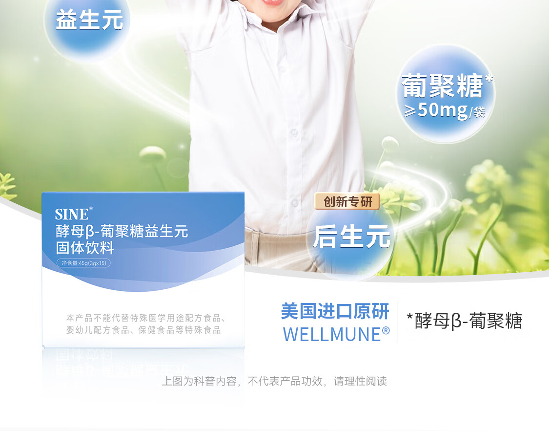 信谊SINE酵母β-葡聚糖添加益生元后生元膳食纤维固体饮料3g*15 15条*1盒