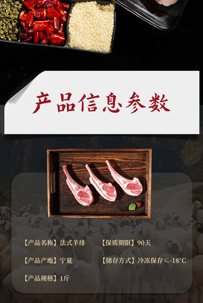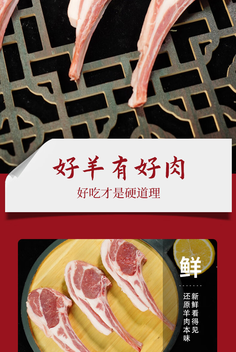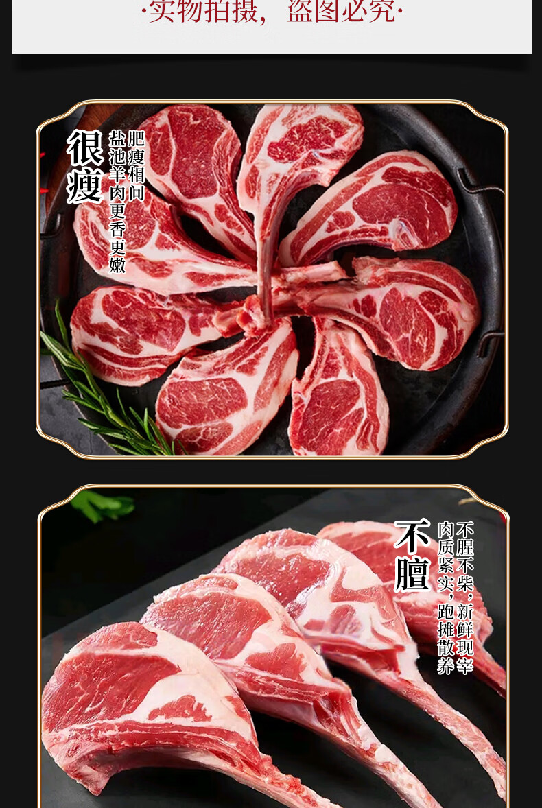 不倦羊宁夏滩羊 原切法式羊排1斤 新鲜羔羊战斧小羊排羔羊肋排 源头直发