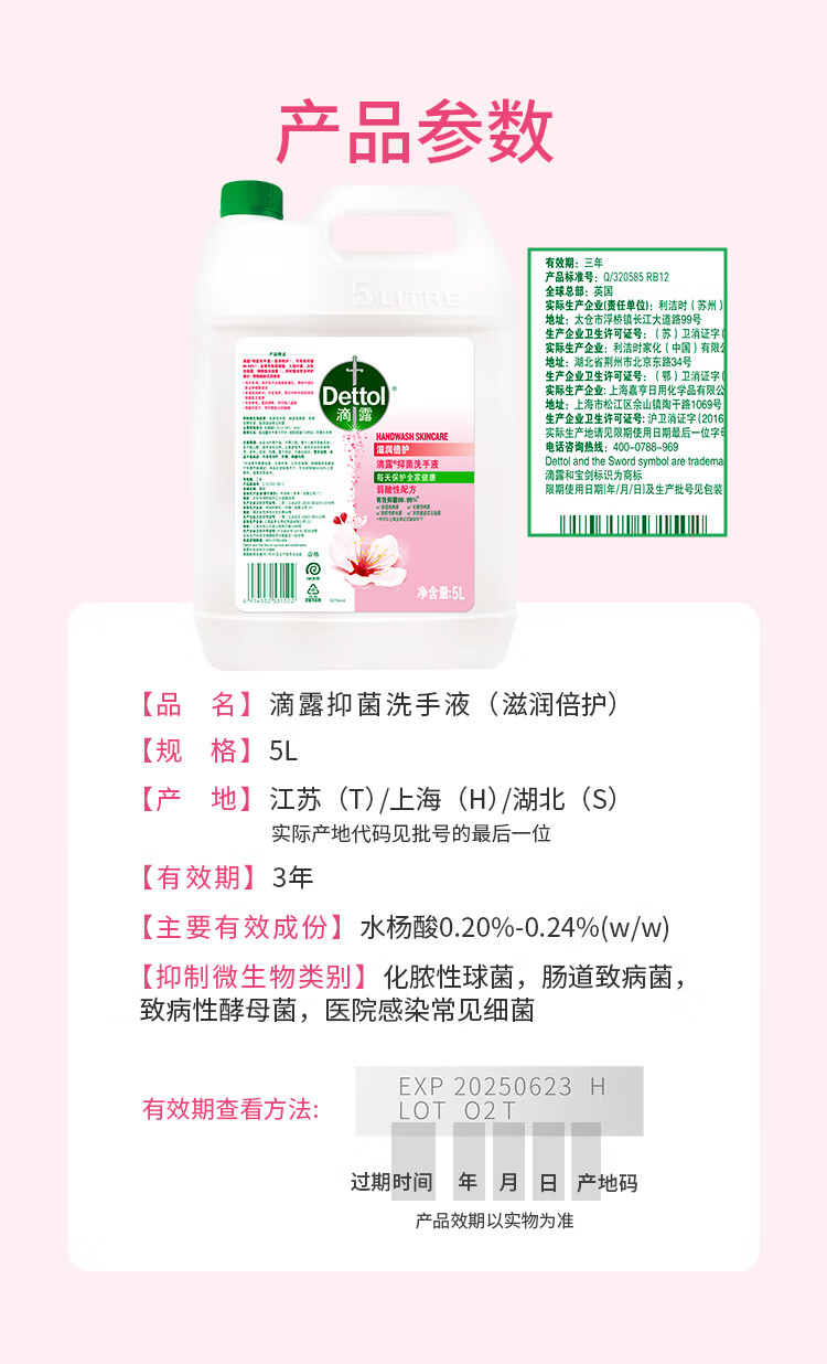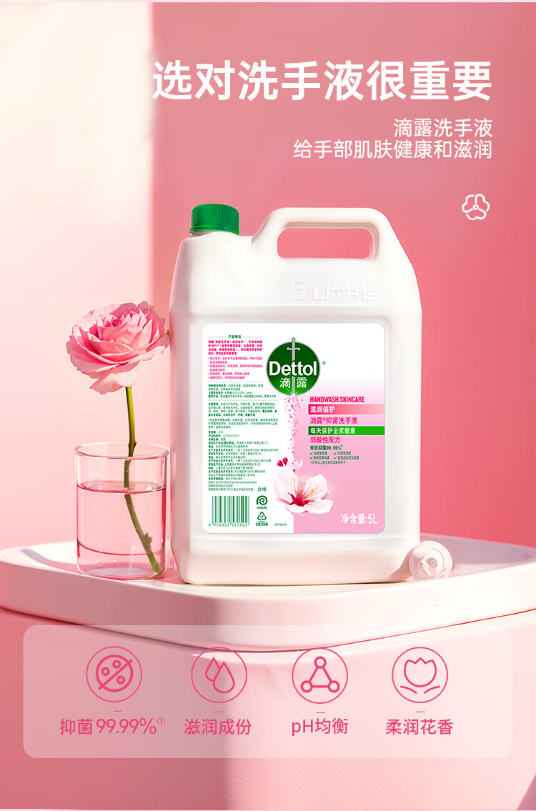 滴露抑菌99.99% 滋润倍护洗手液补充装 大桶家庭装酒店餐厅通用5L 抑菌洗手液滋润倍护5L