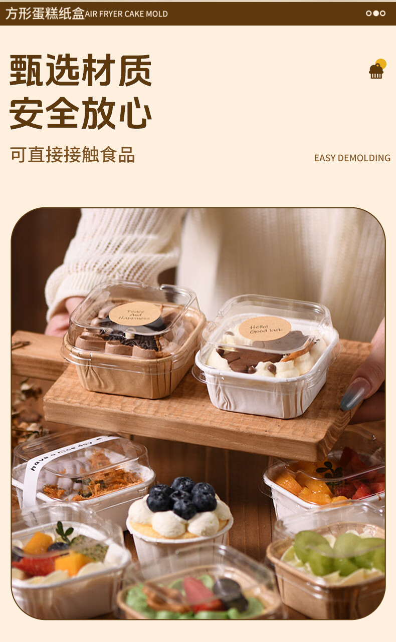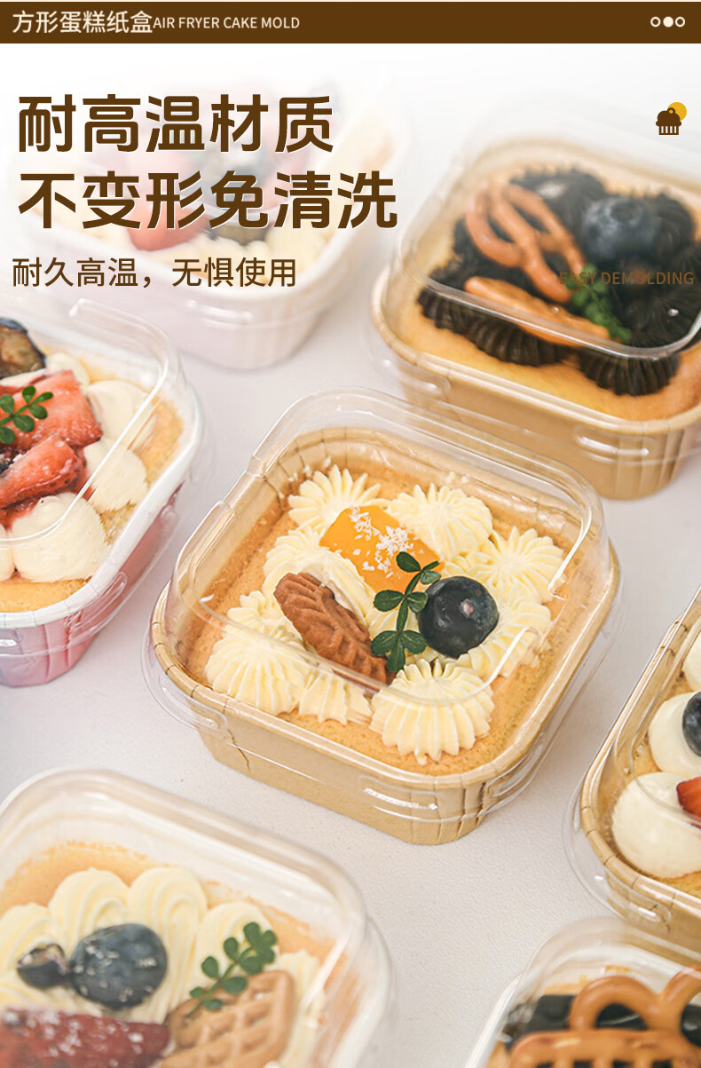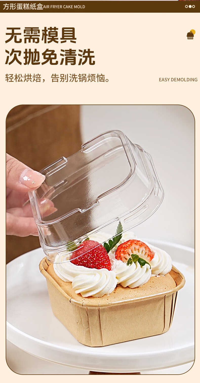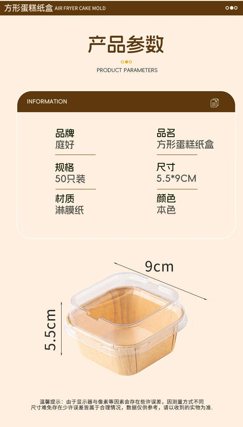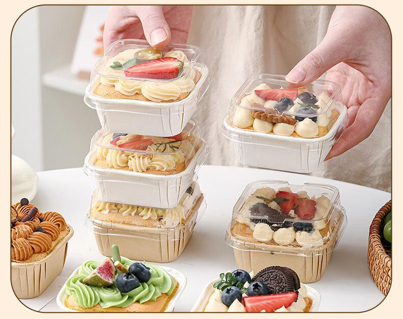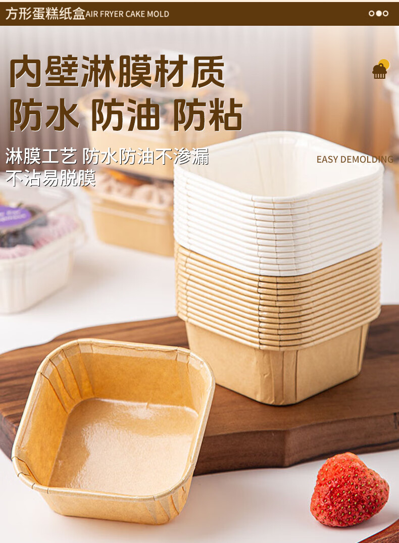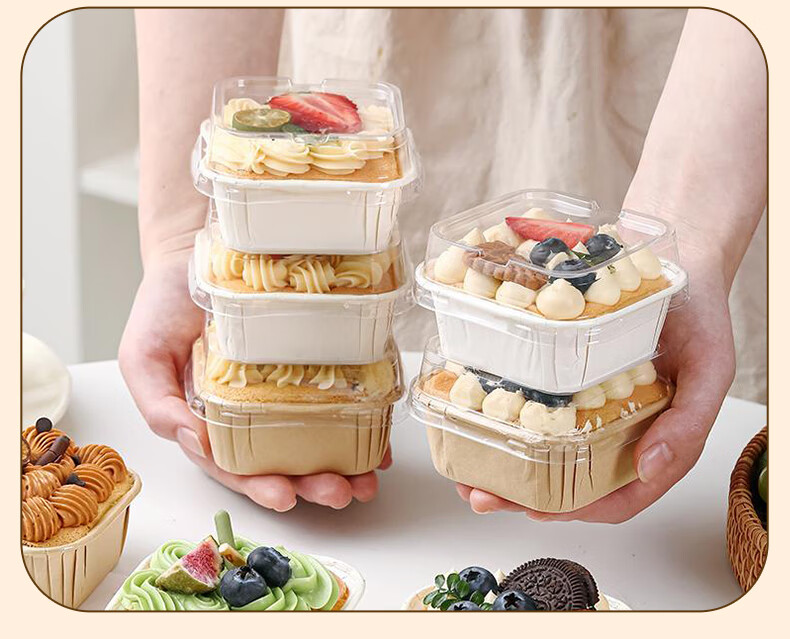 庭好纸杯蛋糕模具50只方形一次性带盖烘焙纸托工具面包包装盒杯子