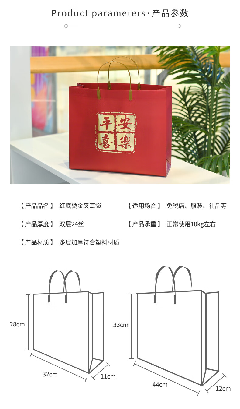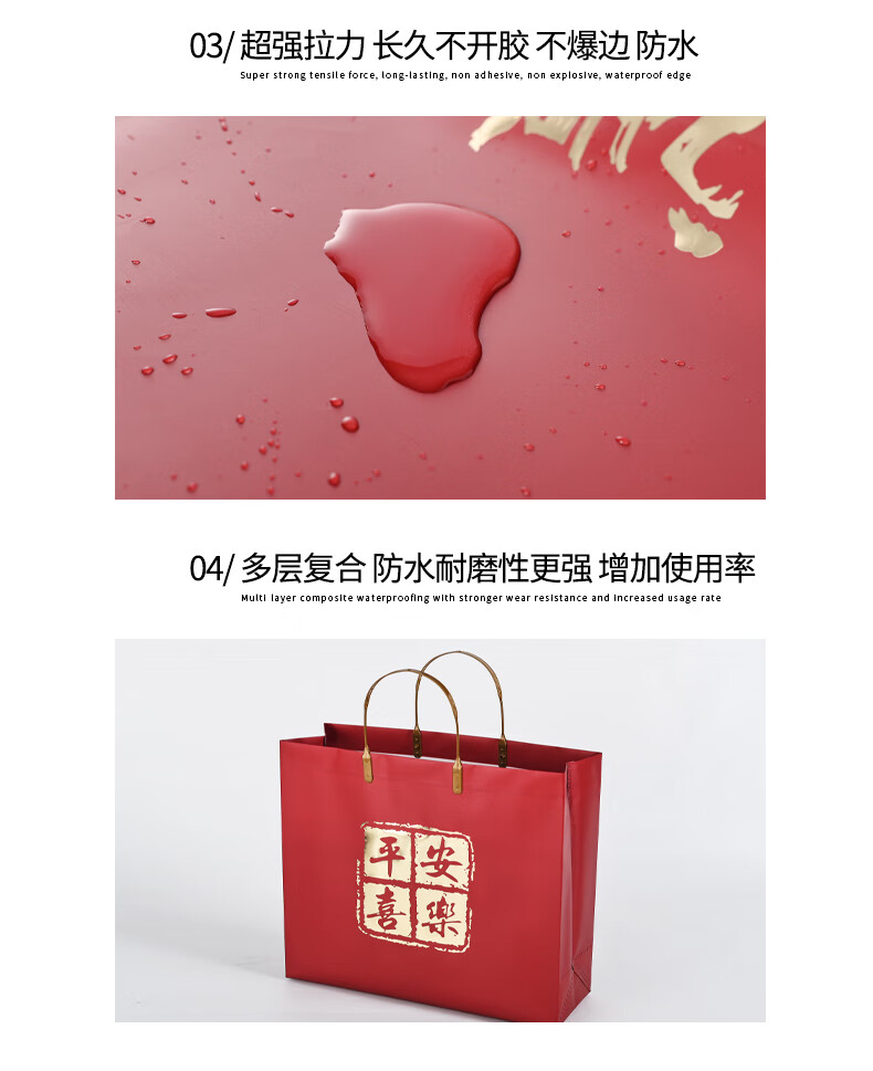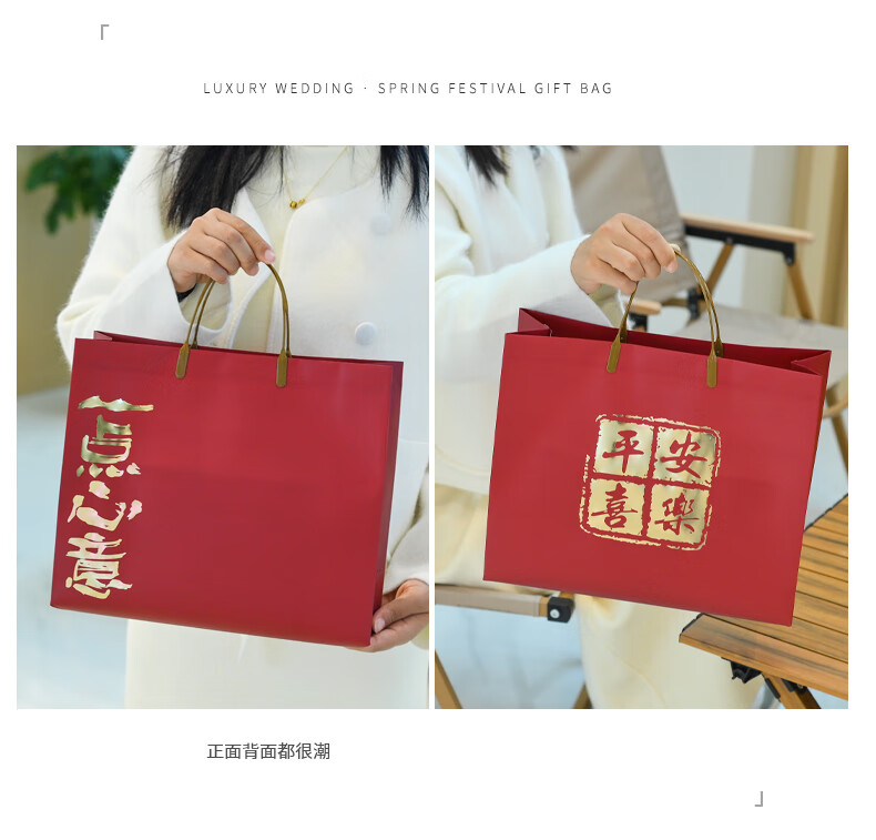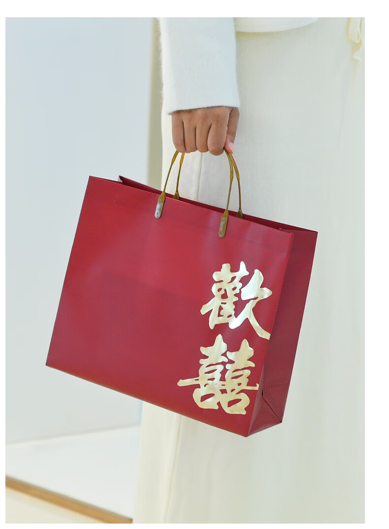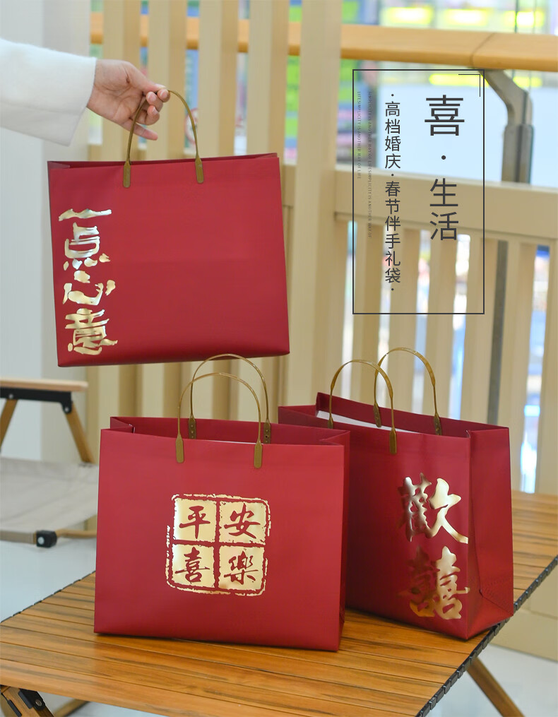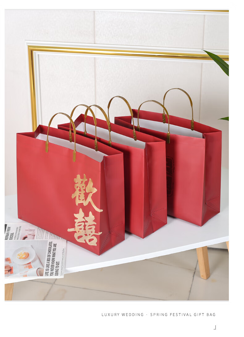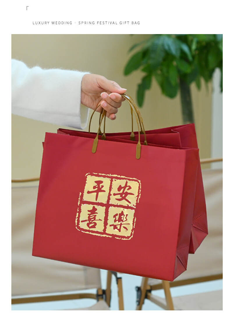 红色礼品袋手提袋防水包装袋子礼物袋礼盒礼袋伴手礼高级感袋子 平安喜乐【5个】 32*28*11cm