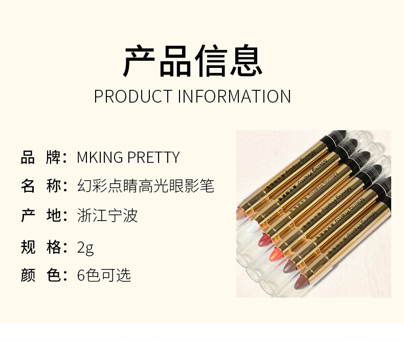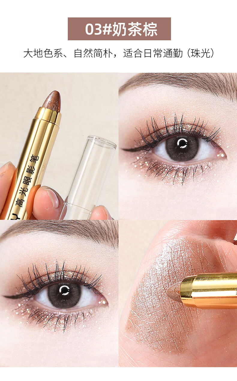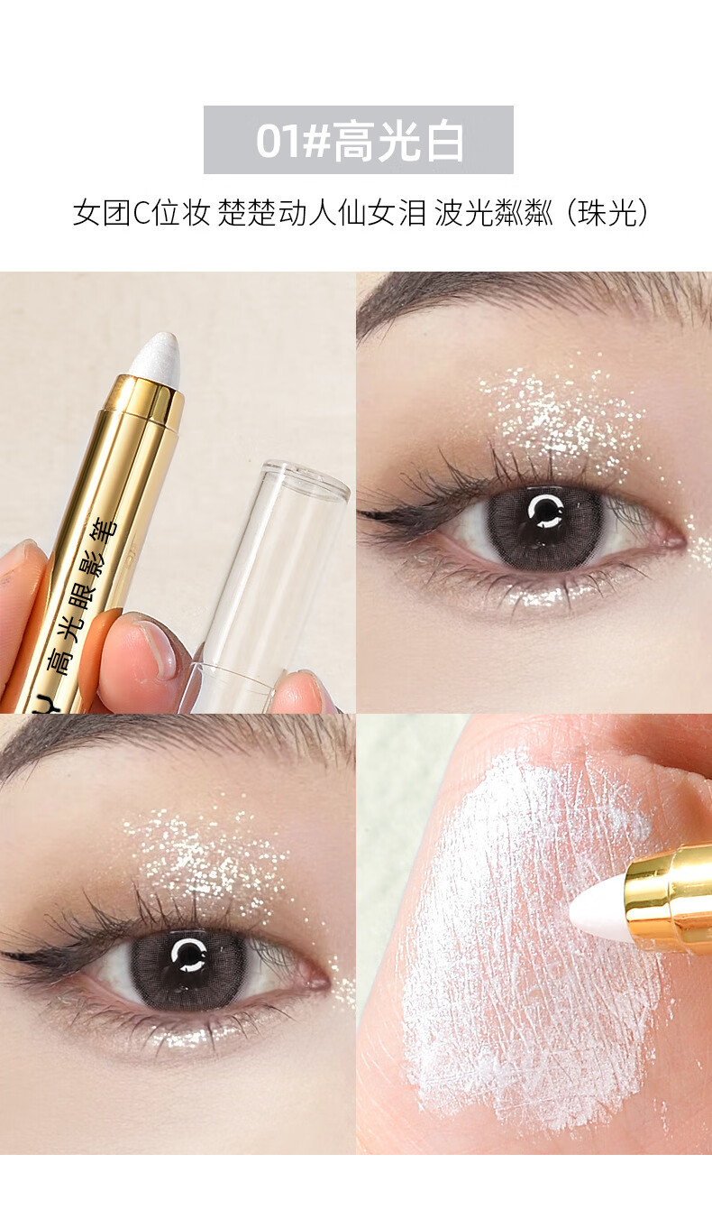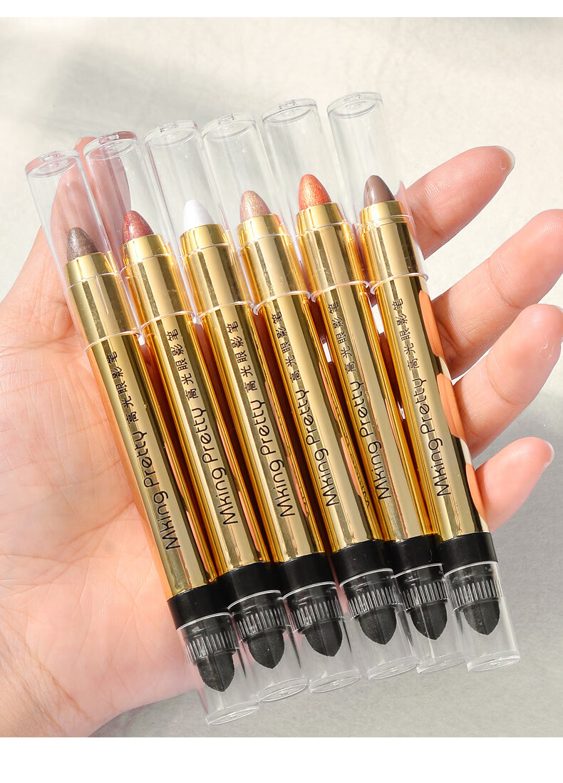 MKING PRETTY懒人眼妆眼影笔卧蚕笔高光笔双头眼影棒珠光哑光一抹成型修容 01#高光白两支装
