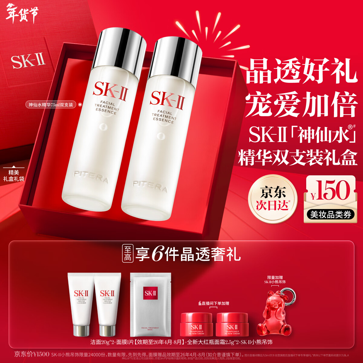 SK-II神仙水75ml*2瓶精华液sk2化妆品护肤品套装礼盒水乳生日礼物女