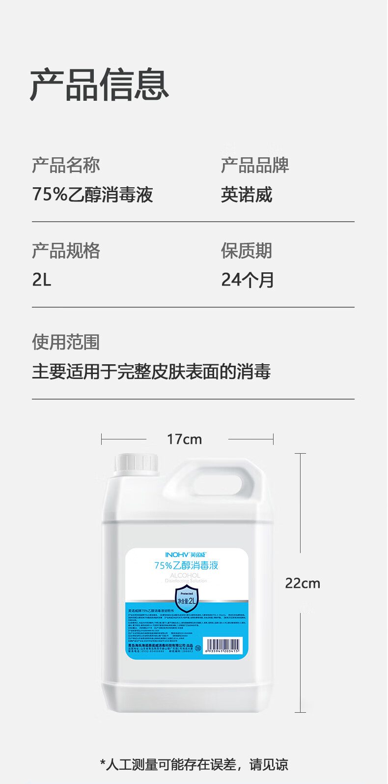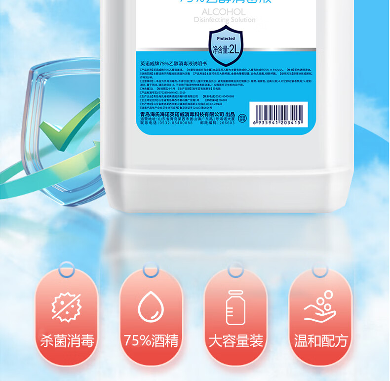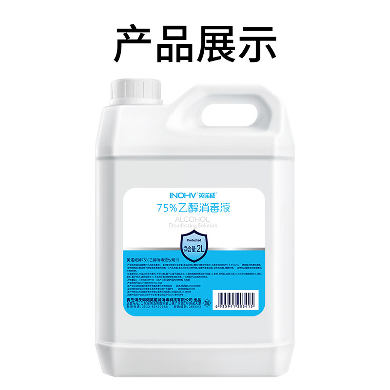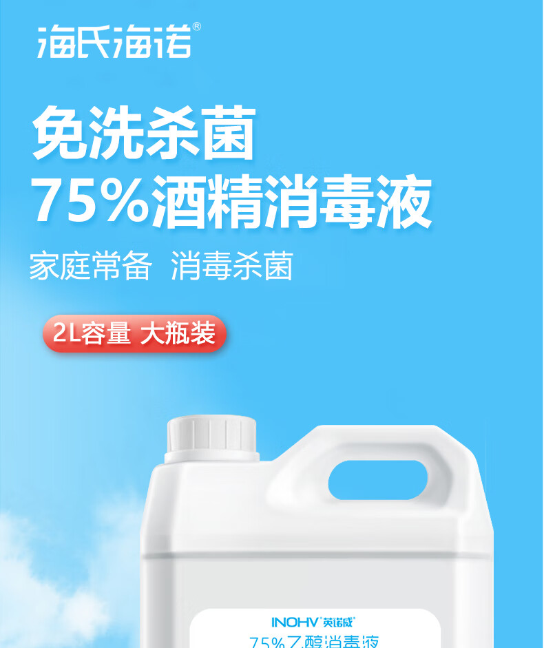 海氏海诺75%酒精消毒液2L大桶装消毒清洁办公环境乙醇消毒液喷雾替换装