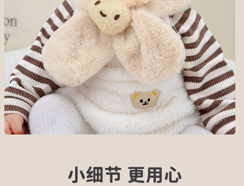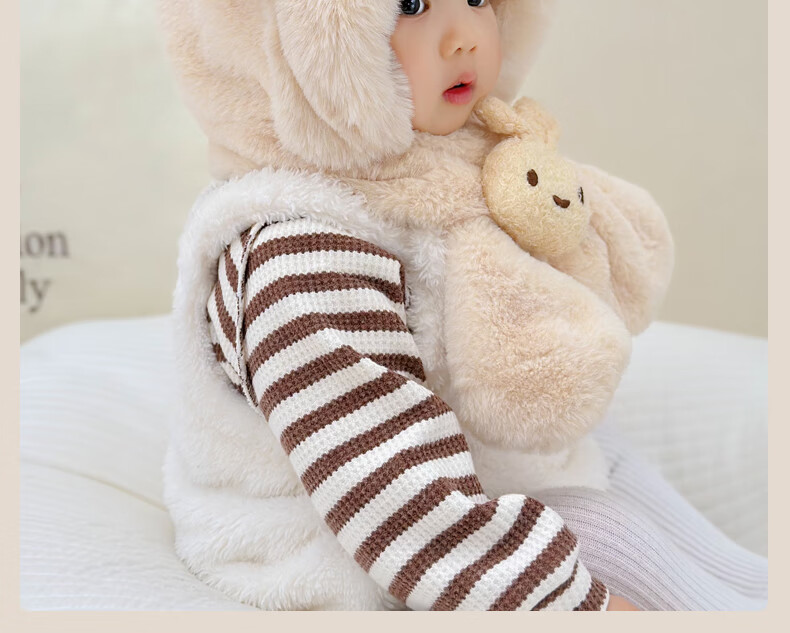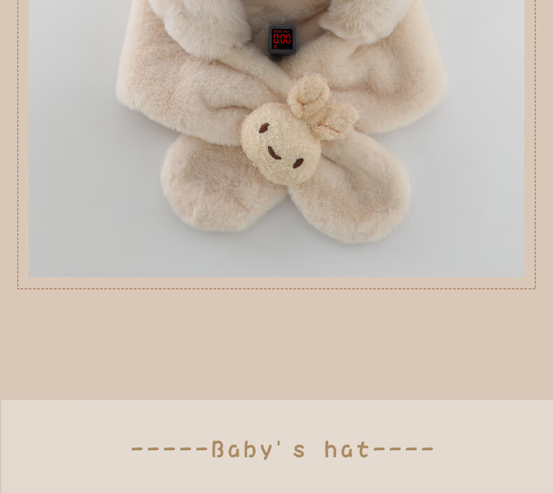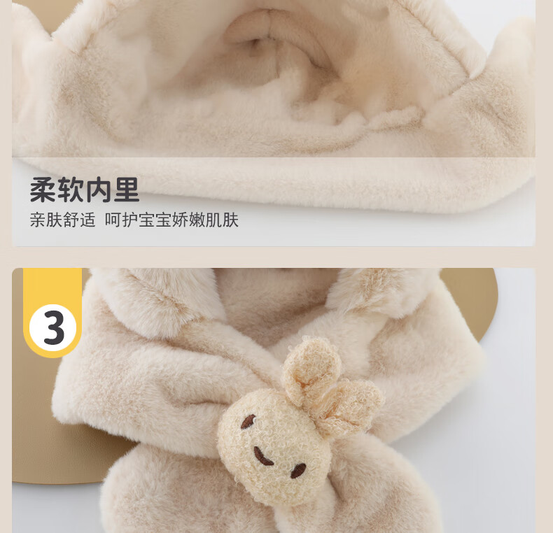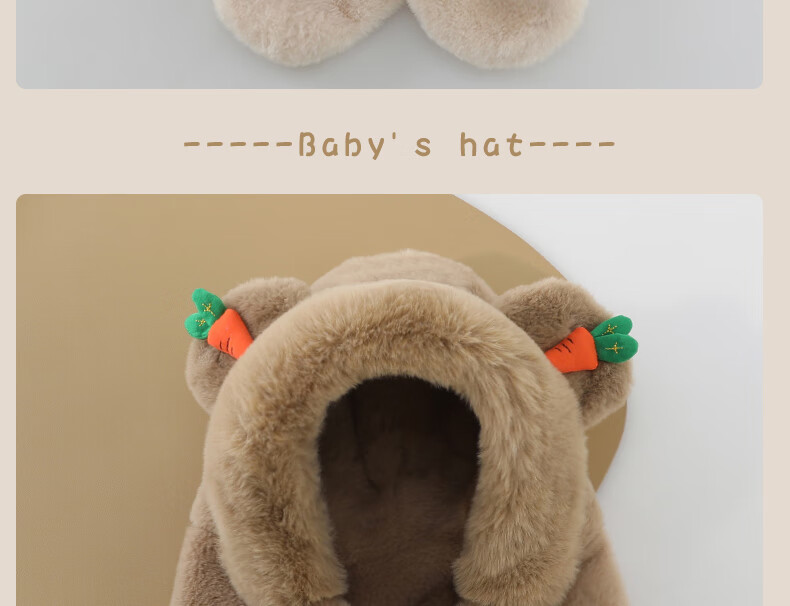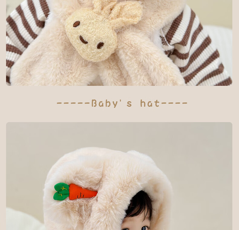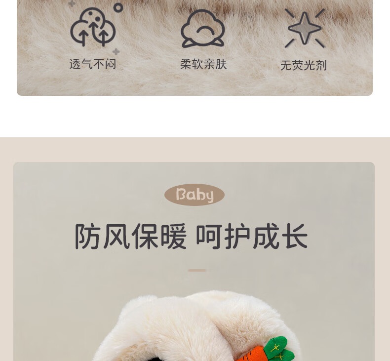 宝宝帽子冬季萝卜小兔婴儿围脖一体帽男孩女童秋冬加厚防风毛绒帽 儿童毛绒帽-胡萝卜款-米色-1个