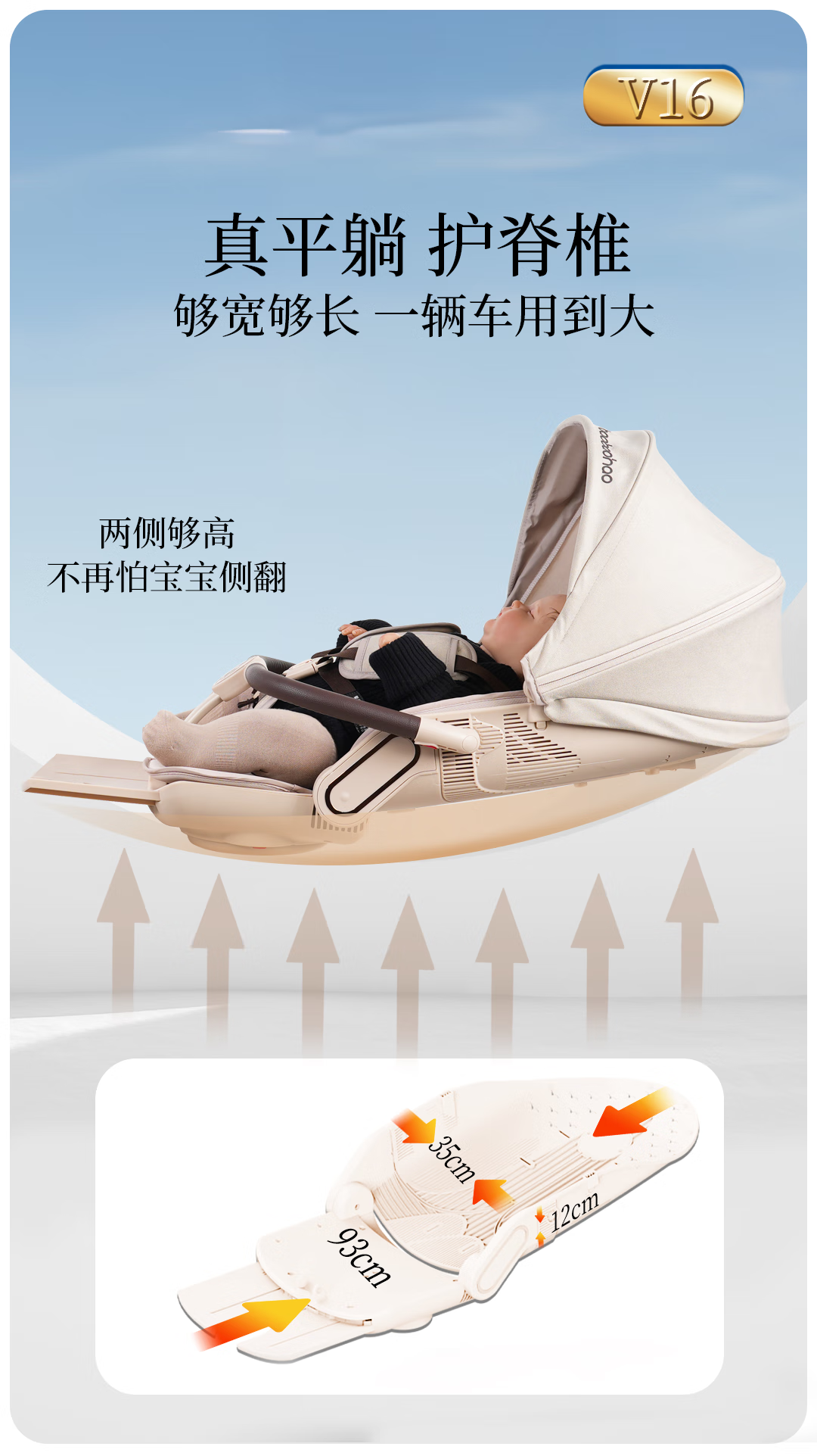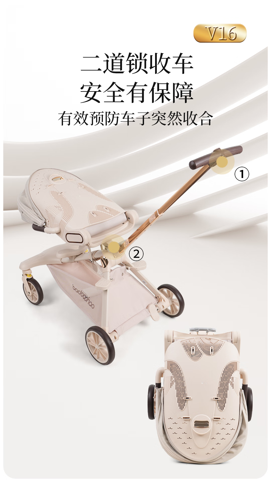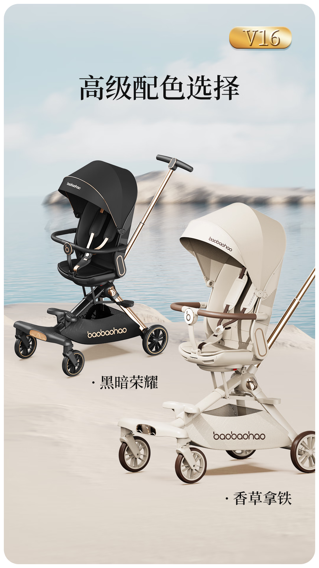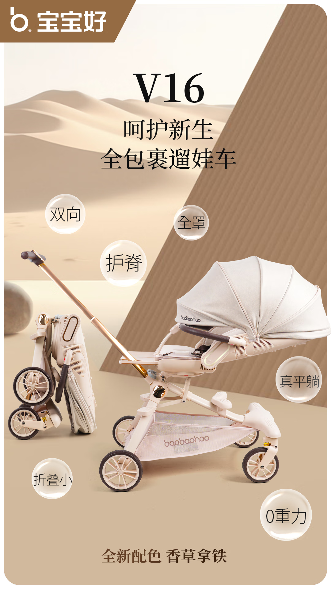 宝宝好V16遛娃神器轻便折叠婴儿车可坐可平躺溜娃车双向高景观溜娃神器 V16C香草拿铁-布篷|可坐可躺+豪华礼包