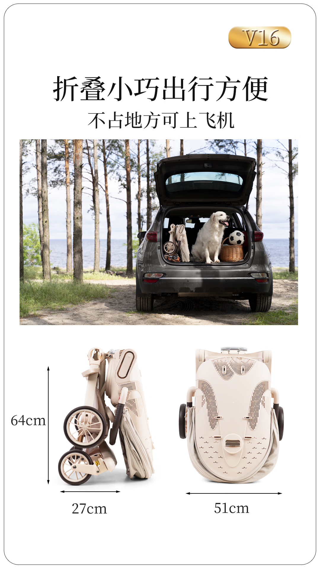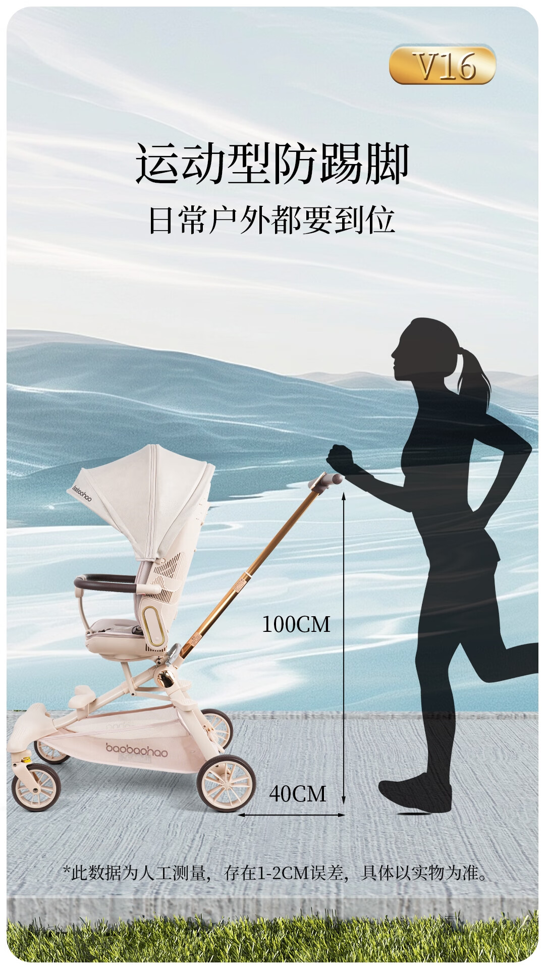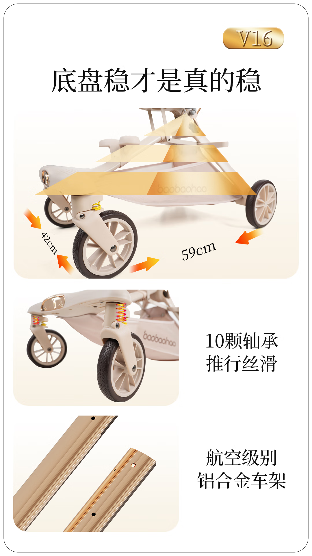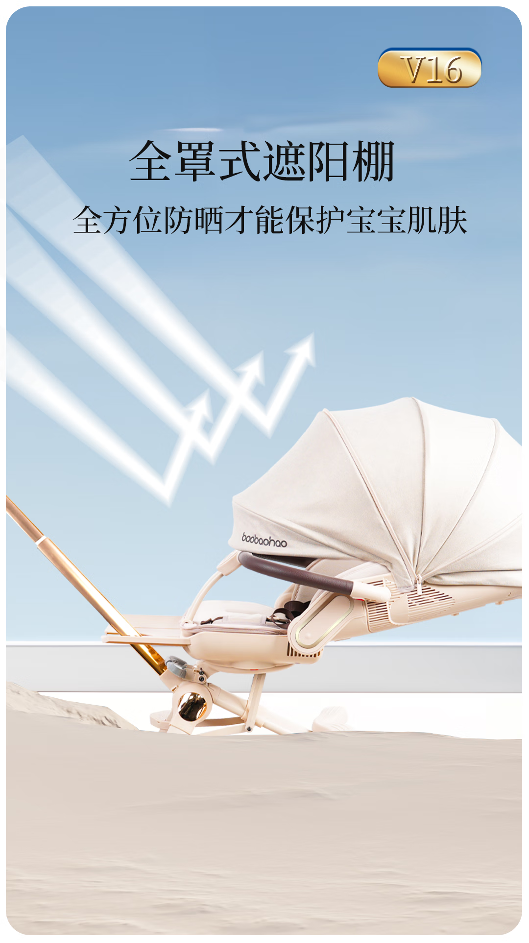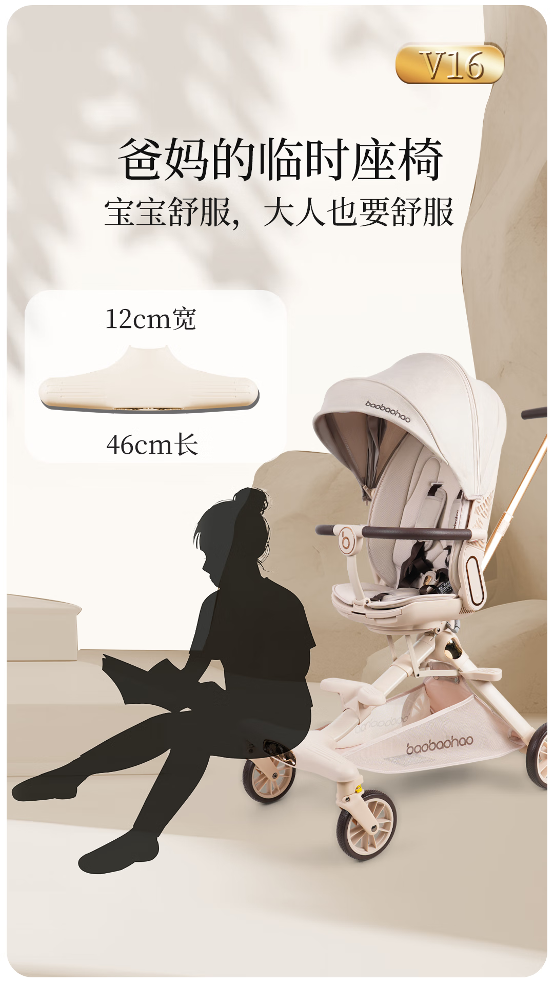 宝宝好V16遛娃神器轻便折叠婴儿车可坐可平躺溜娃车双向高景观溜娃神器 V16C香草拿铁-布篷|可坐可躺+豪华礼包