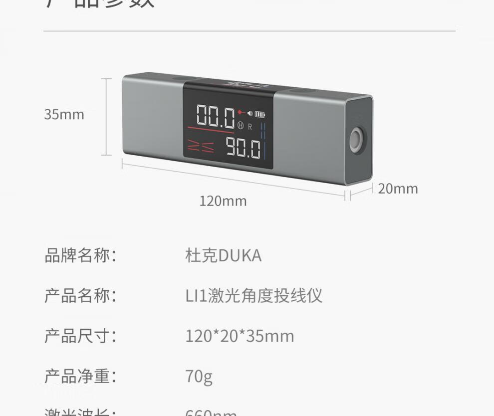 定制适用小米杜克LI1激光水平仪高精度强光细线水平仪迷小型角度 杜克LI1角度仪