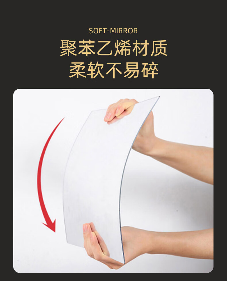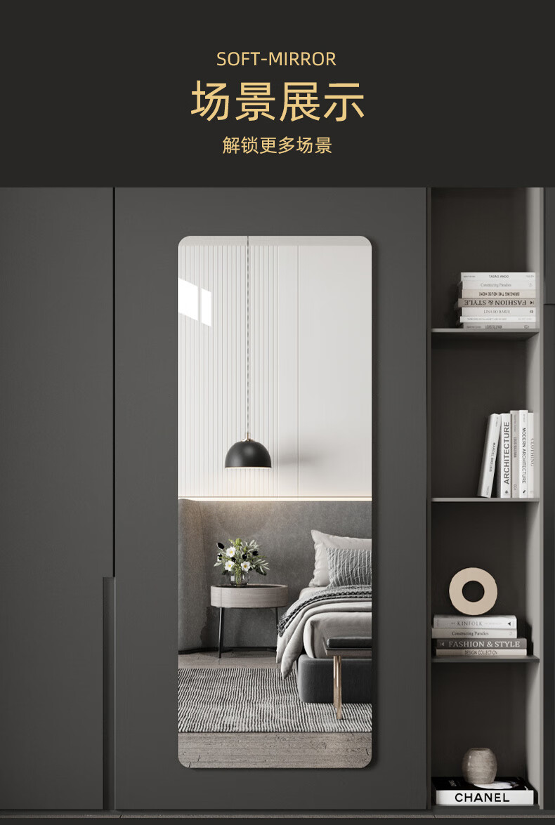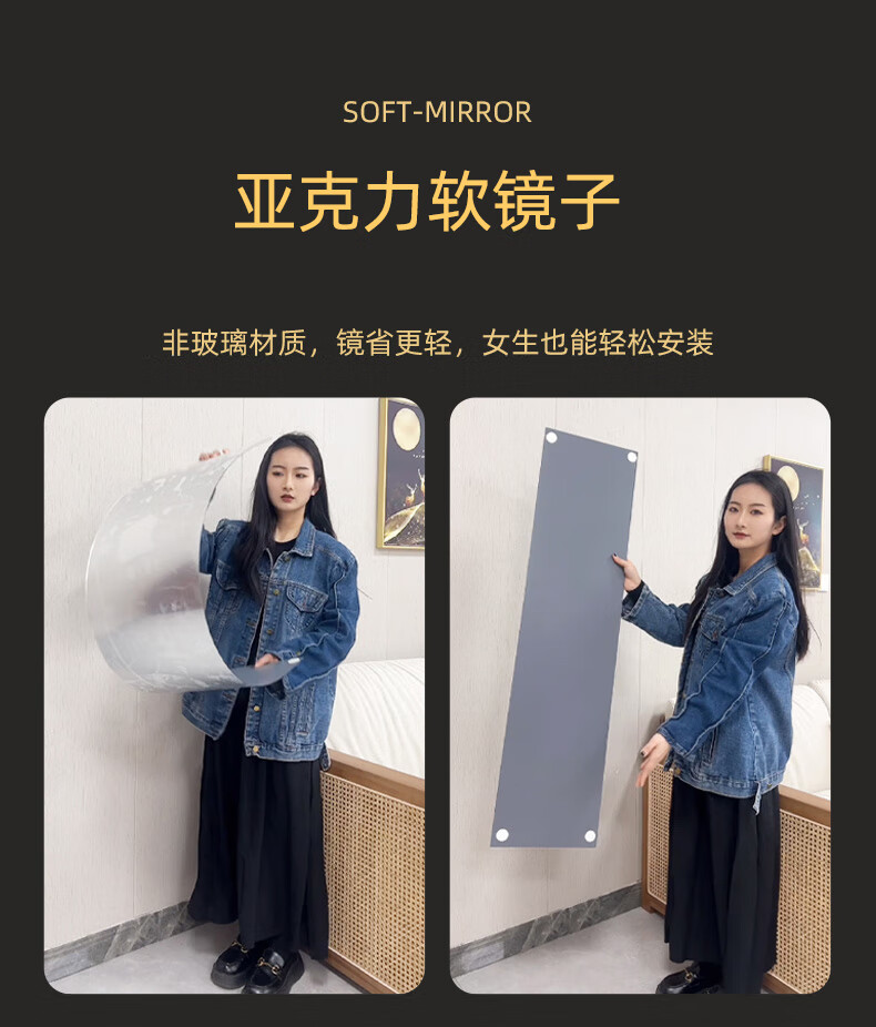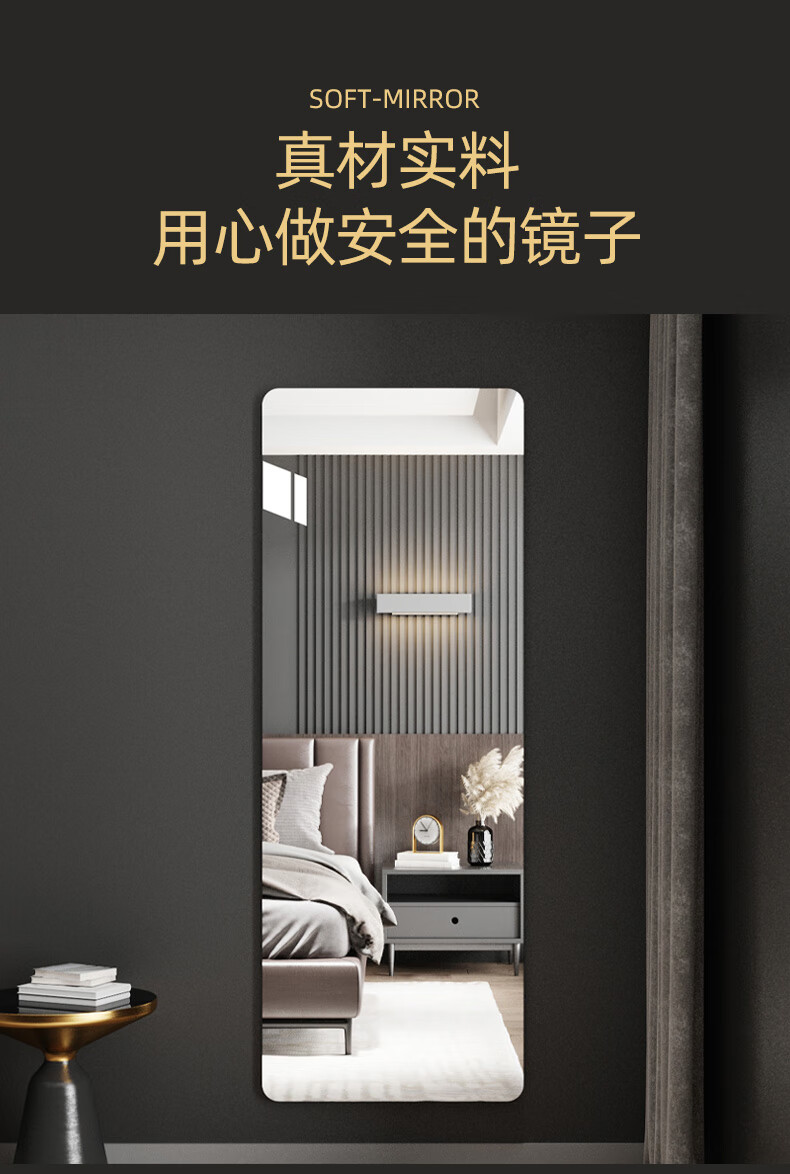 亚克力软镜子贴墙自粘家用全身镜穿衣镜贴柜门宿舍墙上镜子免打孔 圆角20*60免打孔高防爆
