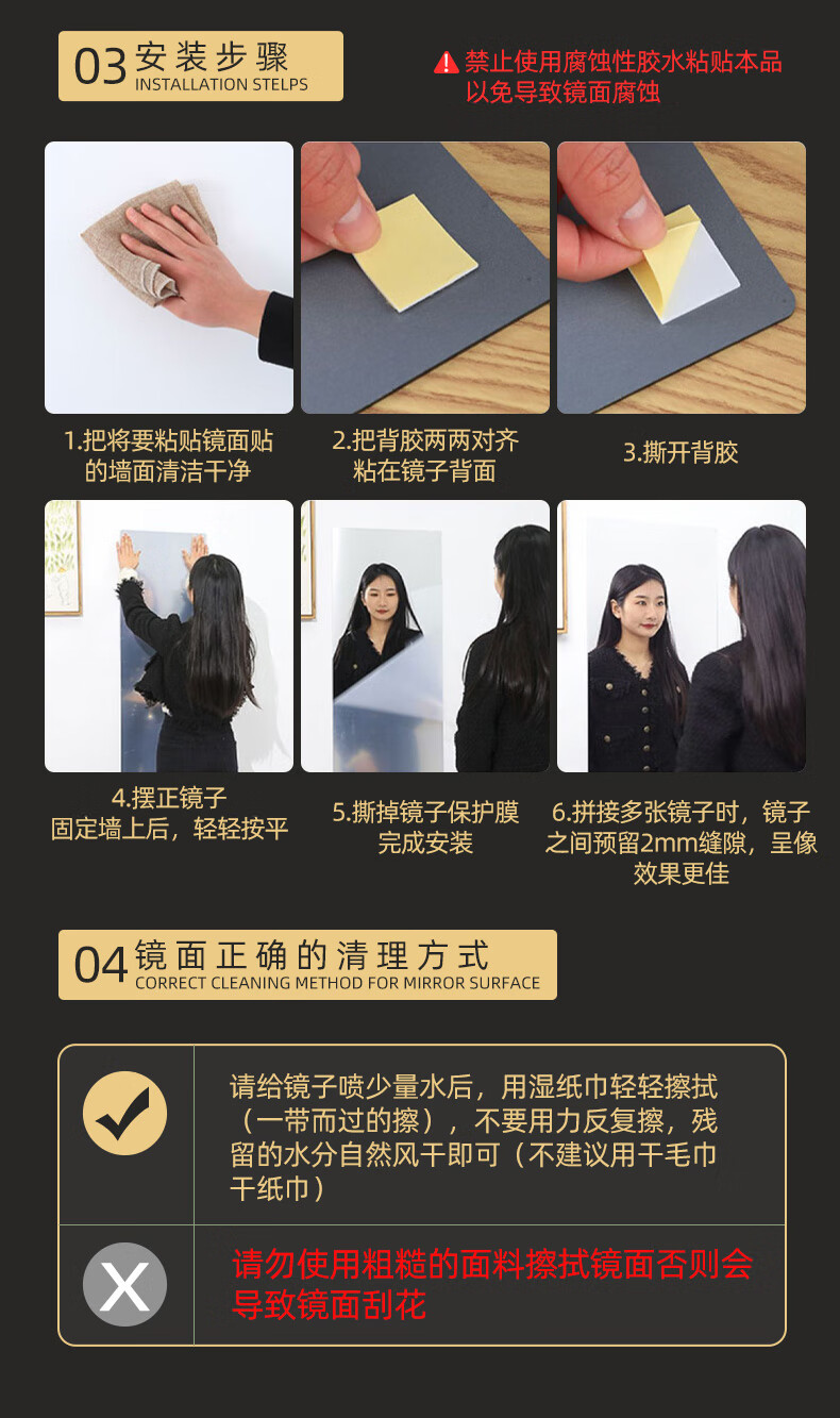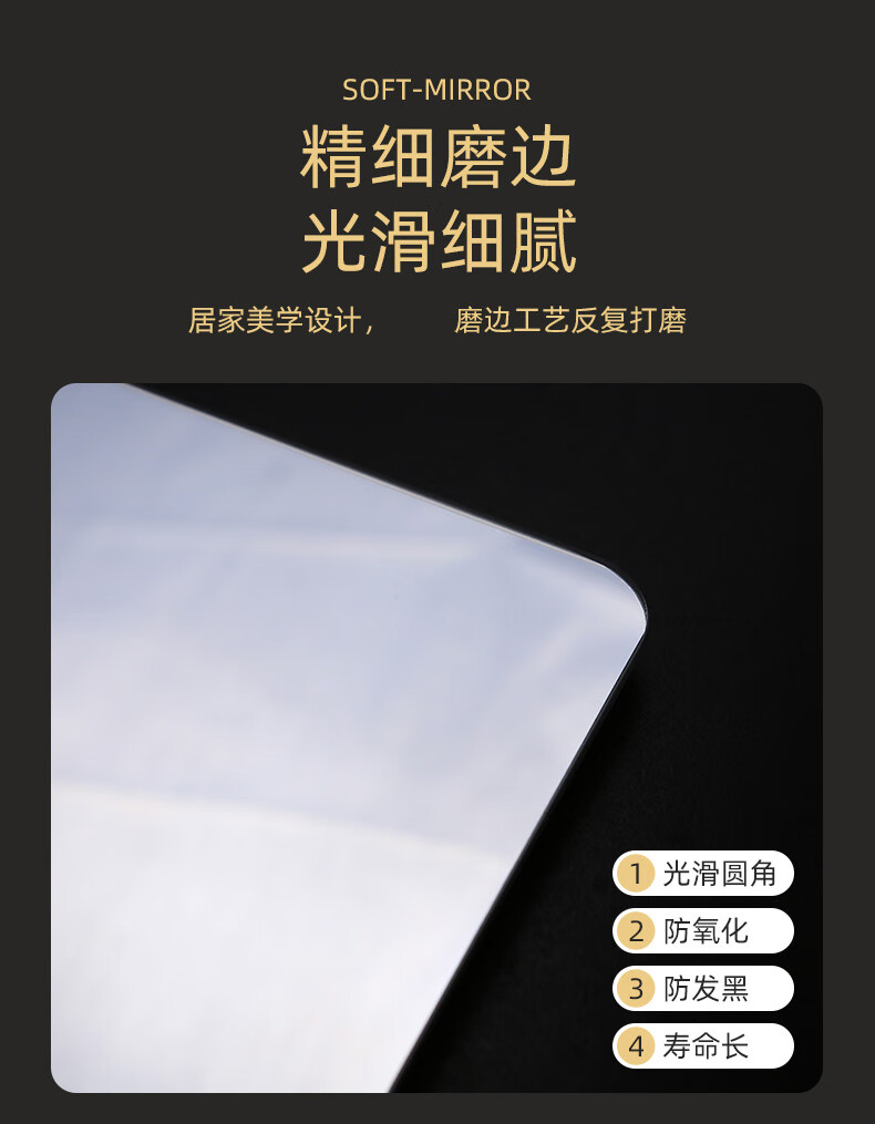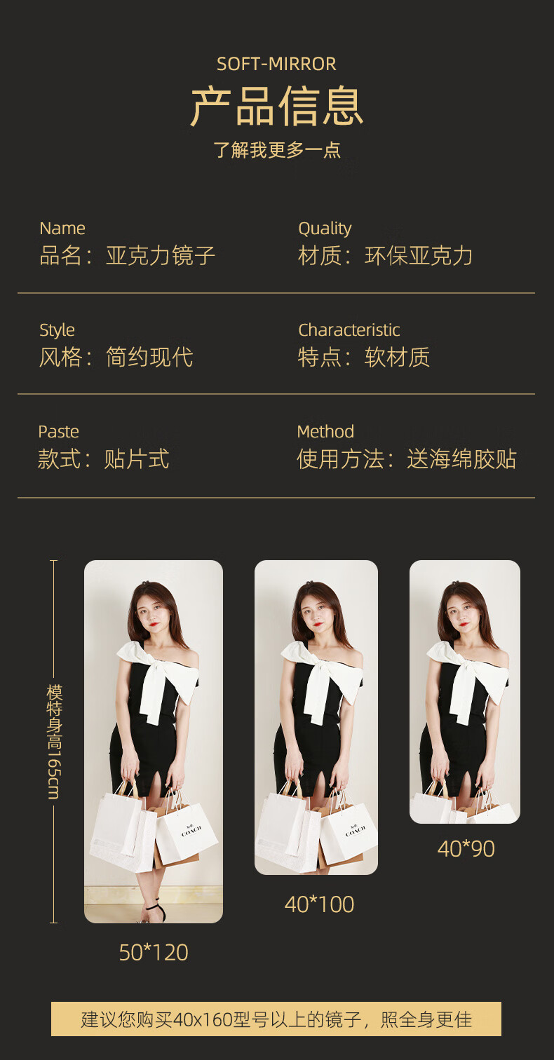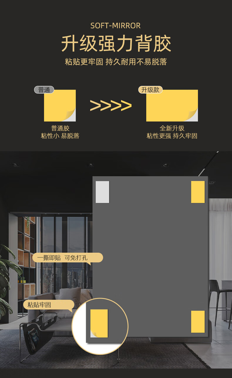 亚克力软镜子贴墙自粘家用全身镜穿衣镜贴柜门宿舍墙上镜子免打孔 圆角20*60免打孔高防爆