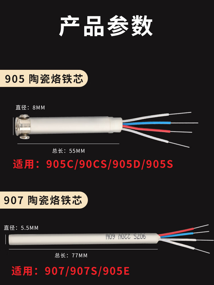 907烙铁芯内热式电烙铁60W全陶瓷905C发热芯905E恒温配件 黄花907内热发热芯