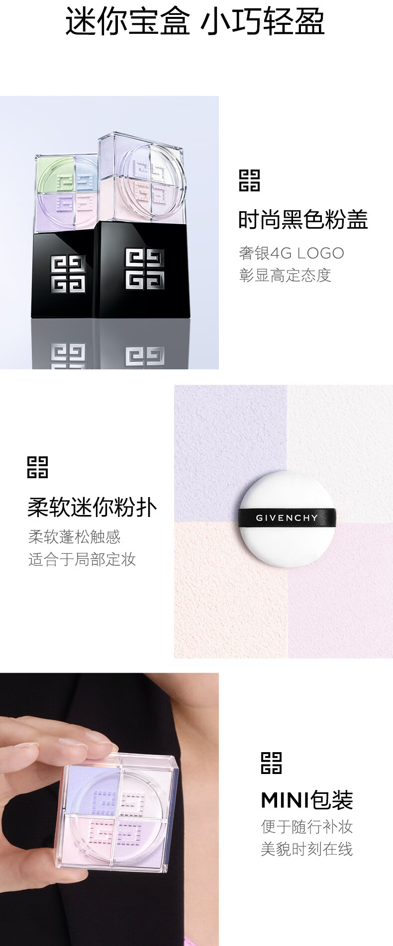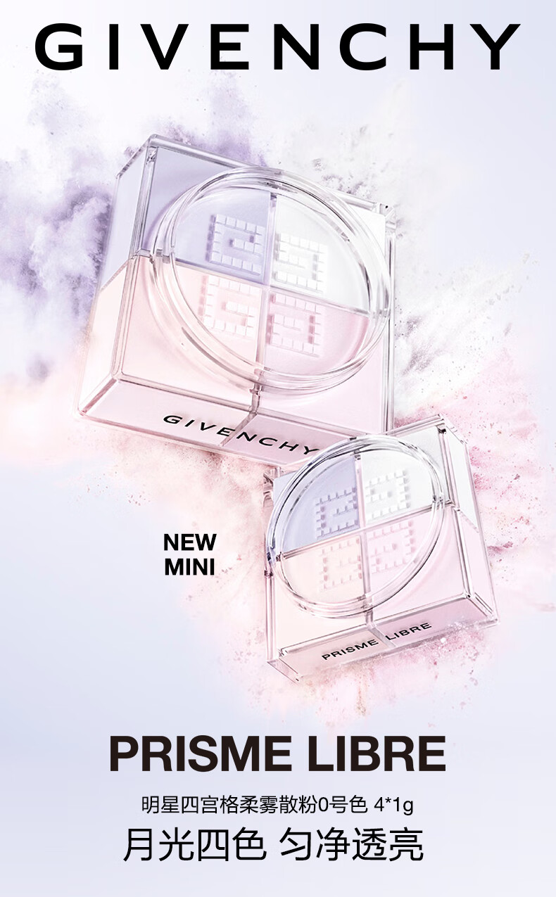 纪梵希(Givenchy)【MINI便携版4g】四宫格散粉0号小规格版随身便携定妆蜜粉提亮