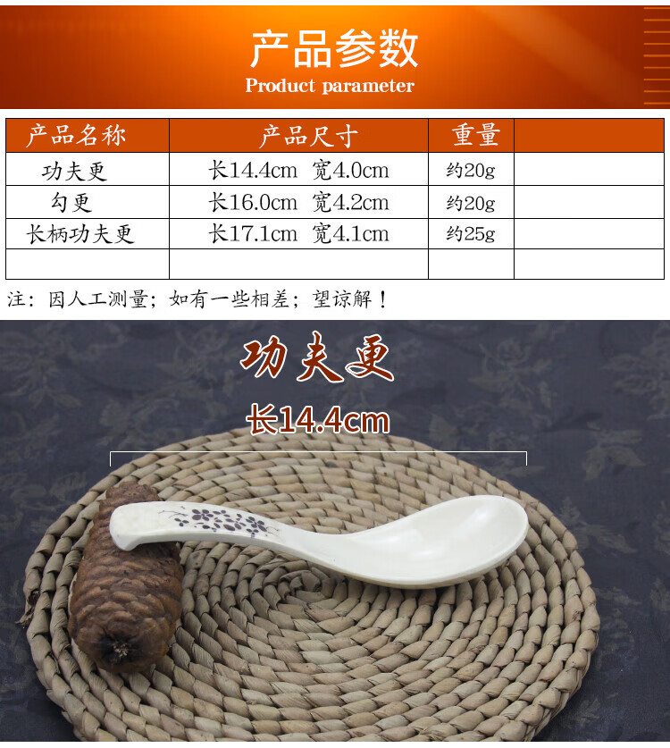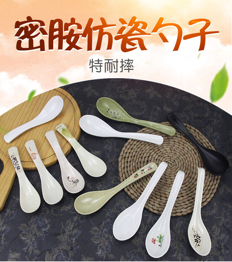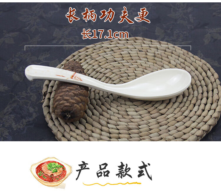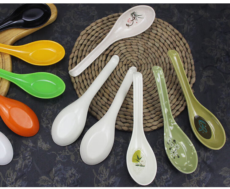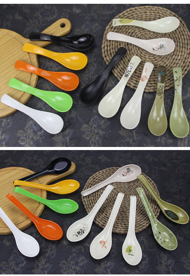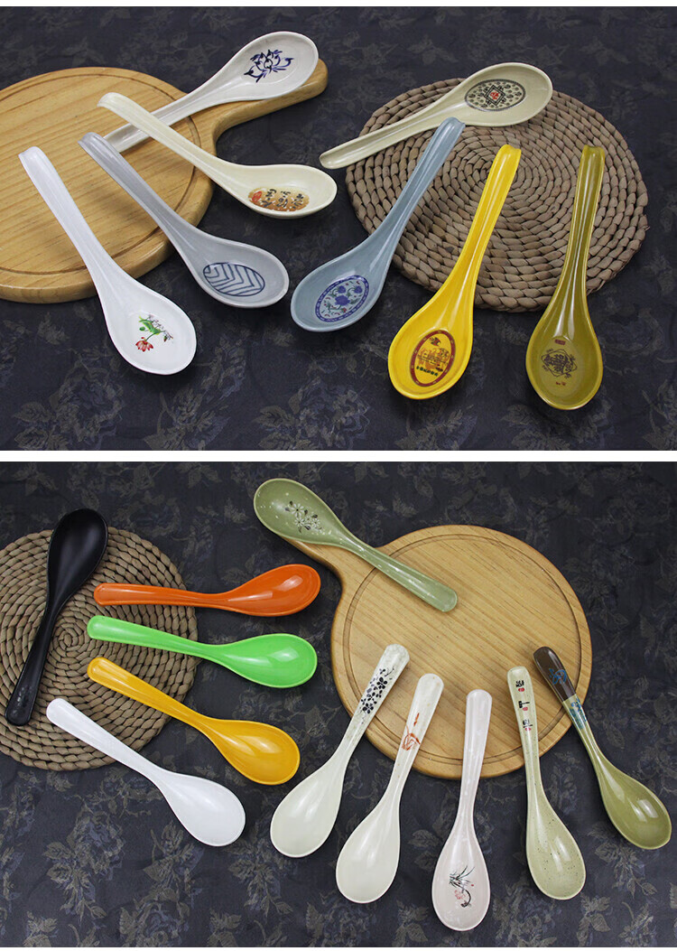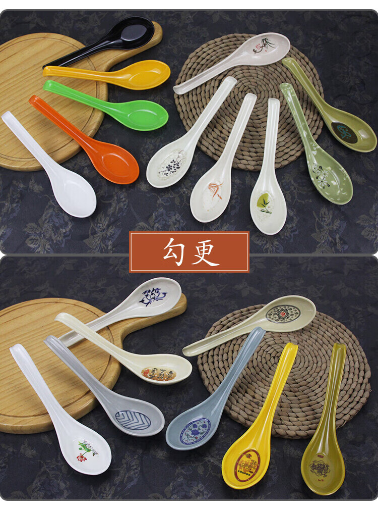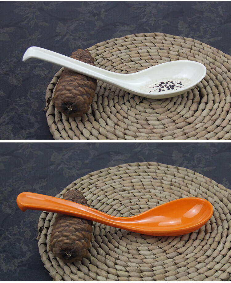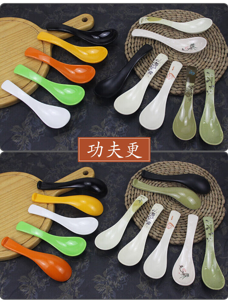 瓶樽天下十个装密胺彩色勺子功夫更饭勺带勾勺汤粉勺仿瓷调羹长柄勺子商用 白色功夫更【10个装】