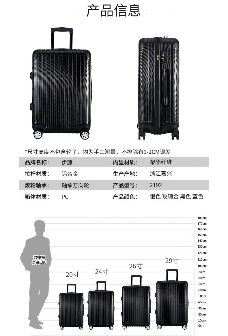伊藤拉杆箱20寸密码旅行箱24寸男登机箱行李箱女 银色 20寸2192T