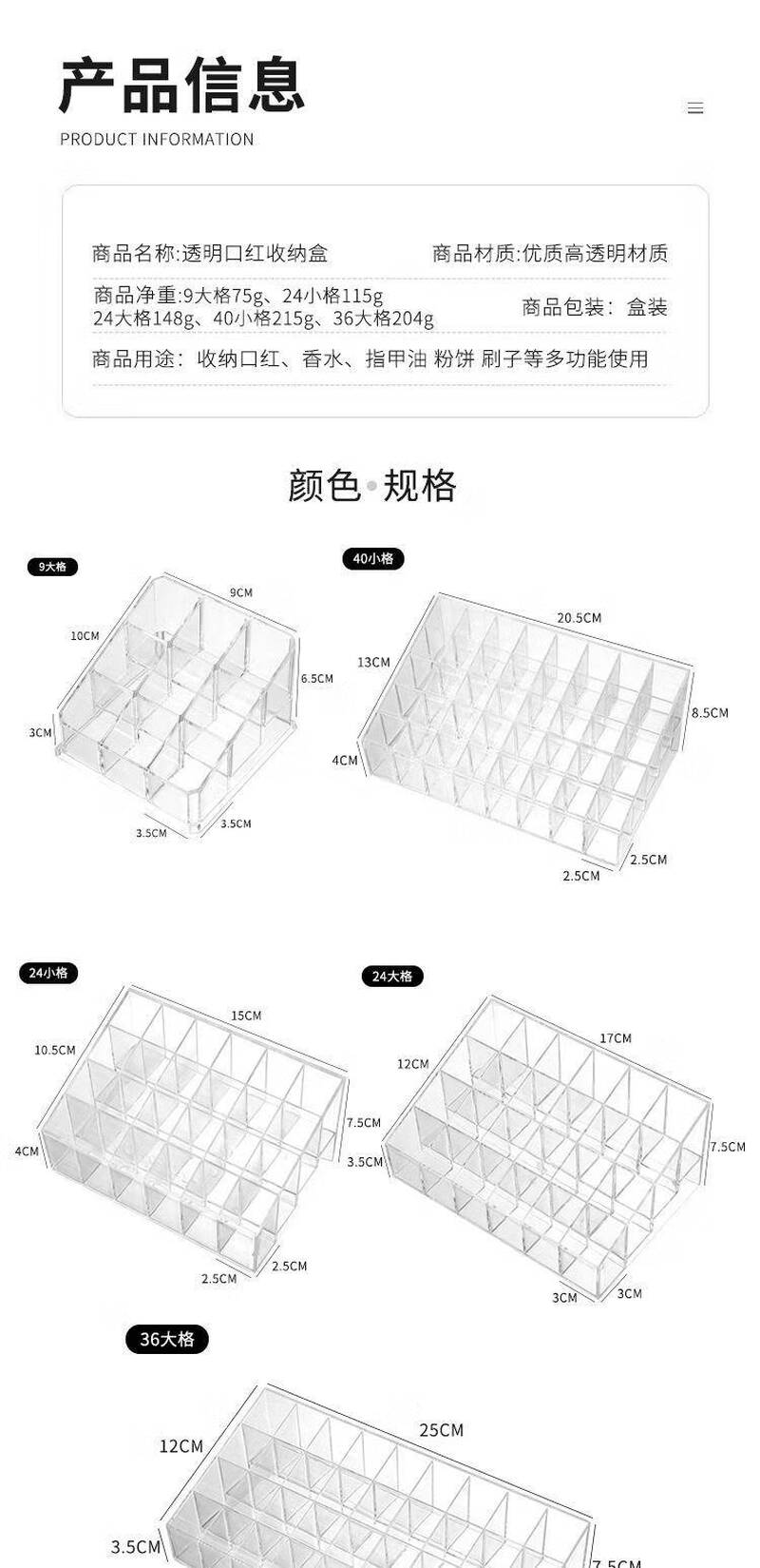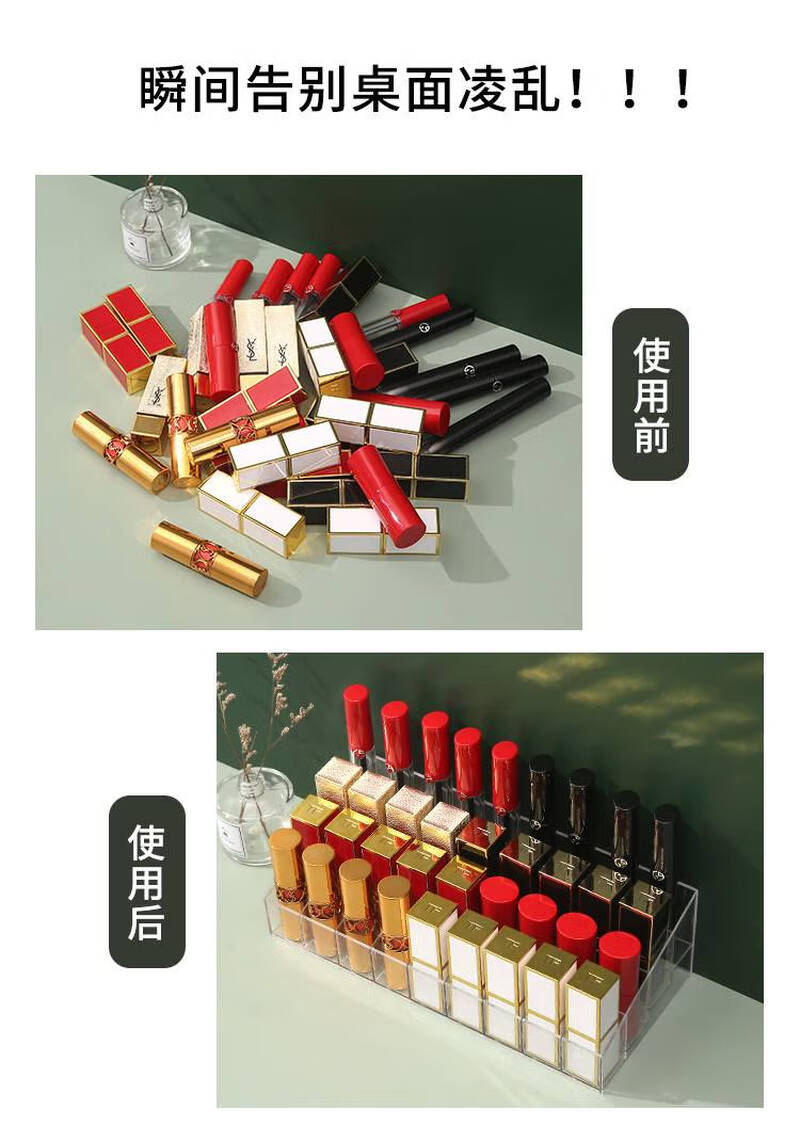 9/24/36/40格透明口红收纳架整理盒塑料桌面口红架化妆品收纳盒 9格