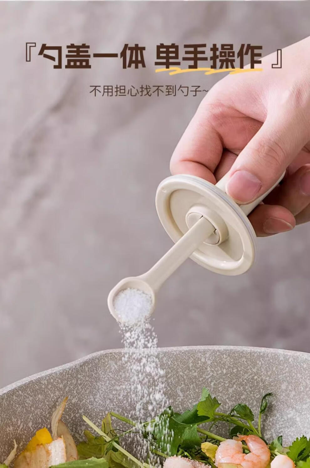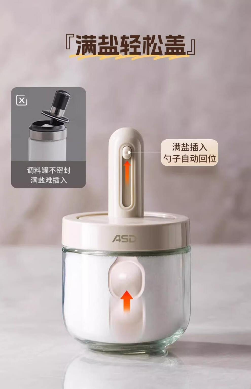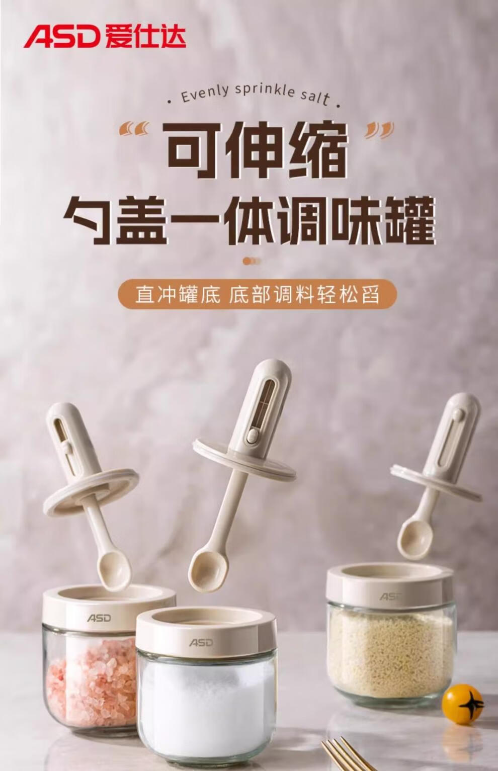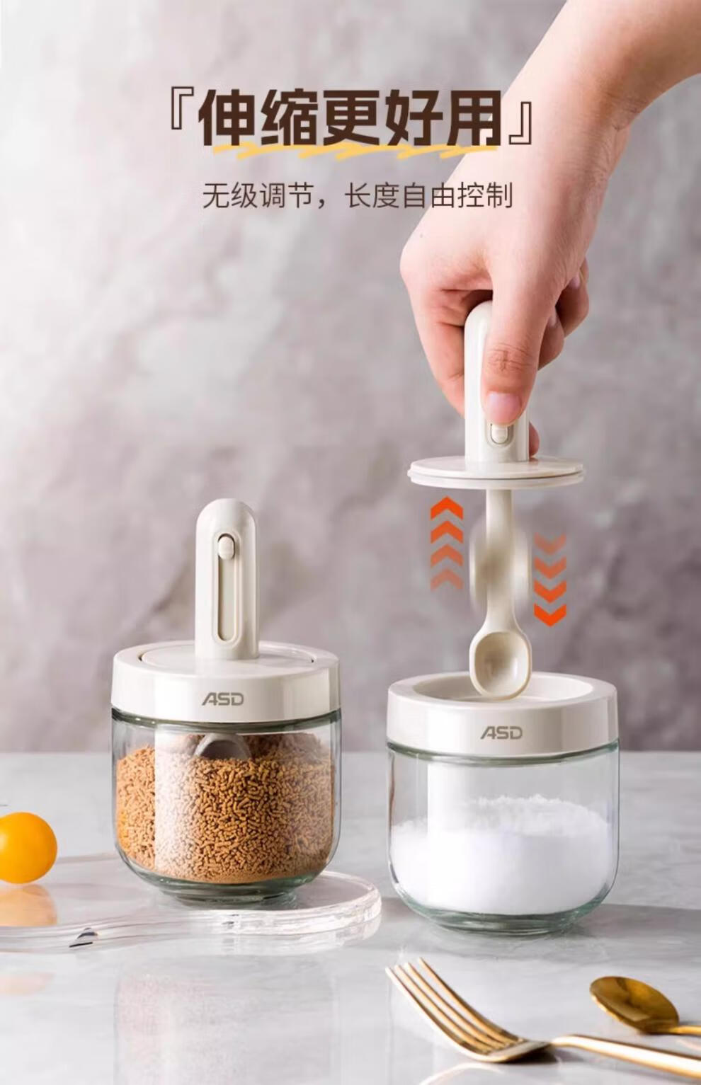 爱仕达(ASD)伸缩盐罐勺盖一体调料罐厨房家用密封防潮调味瓶收纳盒套装 【升级卡扣长勺】1个装