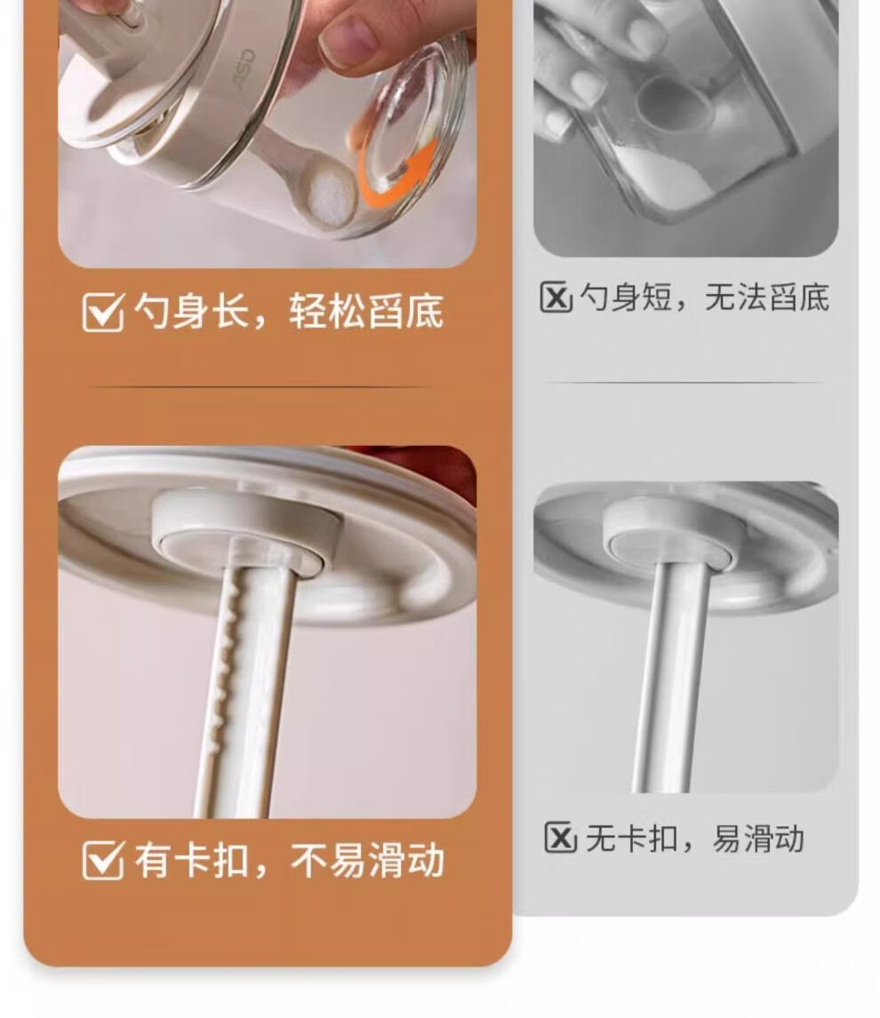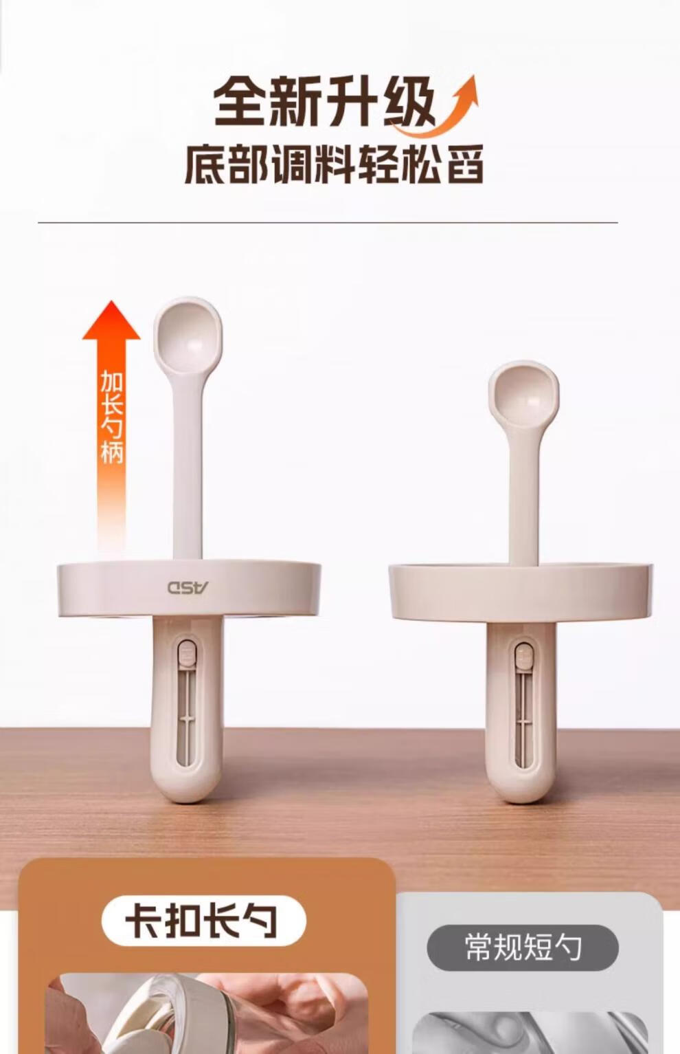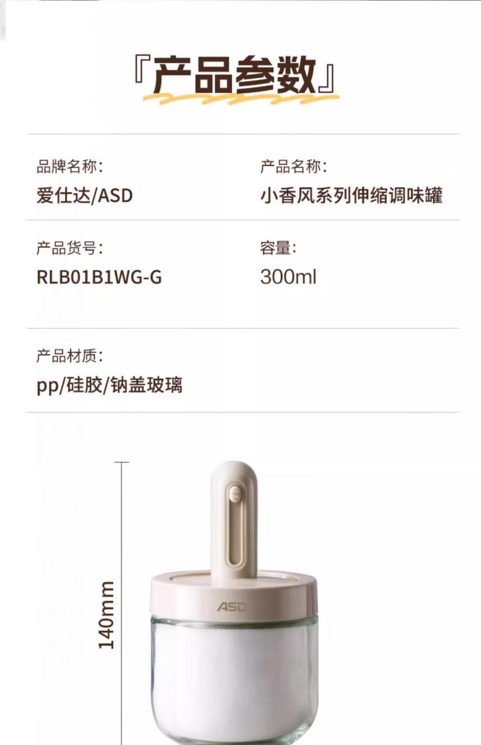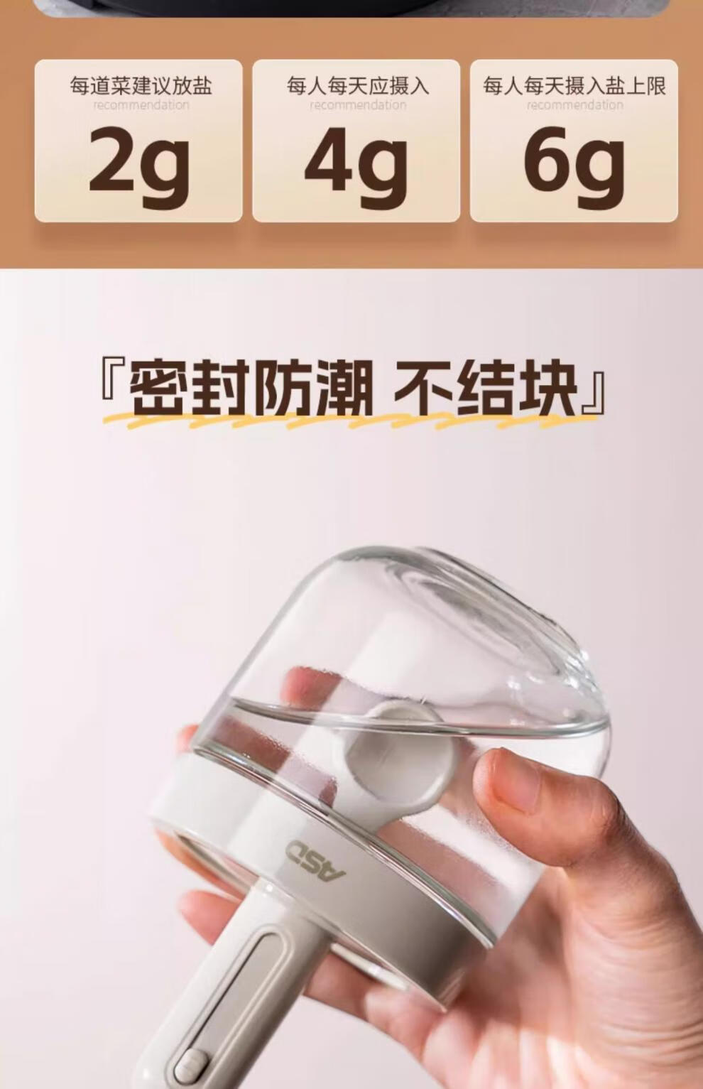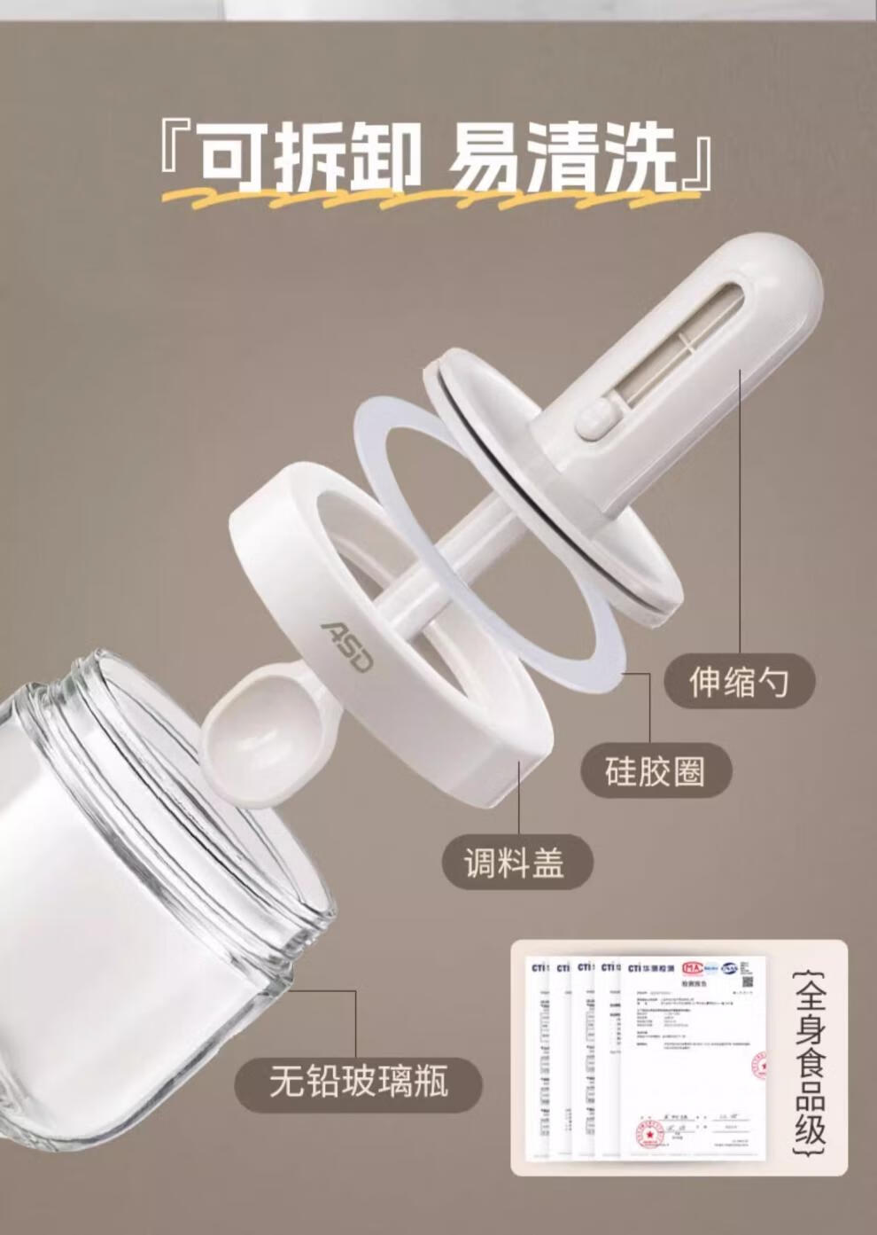 爱仕达(ASD)伸缩盐罐勺盖一体调料罐厨房家用密封防潮调味瓶收纳盒套装 【升级卡扣长勺】1个装
