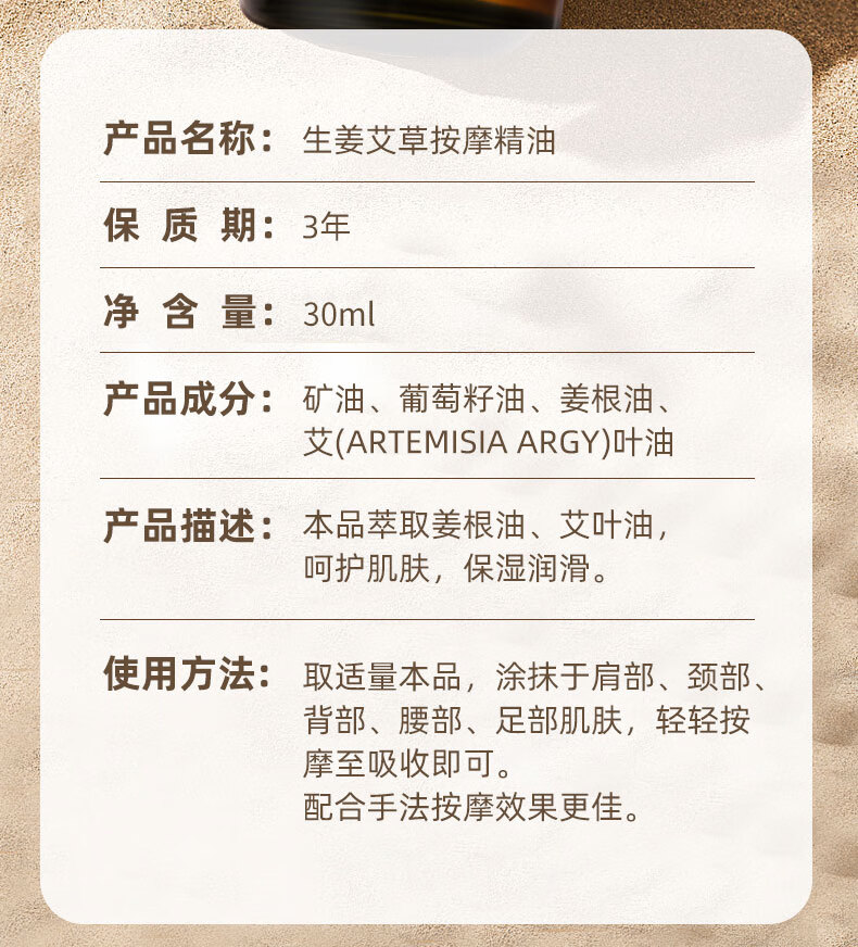 荆王御艾 按摩精油30ml通经络生姜艾草精油身体开背推拿脸面部刮痧油拔罐
