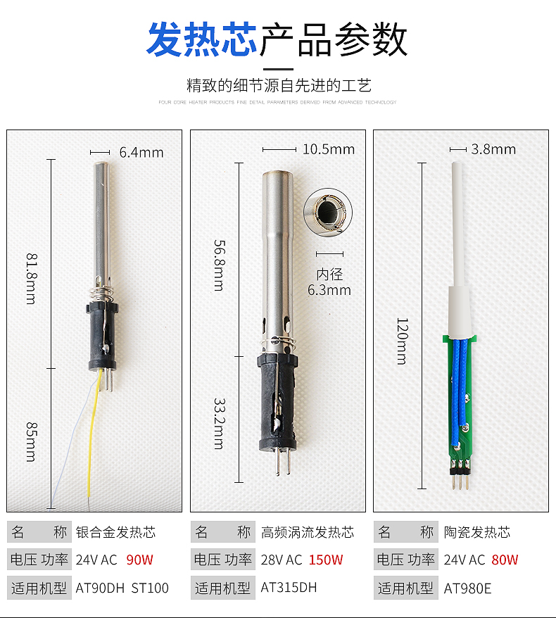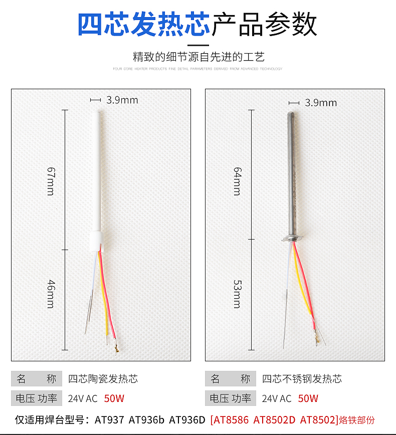 安泰信烙铁芯 焊台配件 内热电烙铁插拔式发热芯 两芯四芯陶瓷不锈钢发热丝 AT937A焊台发热芯