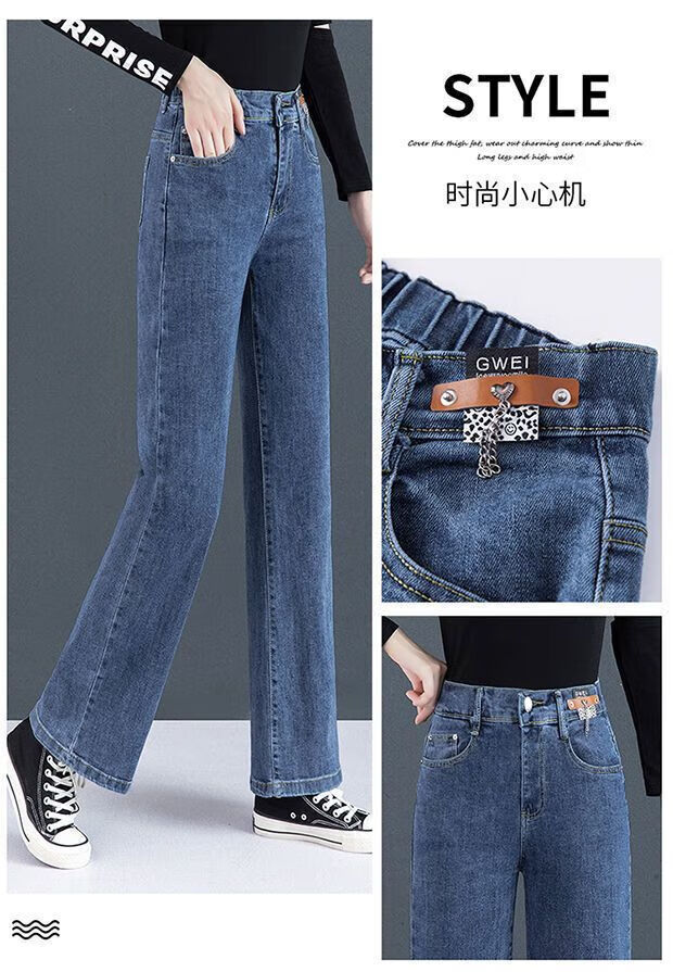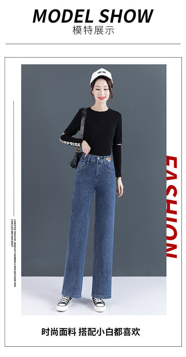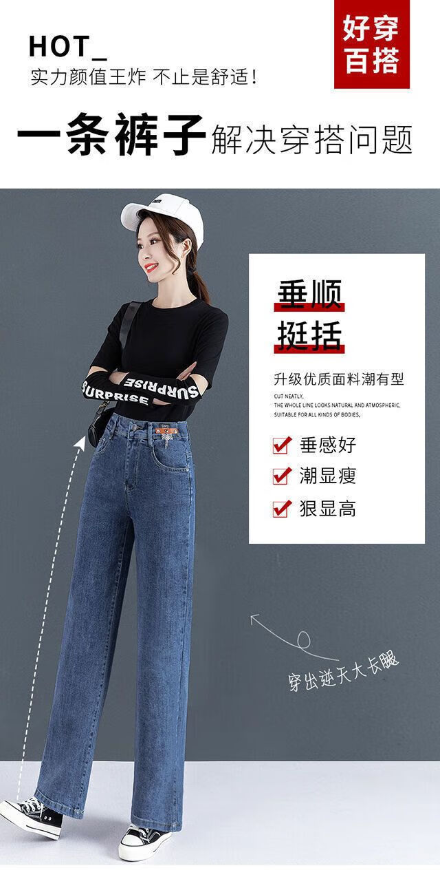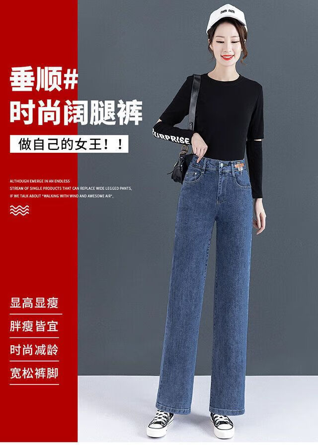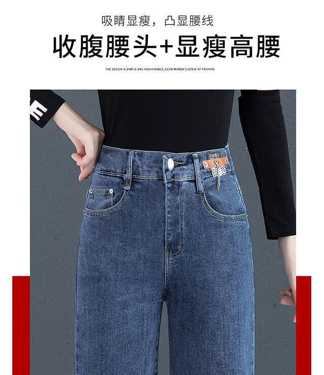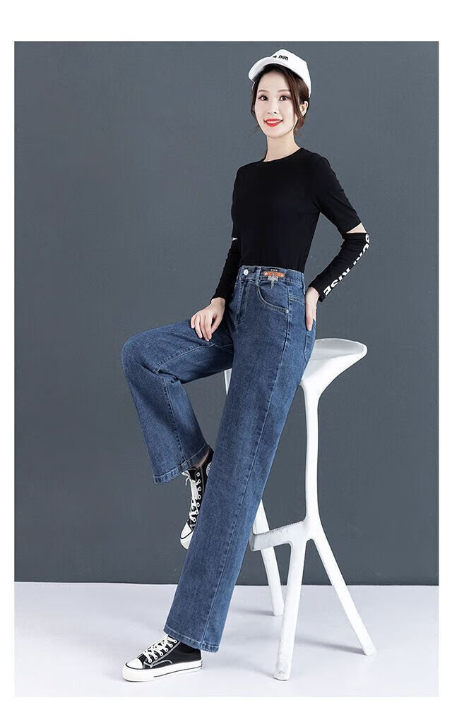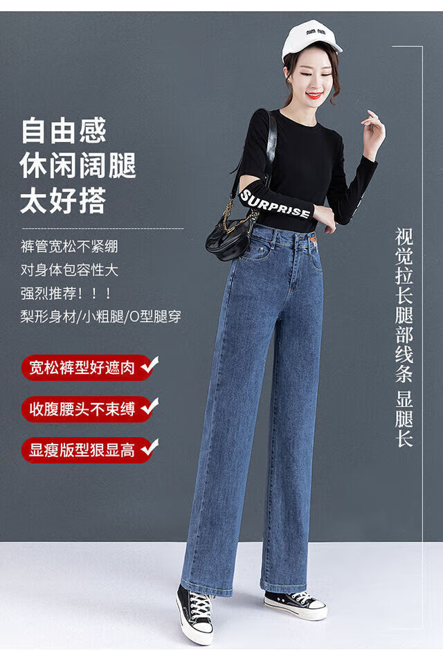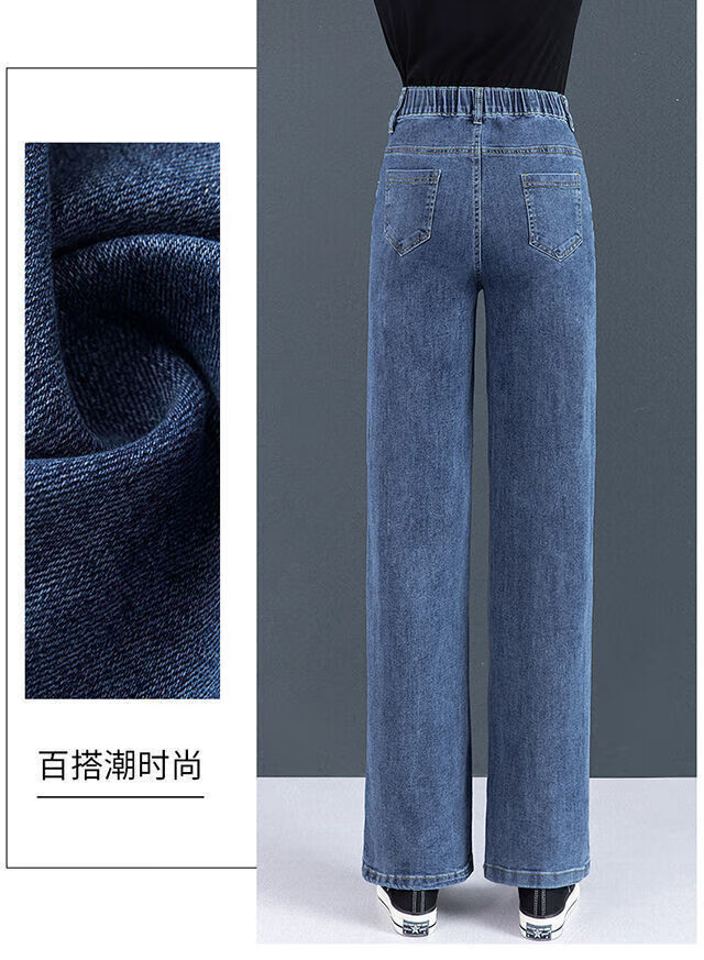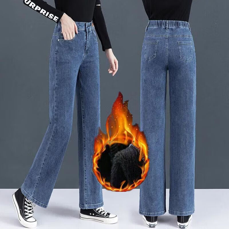 AEMAPE加绒/单裤高腰阔腿牛仔裤女2025春秋冬新款宽松显瘦显高垂感裤子 蓝色 31 建议 130-140斤