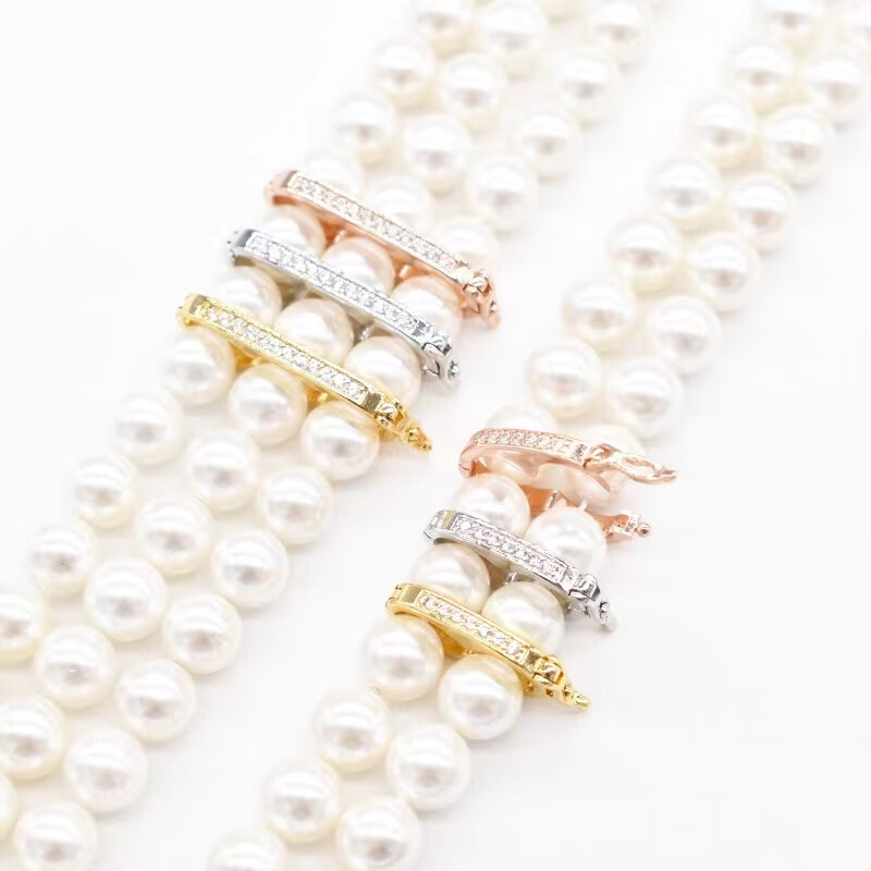 胖东来同款珍珠扣头配件银扣子饰品配件珍珠项链手链夹扣扣头夹层 双排白金色