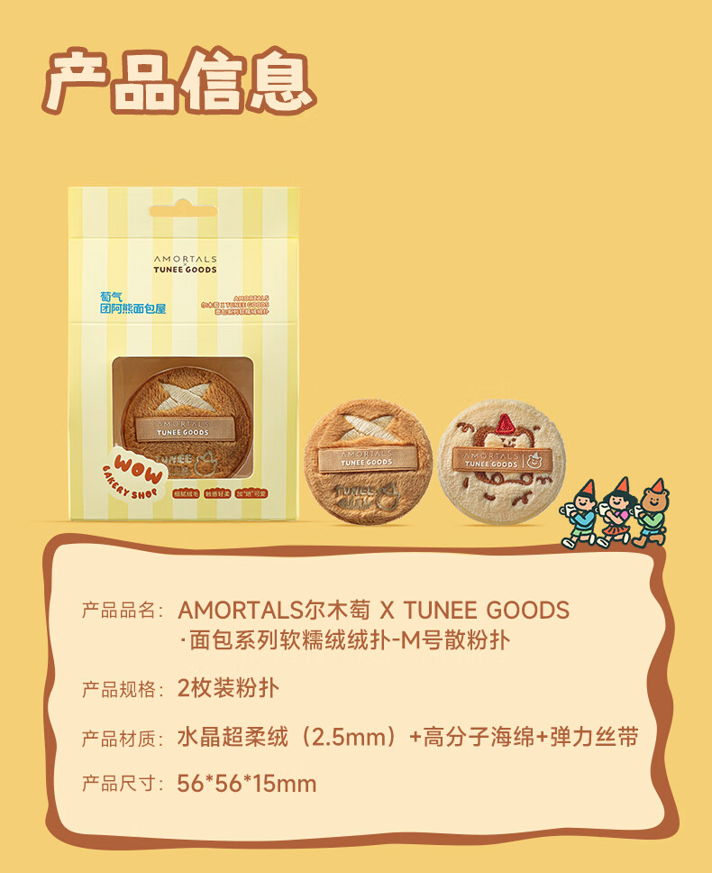 尔木萄(AMORTALS)X TUNEE GOODS软糯绒绒扑 散粉扑套盒 M号 2枚节日礼物