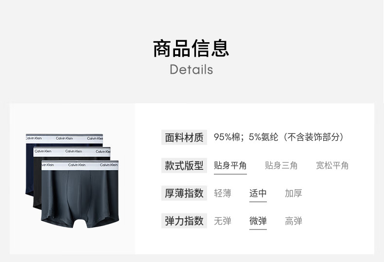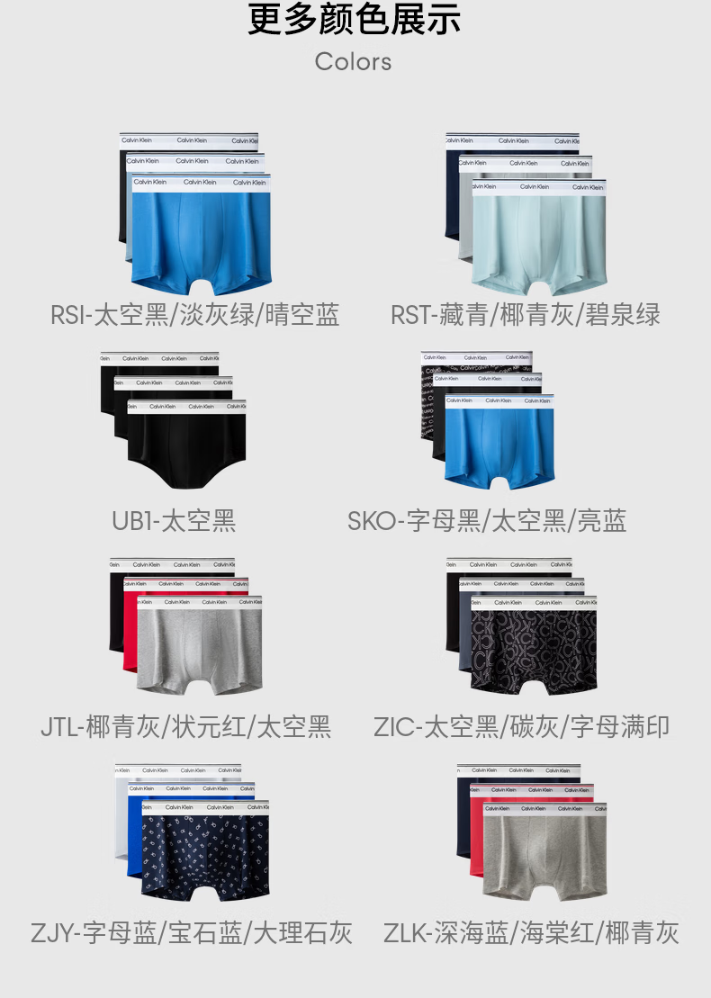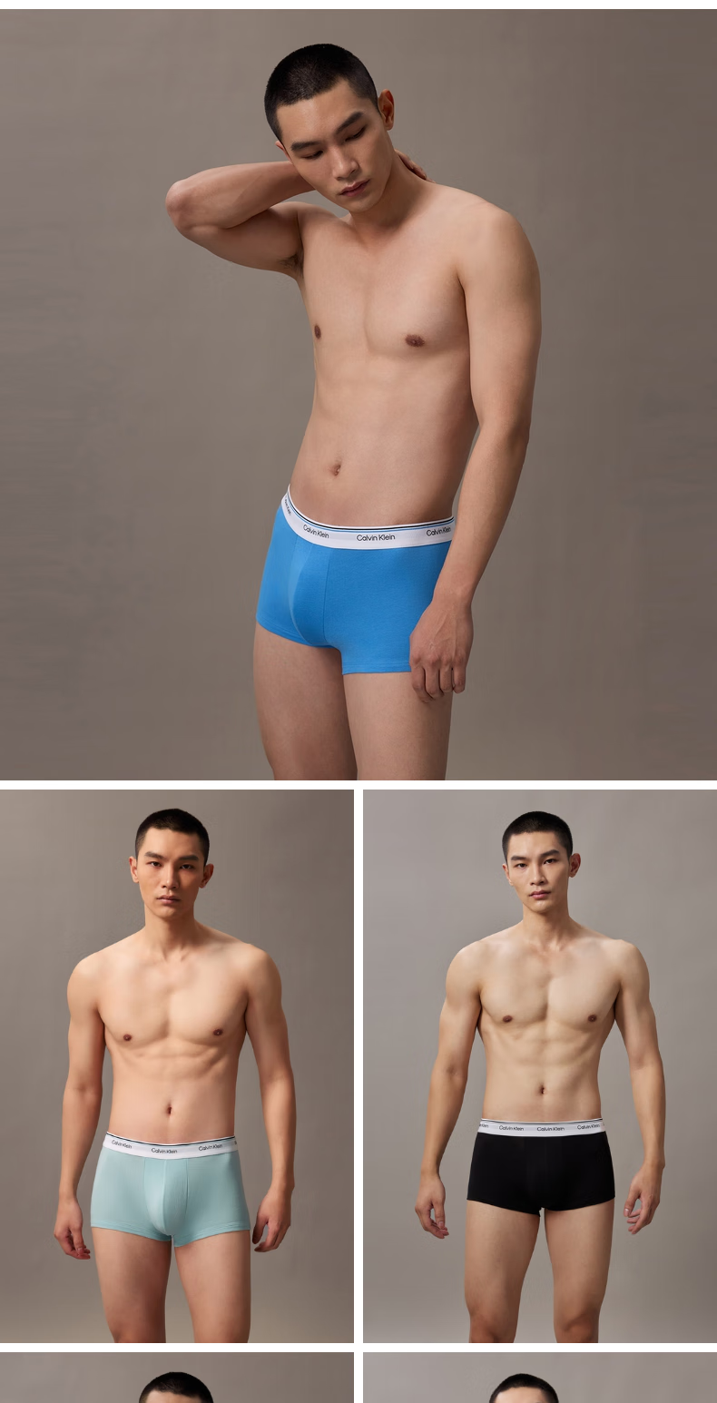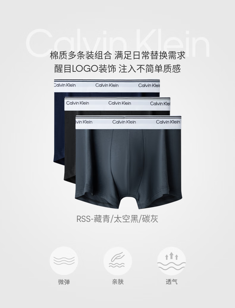 Calvin Klein内衣【新年礼物】男士本命年三条ck低腰棉质微弹防夹臀平角内裤男 ZLK-深海蓝/海棠红/椰青灰 3条 L