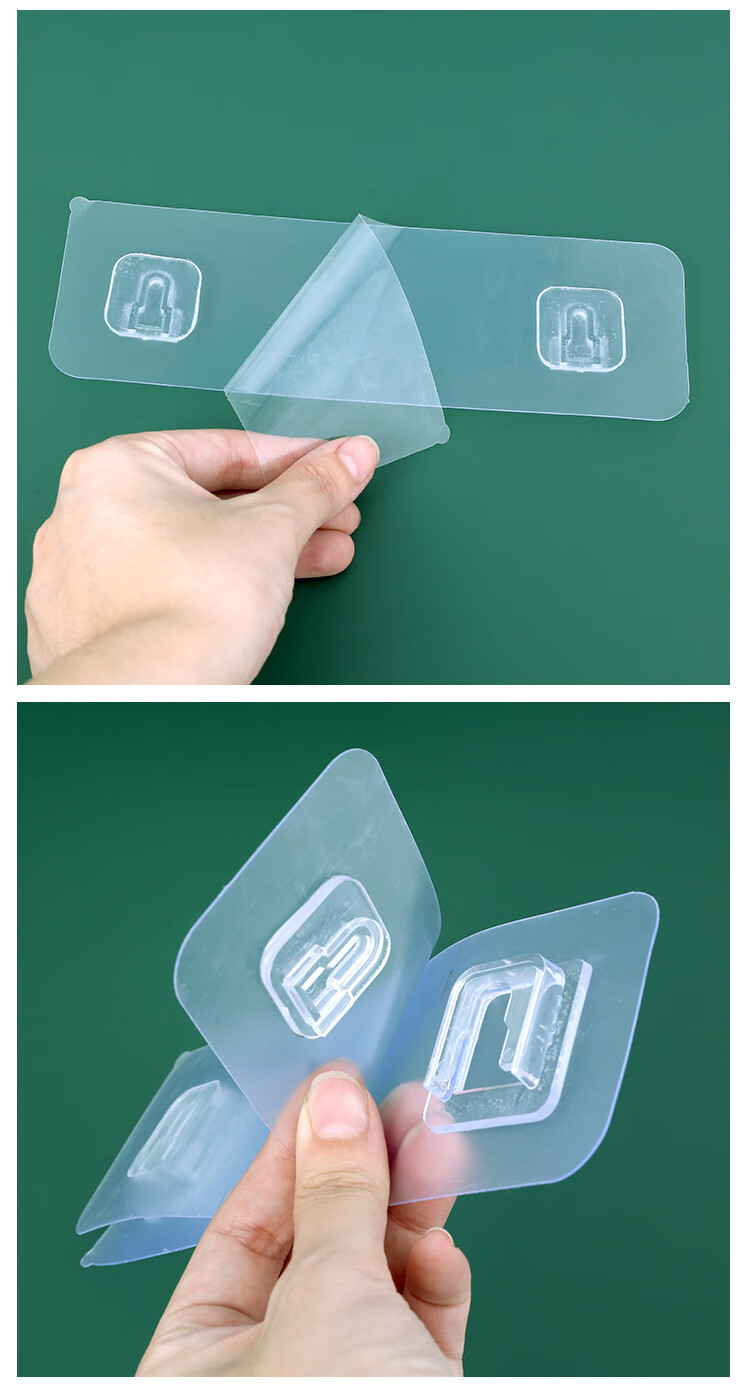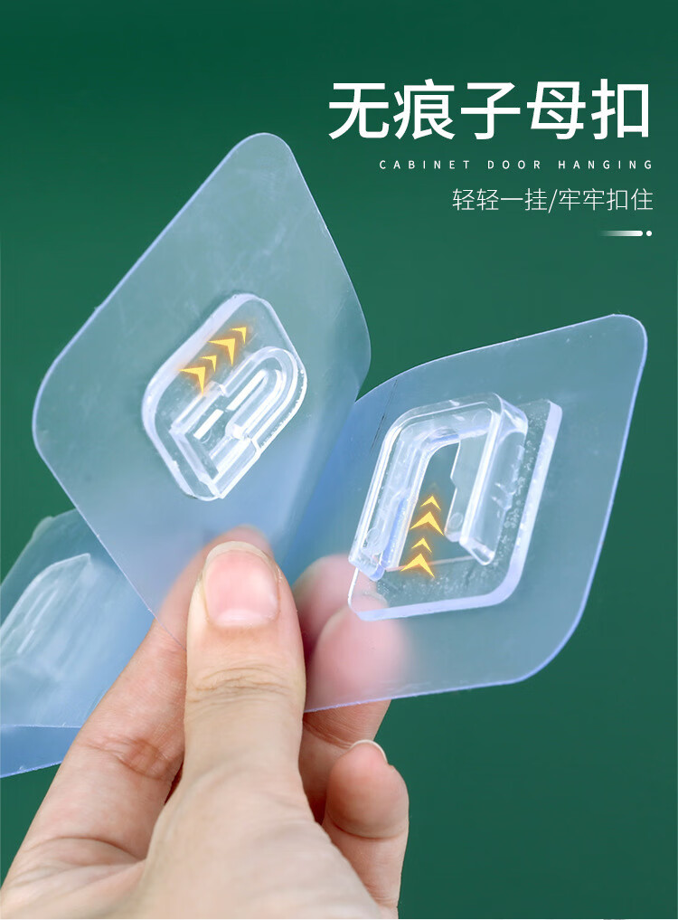 双层子母扣强力无痕置物架粘胶贴片多功能透明拉丝挂钩卡扣U型扣 双排子母扣【2套】
