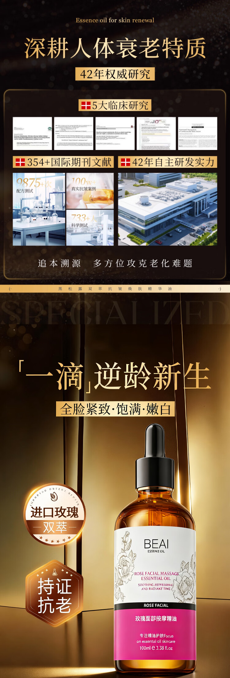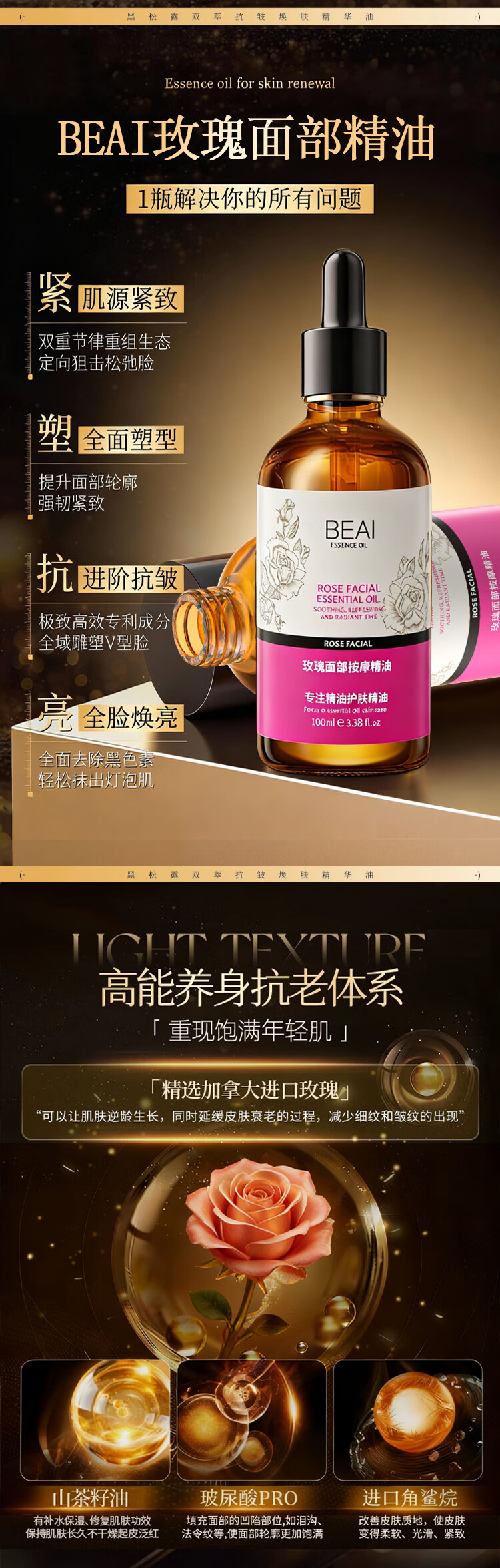 BEAI玫瑰精油面部精华油紧致抗皱淡脸眼纹去黄提亮油养肤按摩女100ml