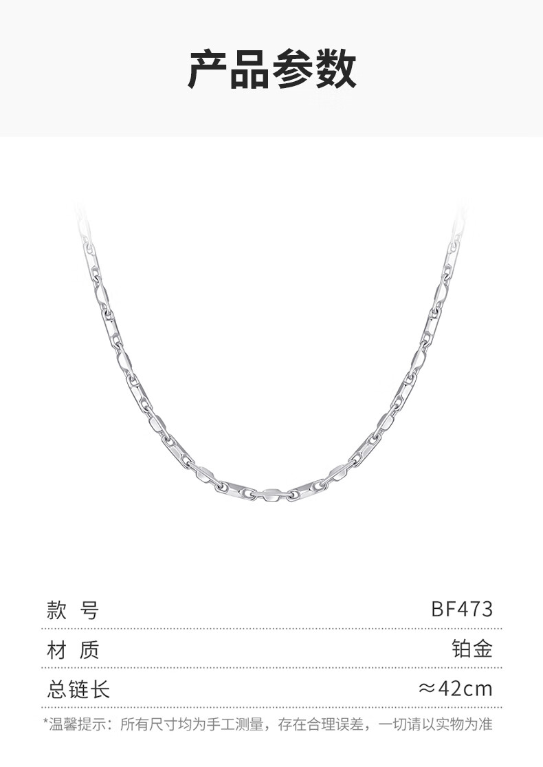 谢瑞麟(TSL)新年礼物铂金项链简约Pt铂金四角八角素链女士锁骨链BF473