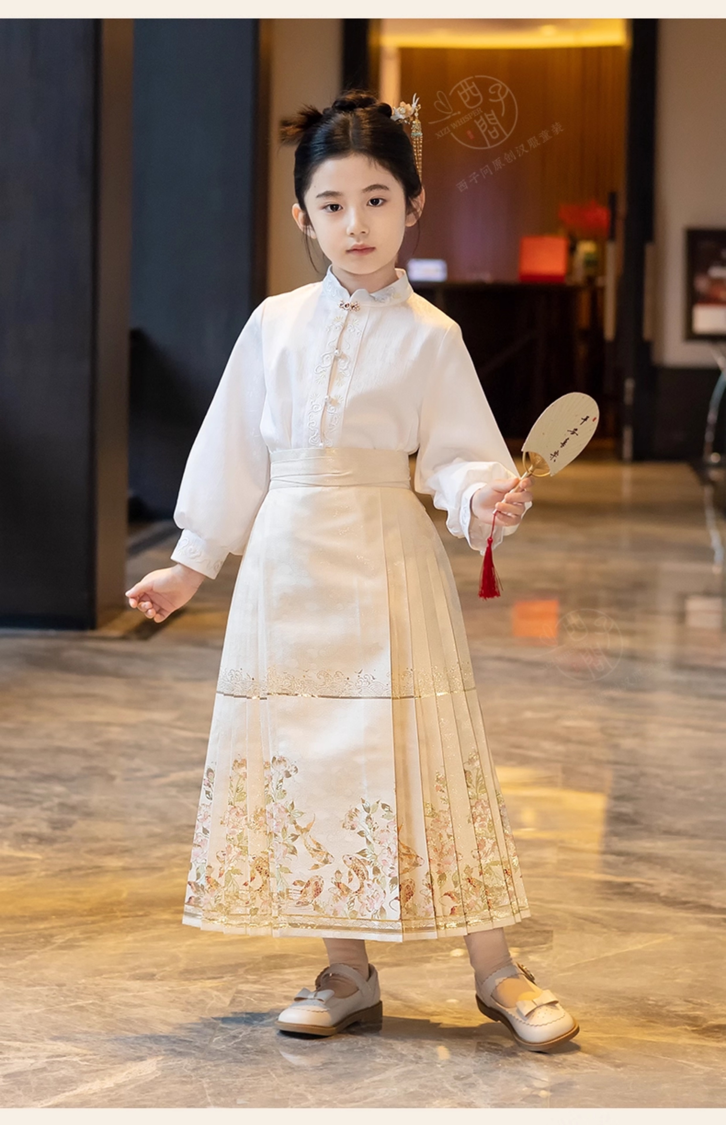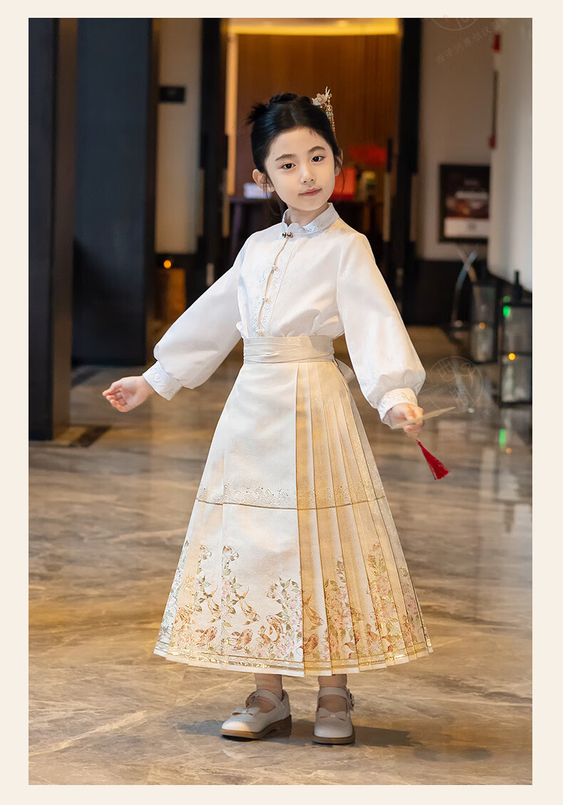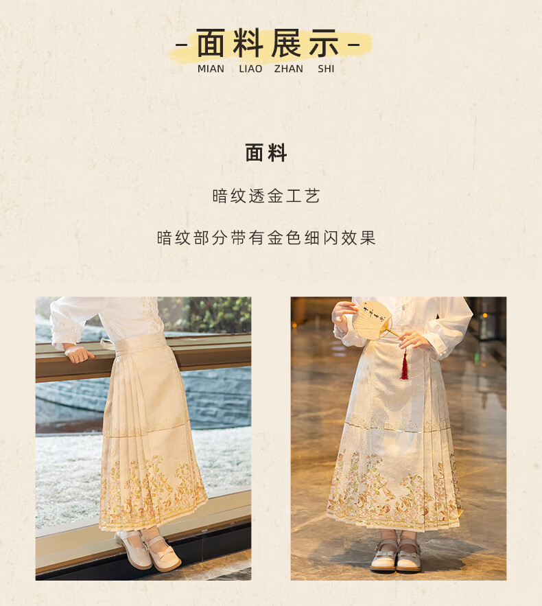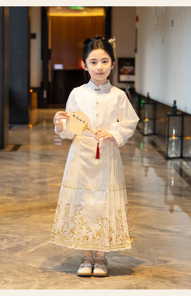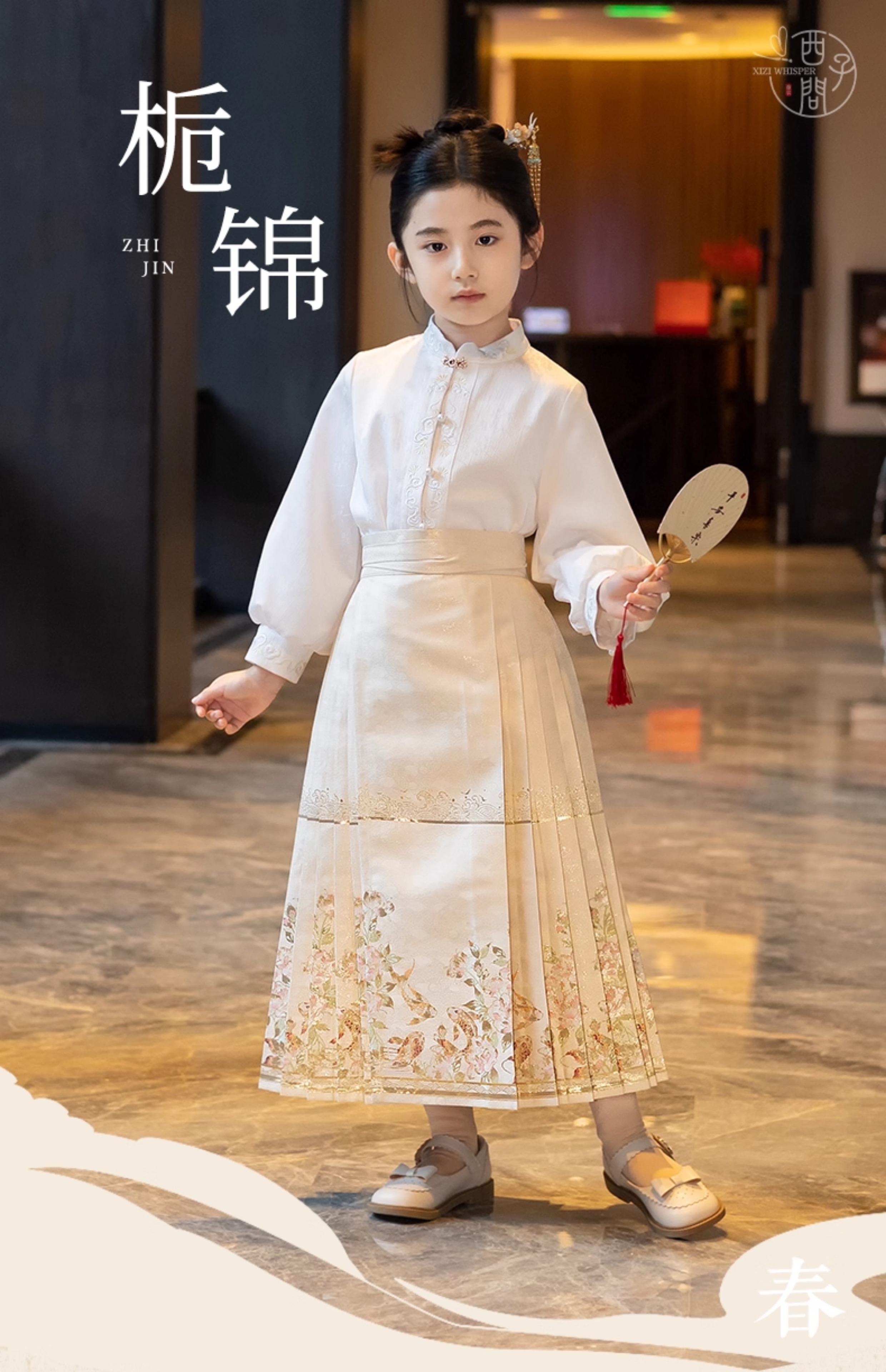 西子问西子问马面裙【栀锦】中国风女童汉服春款古风儿童仿妆花织金裙子 栀锦 100