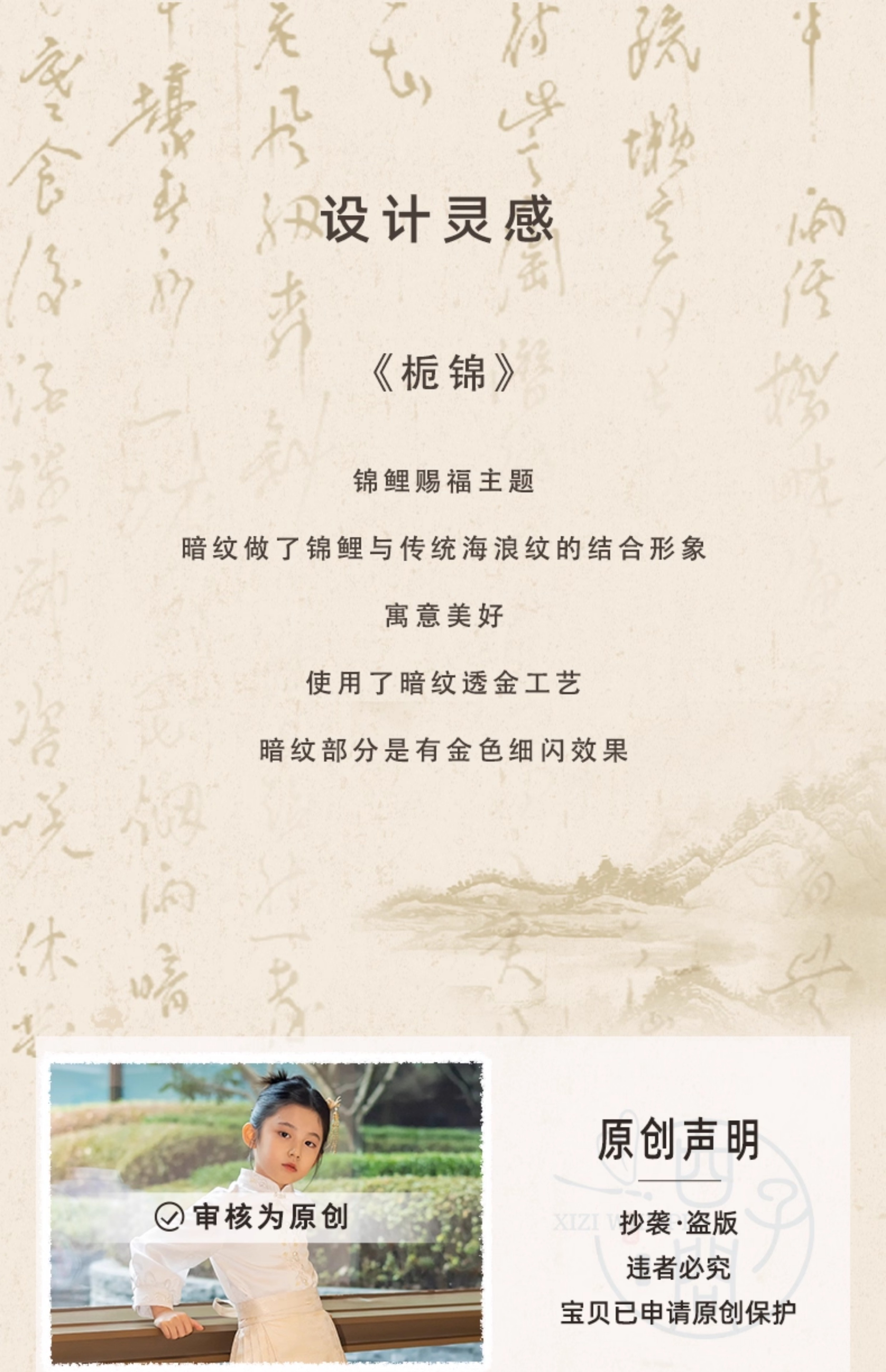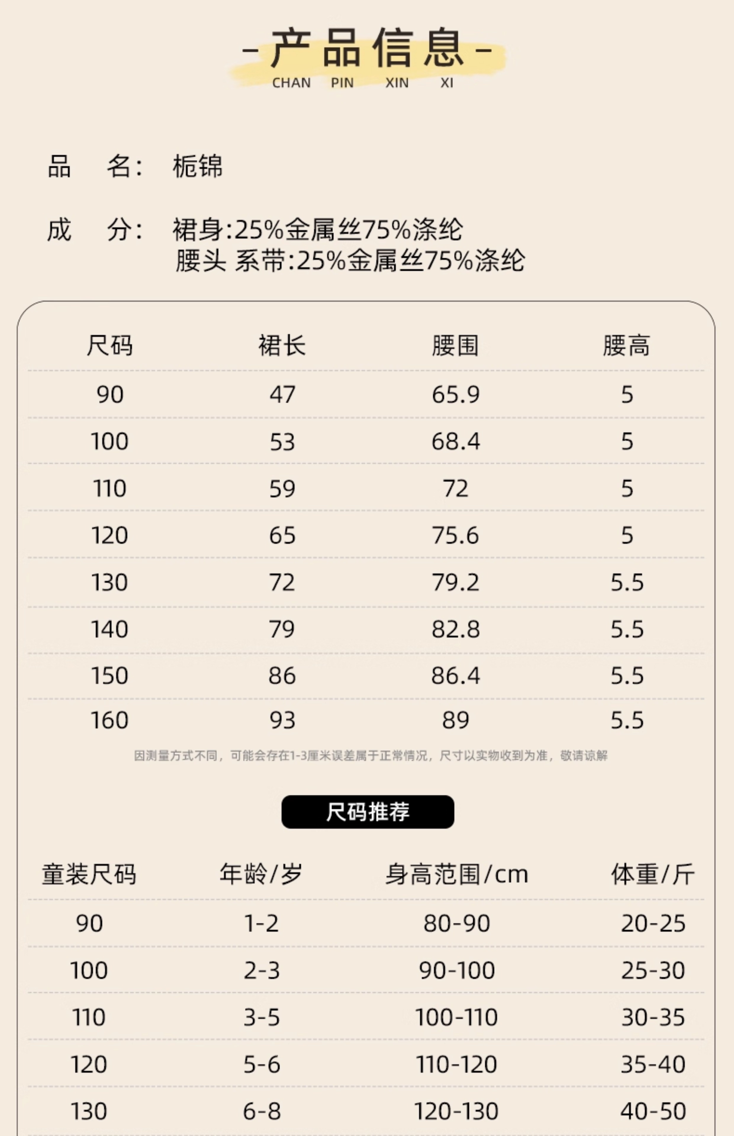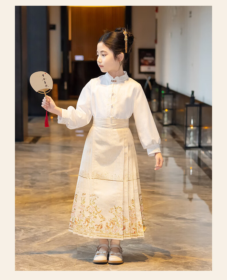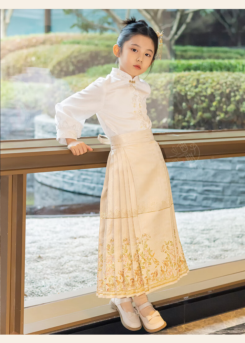 西子问西子问马面裙【栀锦】中国风女童汉服春款古风儿童仿妆花织金裙子 栀锦 100