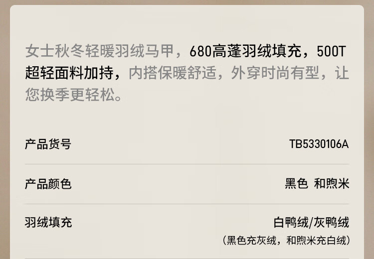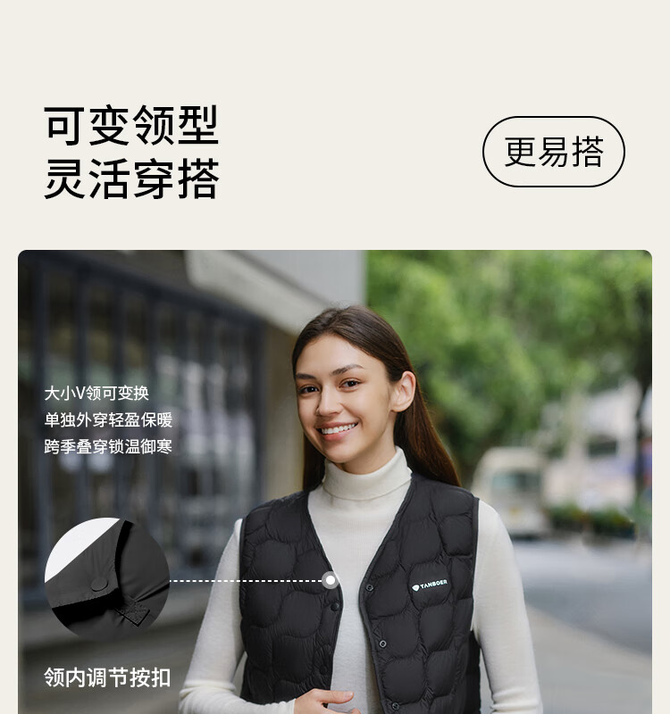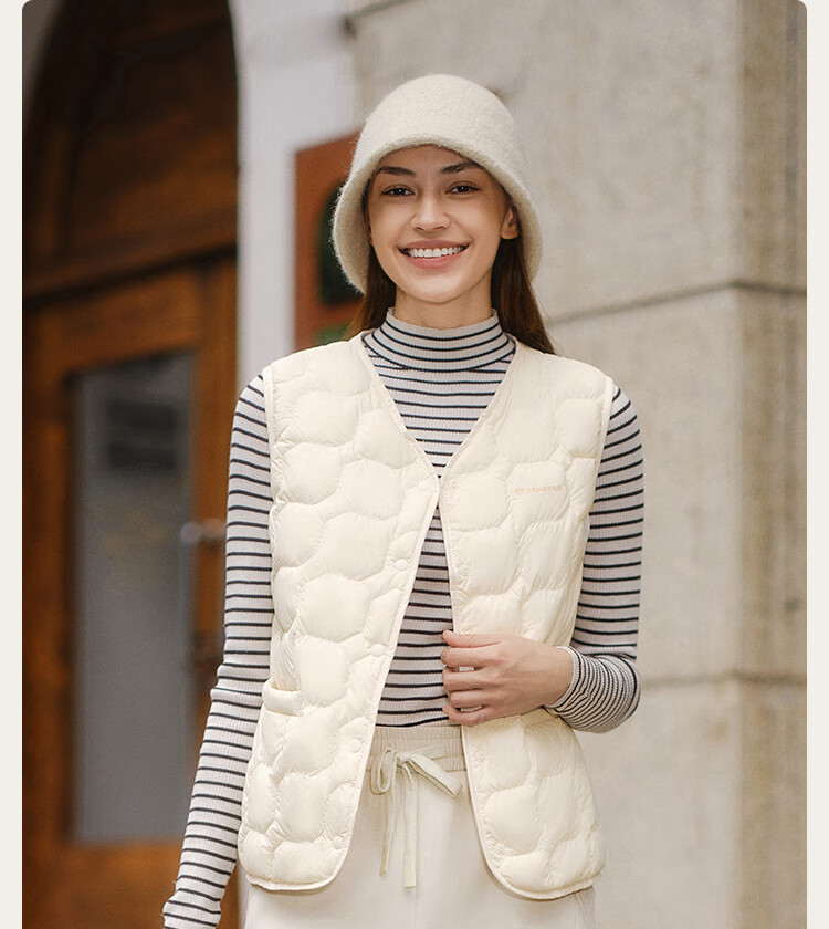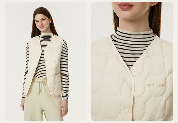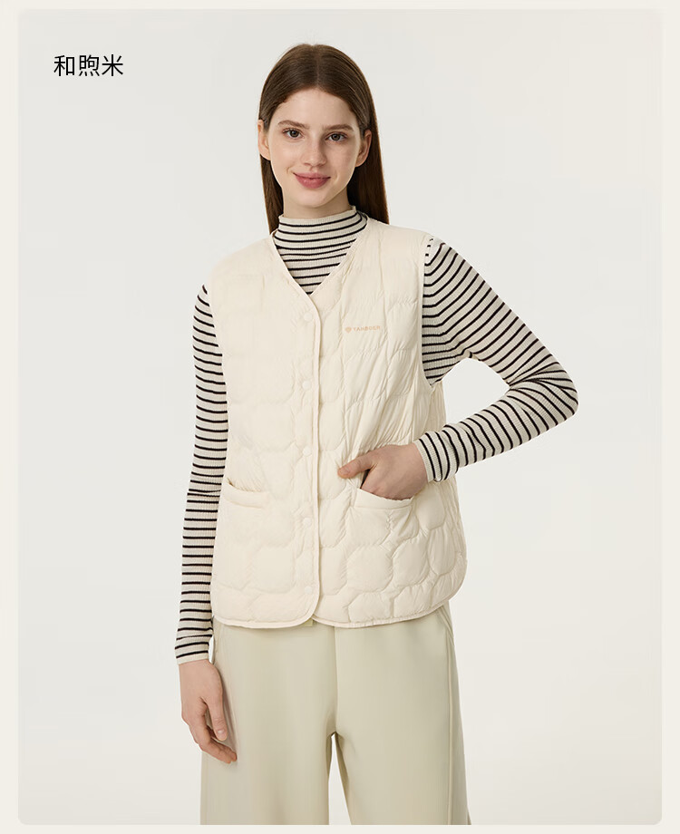 坦博尔羽绒马甲女2025年新款轻薄羽绒服背心内胆马夹无袖外套TB5330106A 和煦米 M (165)