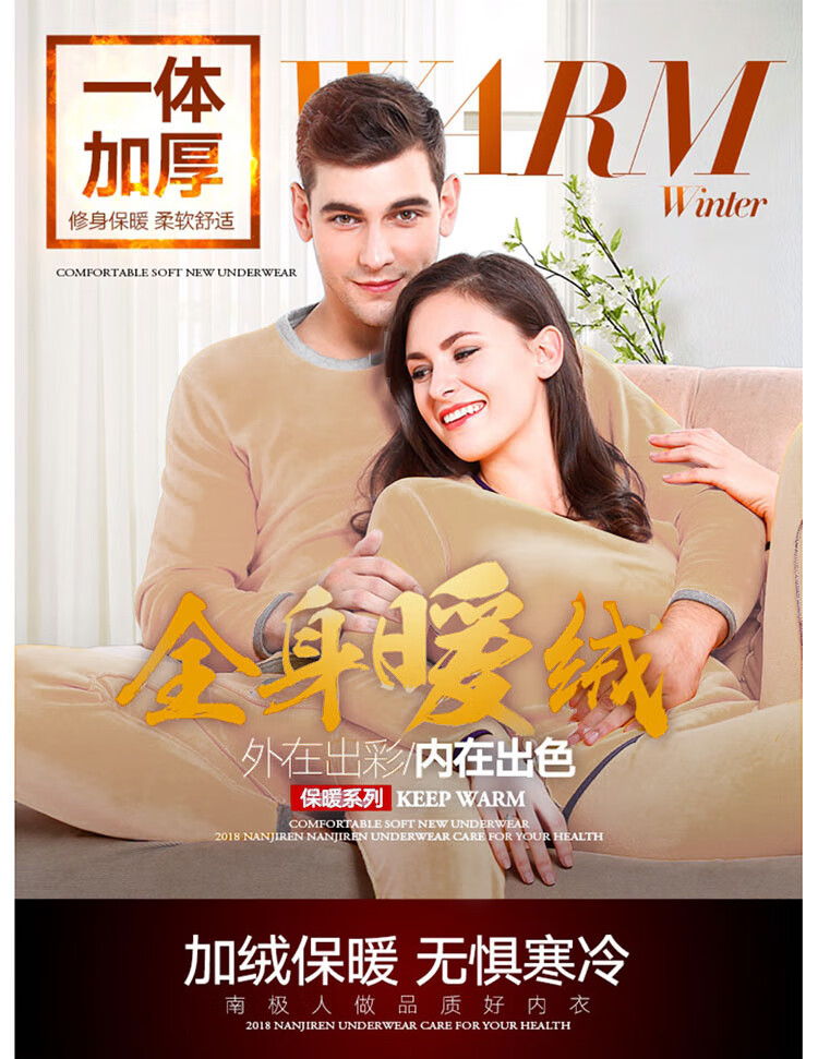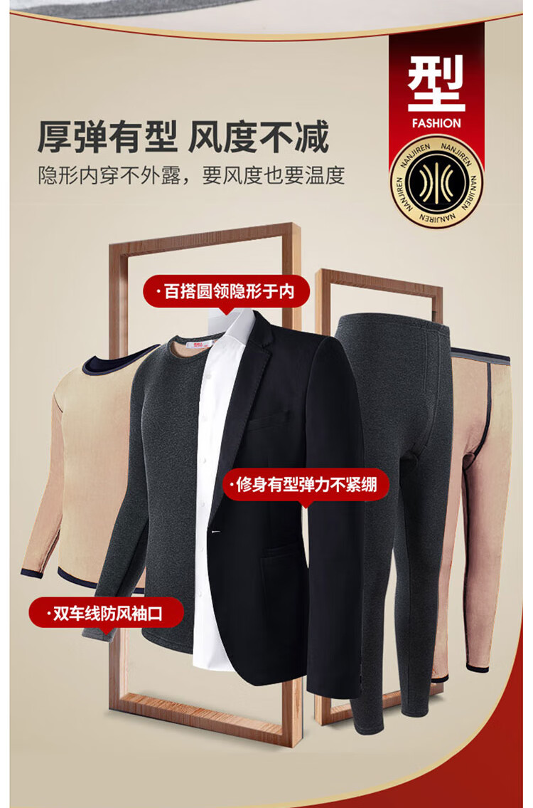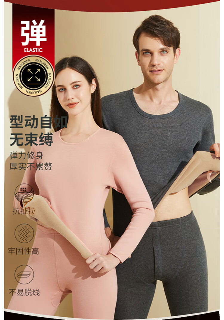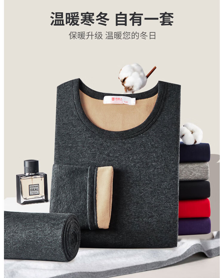 南极人男士保暖内衣男加绒加厚套装秋衣秋裤防寒棉柔打底保暖衣裤黑色XL