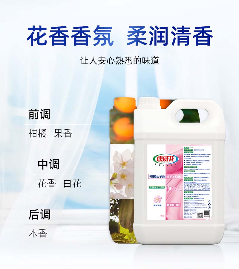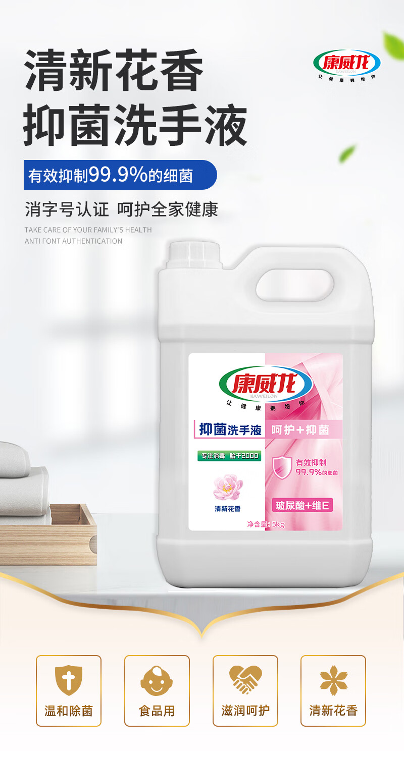 康威龙花香杀菌洗手液5KG大桶香氛母婴可用消字号清洁必备 【抑菌25年热卖款】5kg装花香