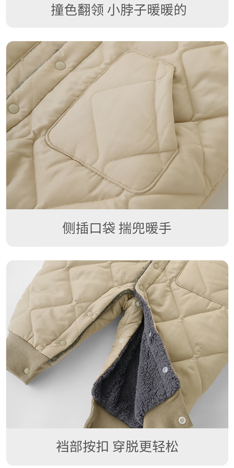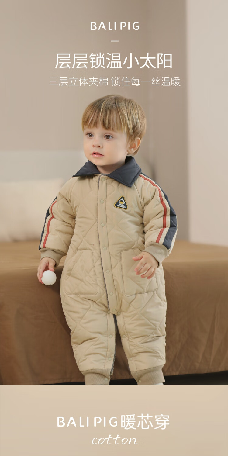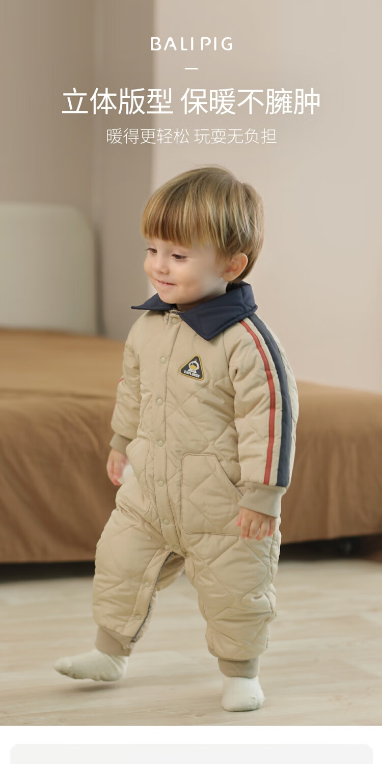 巴厘小猪男宝宝冬装棉衣加厚保暖棉袄超洋气秋冬夹棉衣服冬季婴幼儿外出服 米卡其 80cm