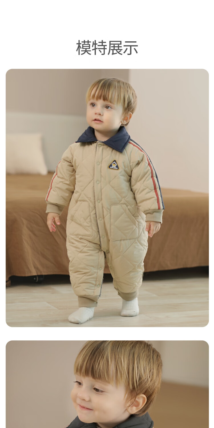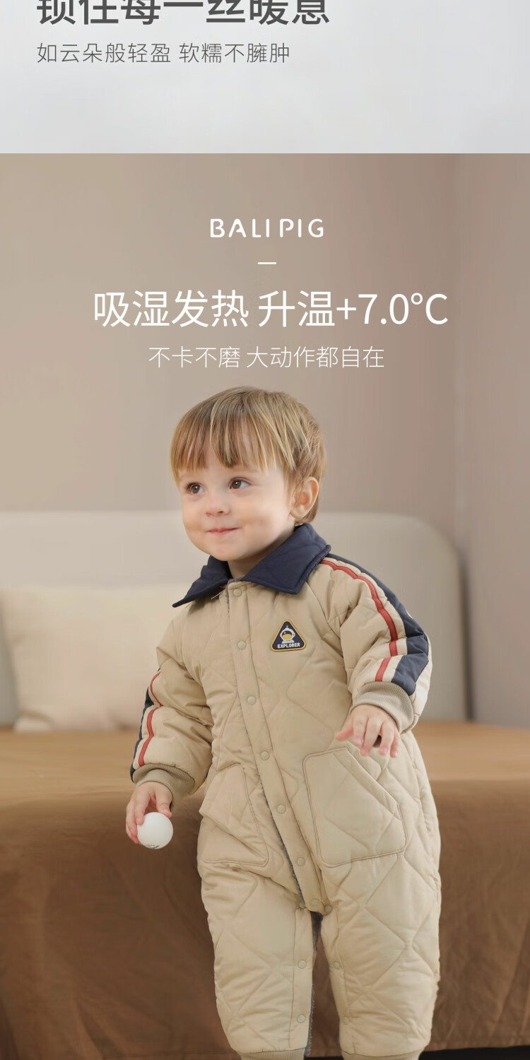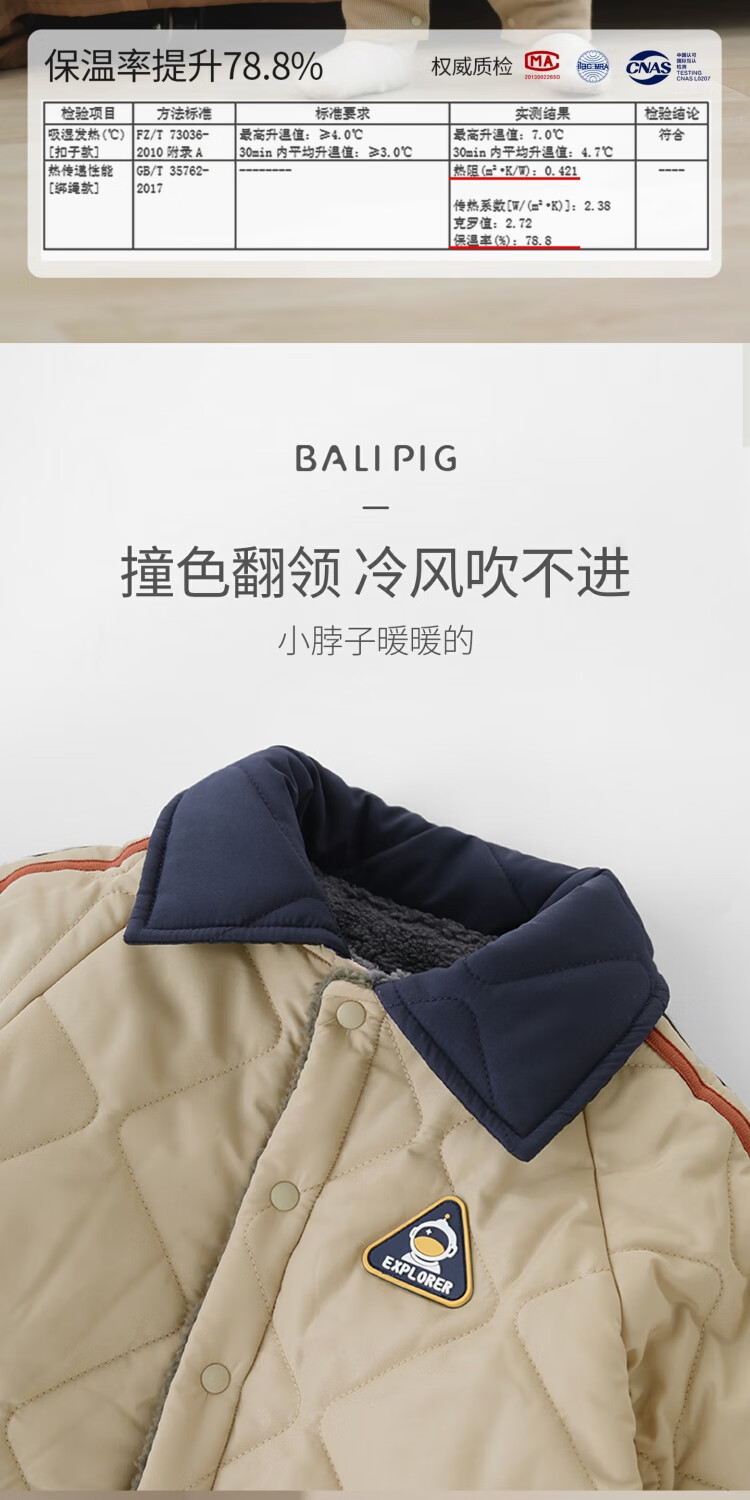 巴厘小猪男宝宝冬装棉衣加厚保暖棉袄超洋气秋冬夹棉衣服冬季婴幼儿外出服 米卡其 80cm