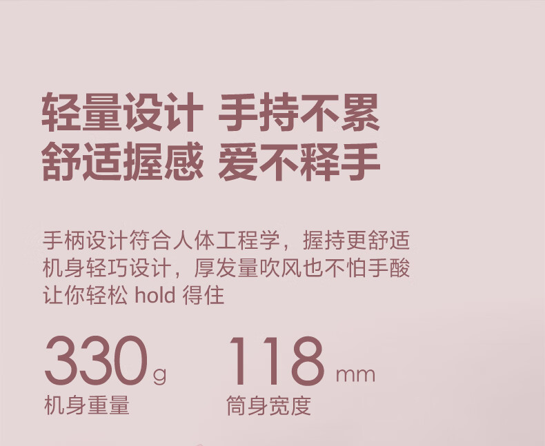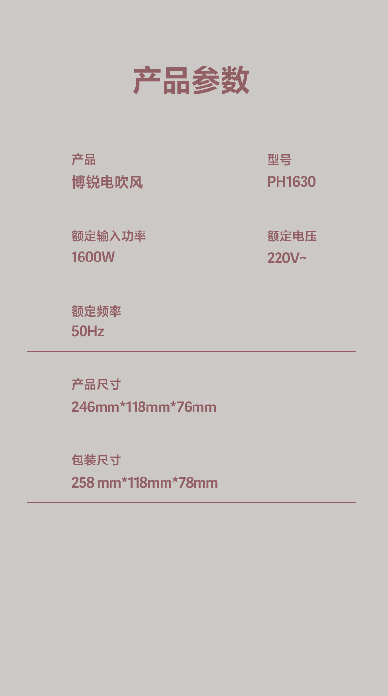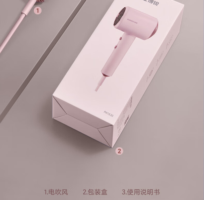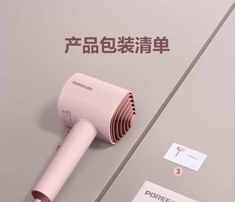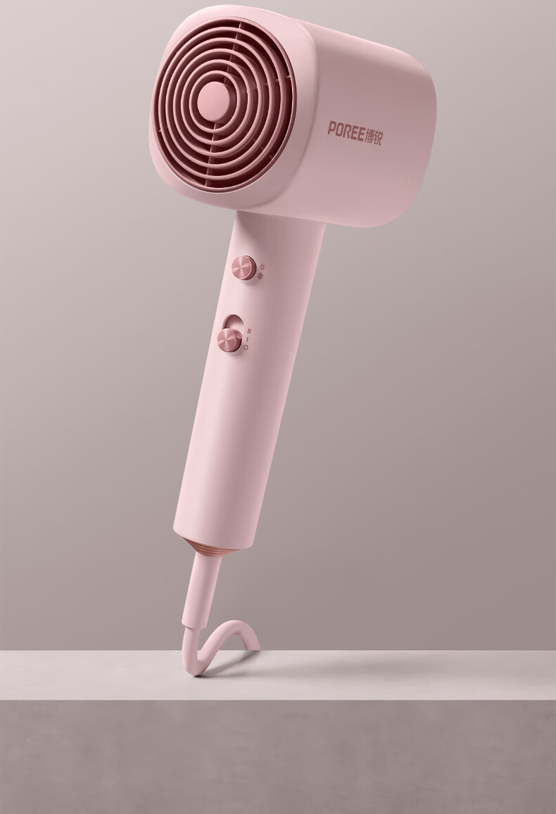 博锐(POREE)电吹风家用柔风1600W大功率冷热大风吹风筒恒温护发低噪快速干发送女友节日生日新年礼物 少女粉PH1630