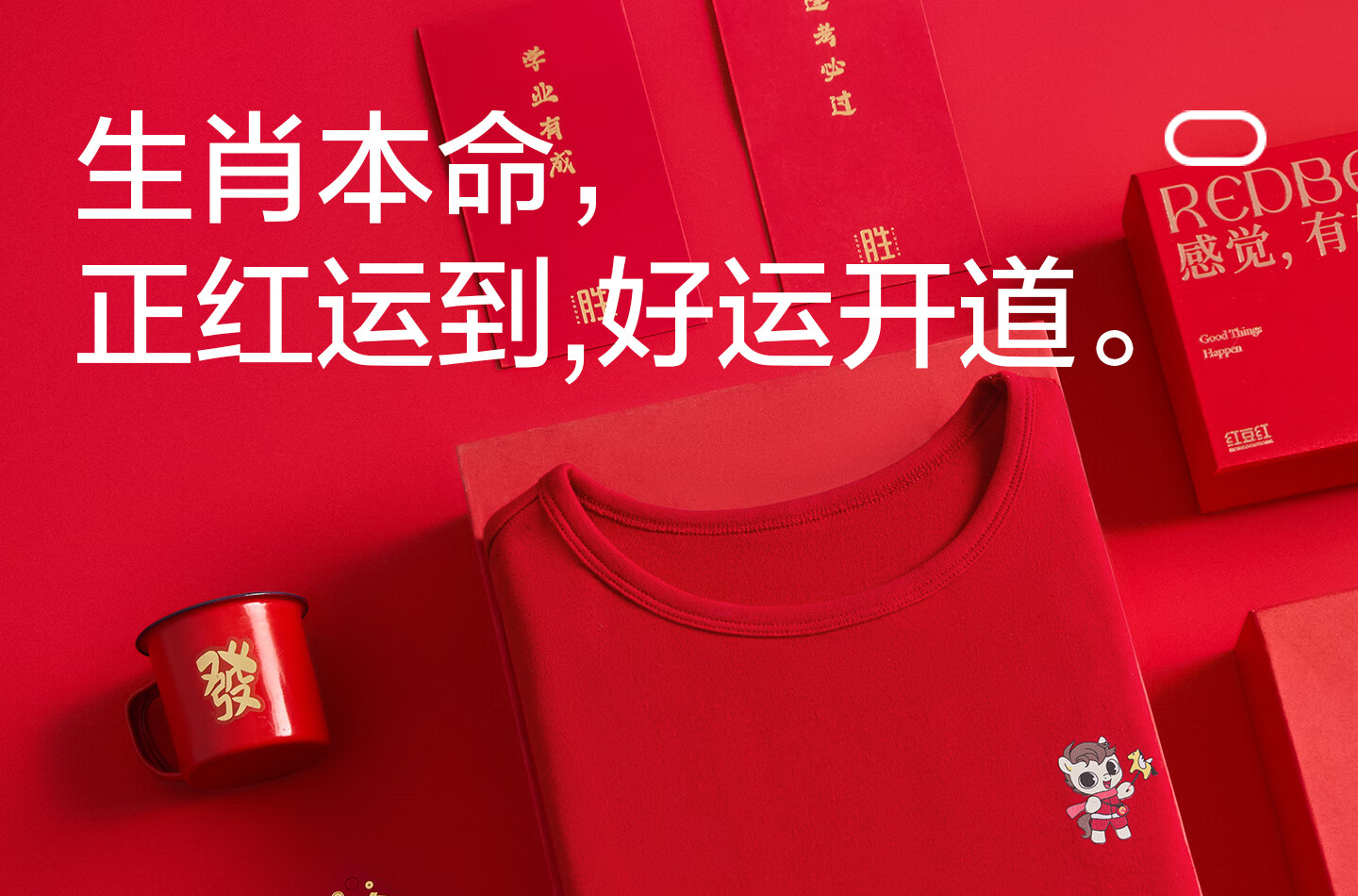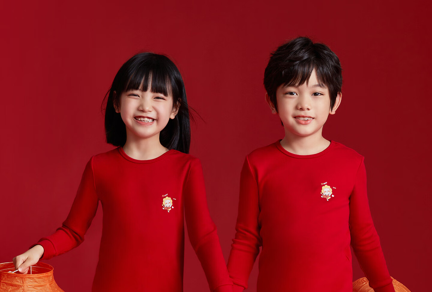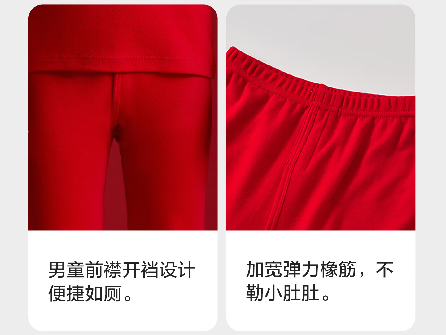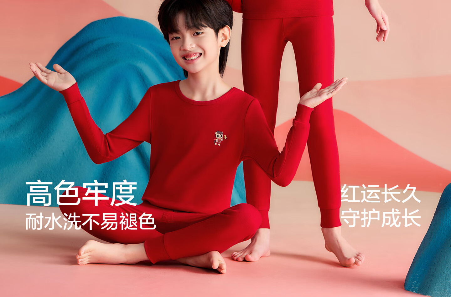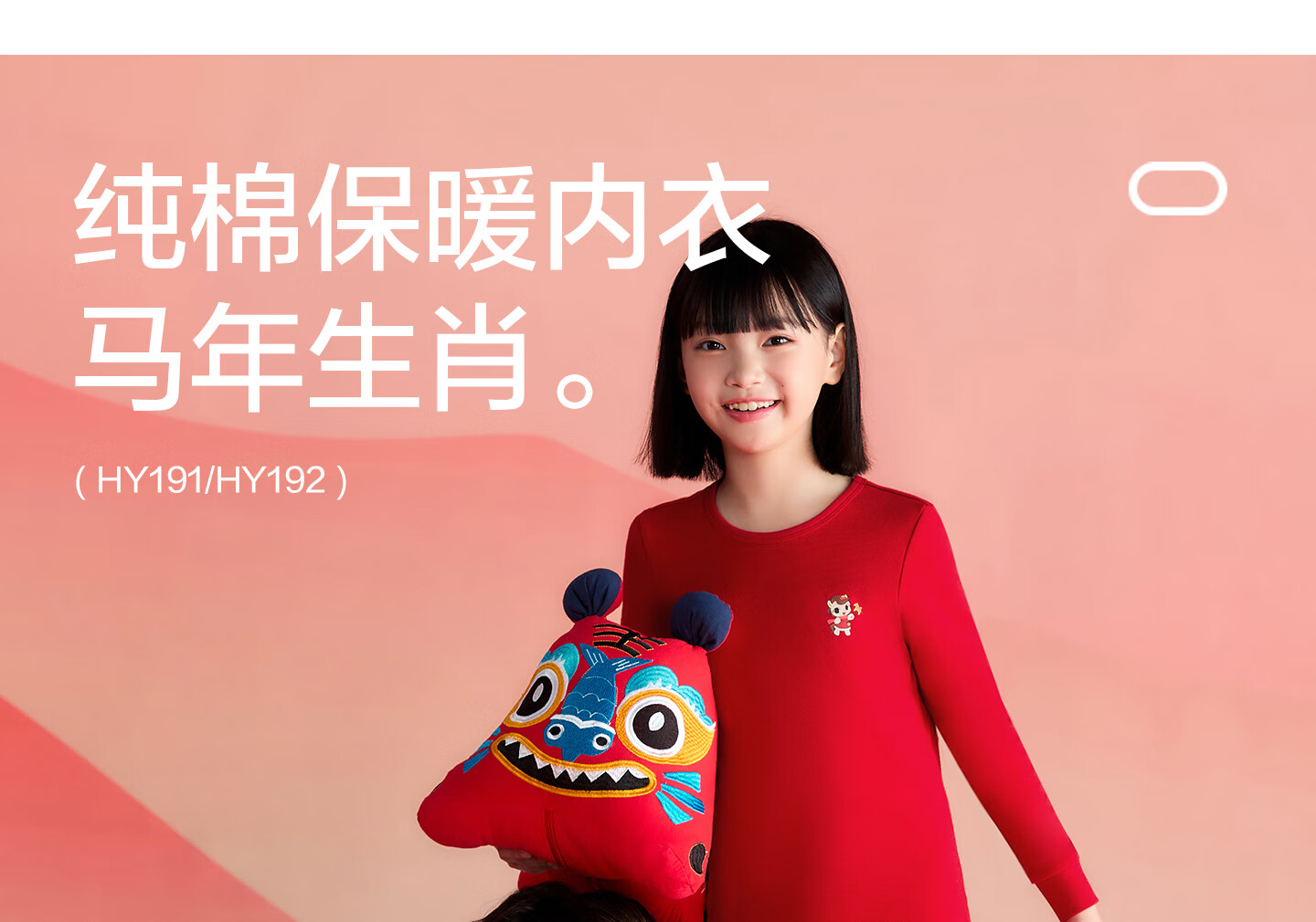 红豆(Hodo)儿童纯棉秋衣秋裤马年红色内衣本命年骐骥红学生保暖组合套装 男童马上有福 160
