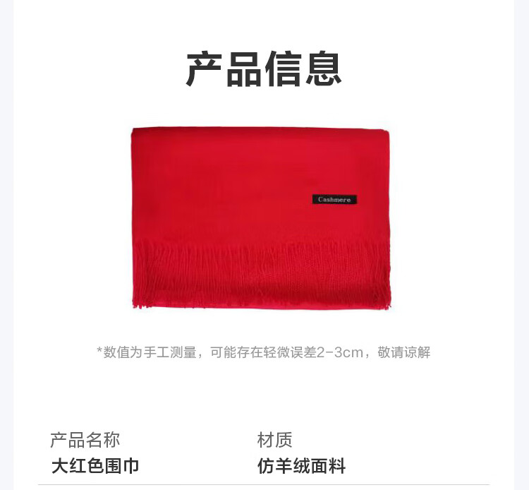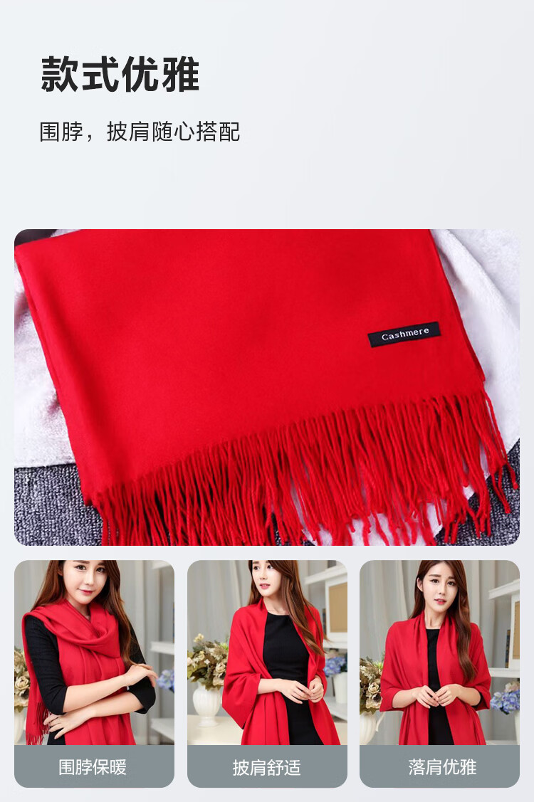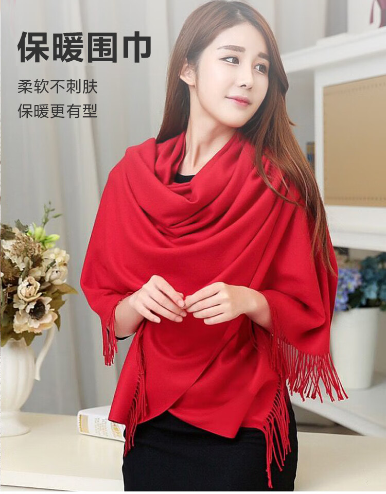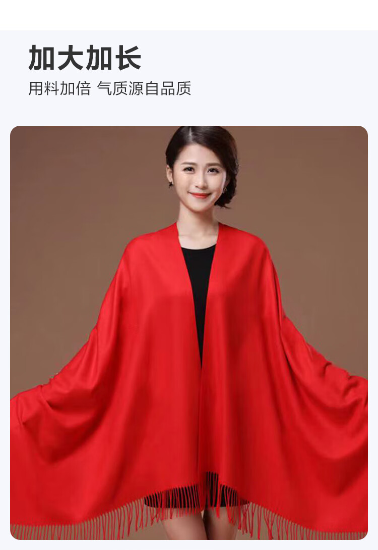 【万茜春晚同款】围巾女冬款网红披肩两用百搭加厚仿羊绒纯色围巾 红色 200克