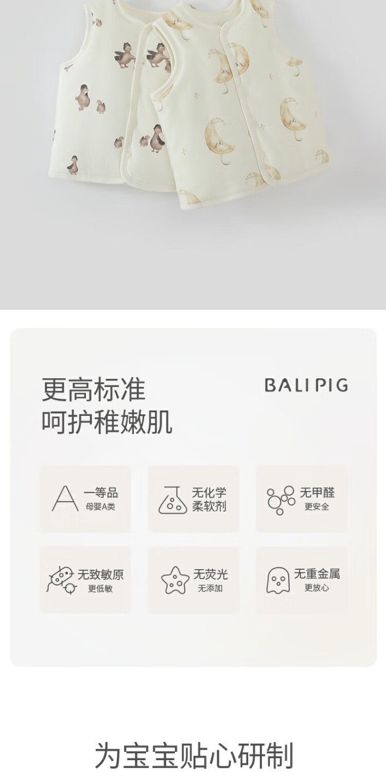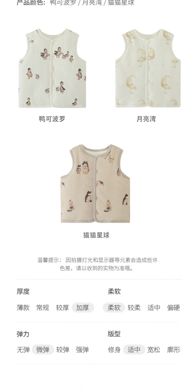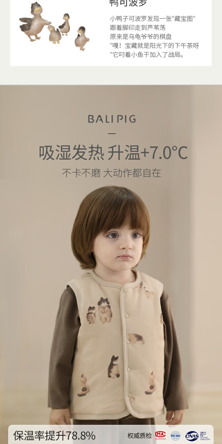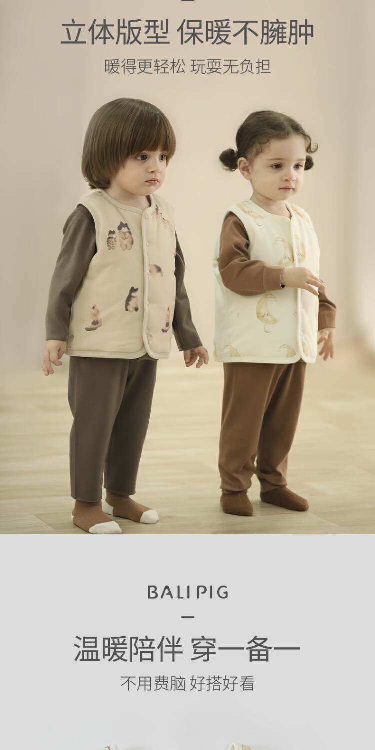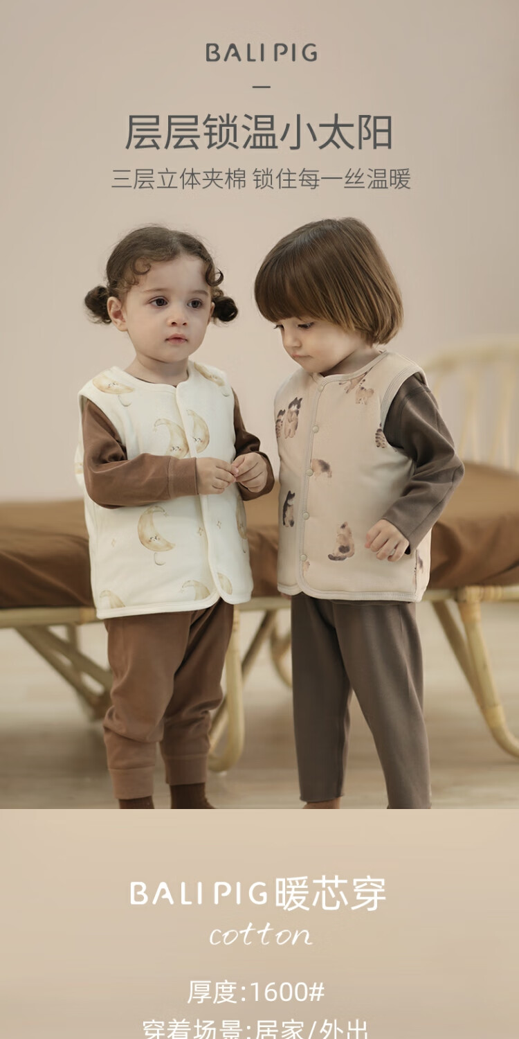 巴厘小猪儿童夹棉马甲秋冬加厚保暖马夹婴儿上衣男童马褂女童坎肩宝宝背心 鸭可波罗 90