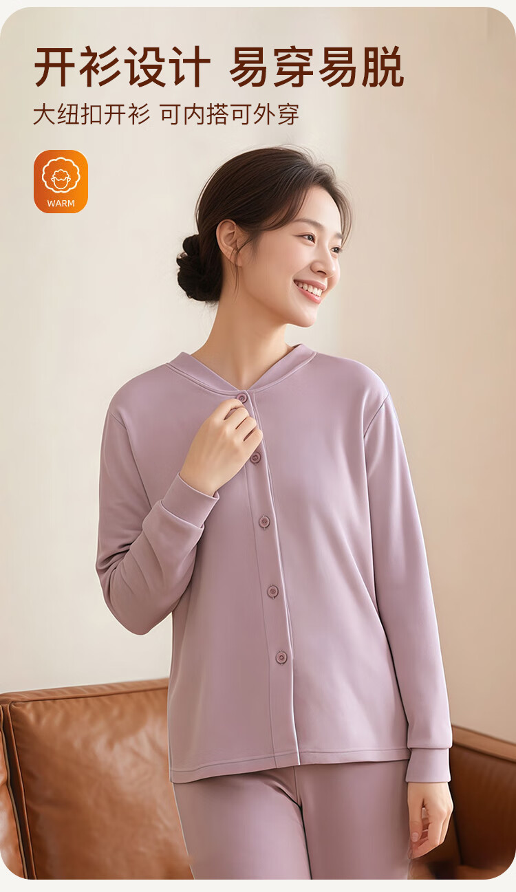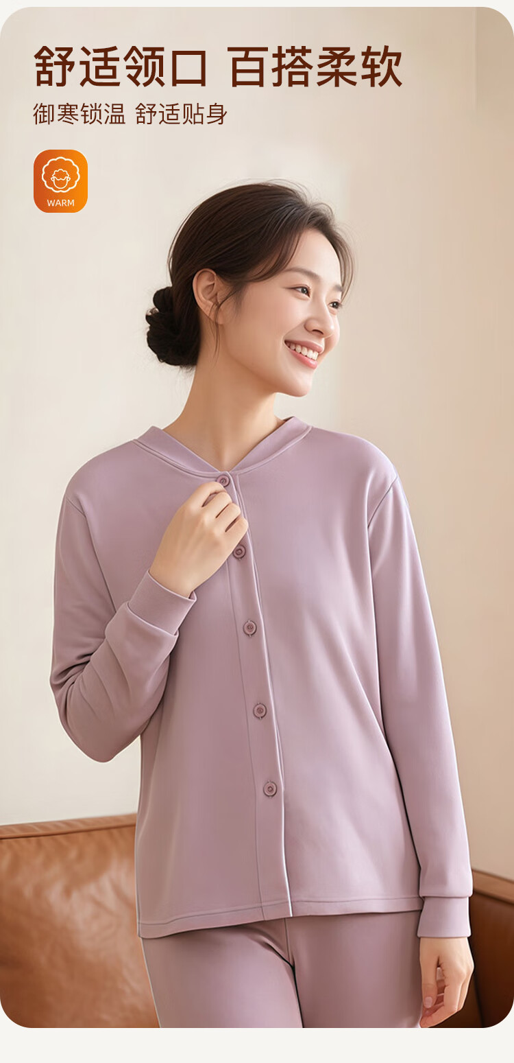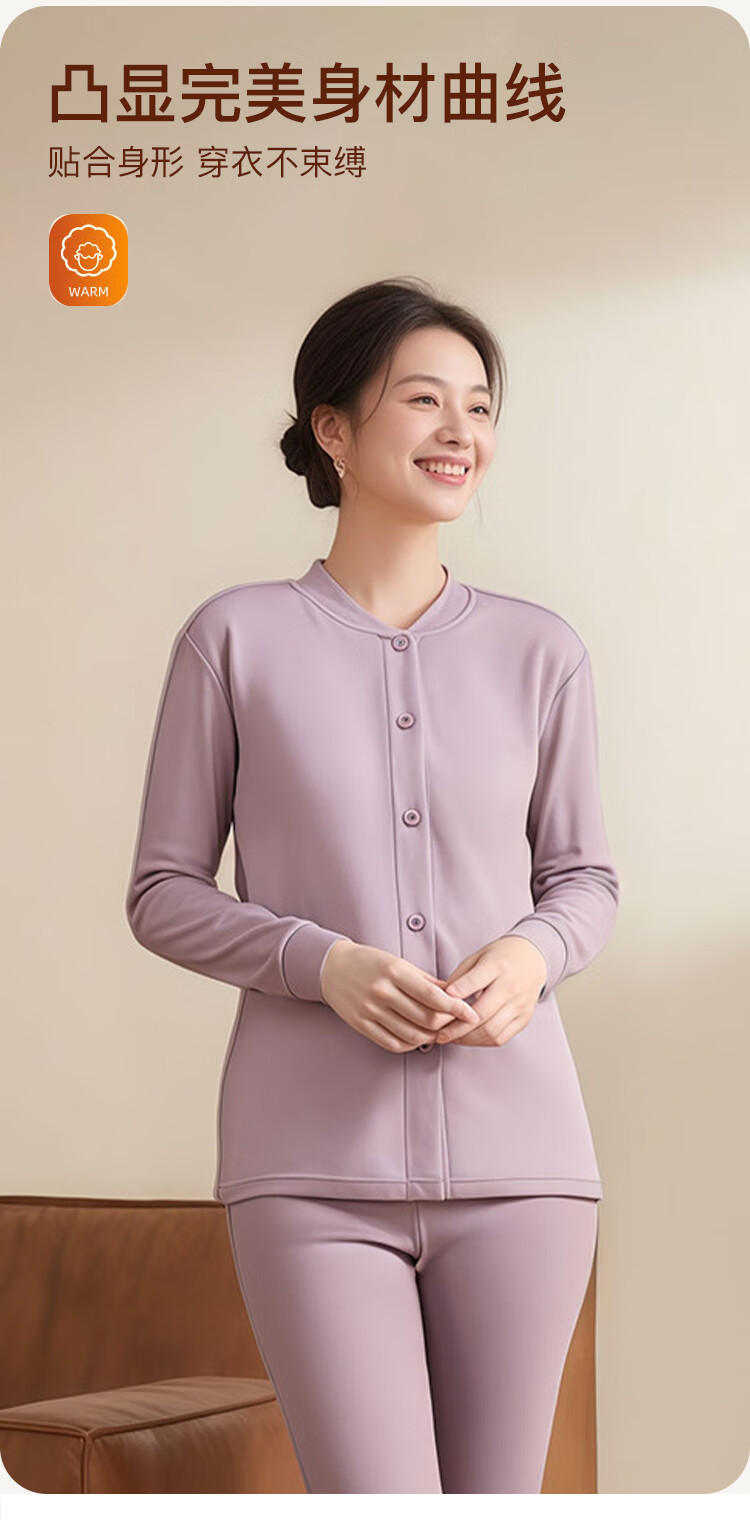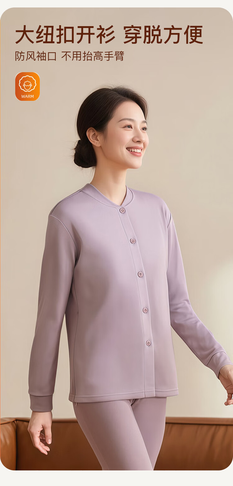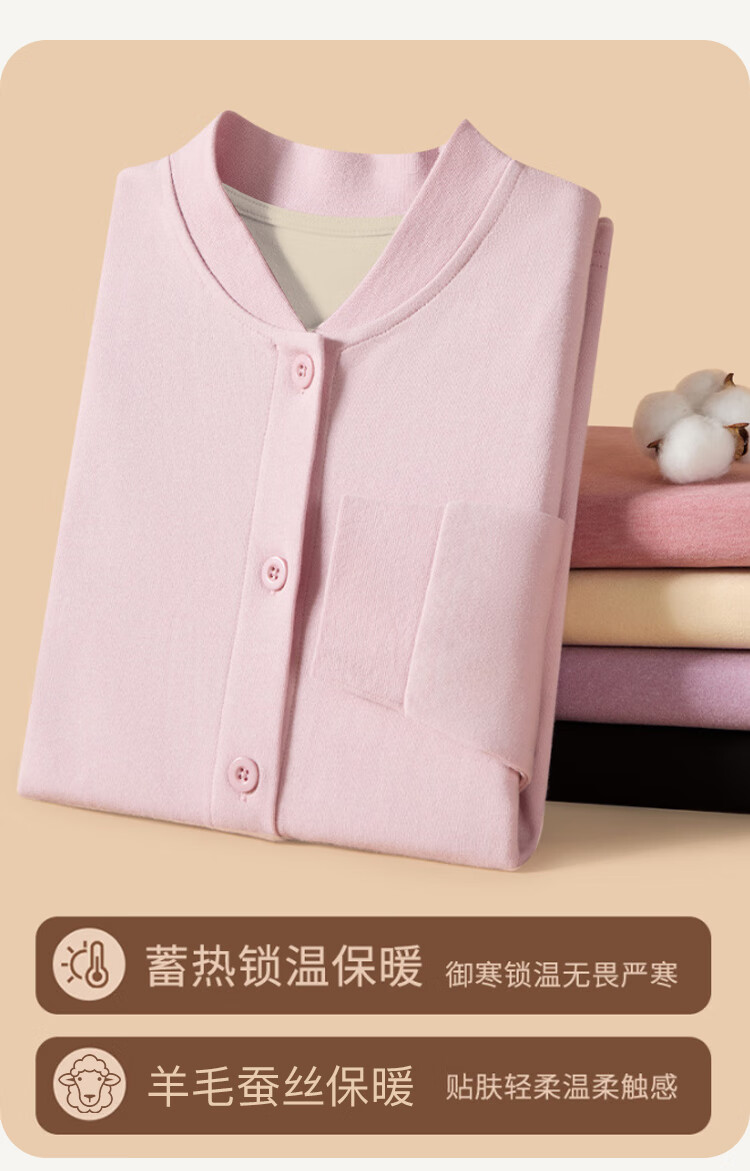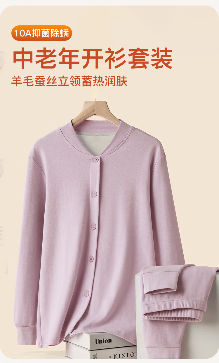 浪莎羊毛蚕丝保暖内衣女中老年妈妈秋冬磨绒开衫套装加绒加厚秋衣秋裤