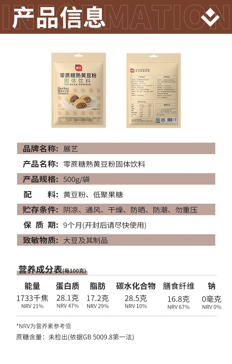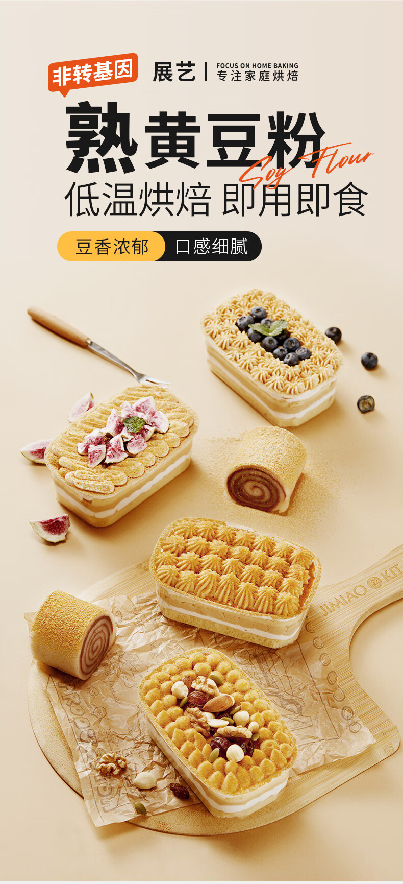 展艺无蔗糖熟黄豆粉500g糍粑年糕蘸料烧烤蘸料豆乳盒子驴打滚烘焙原料