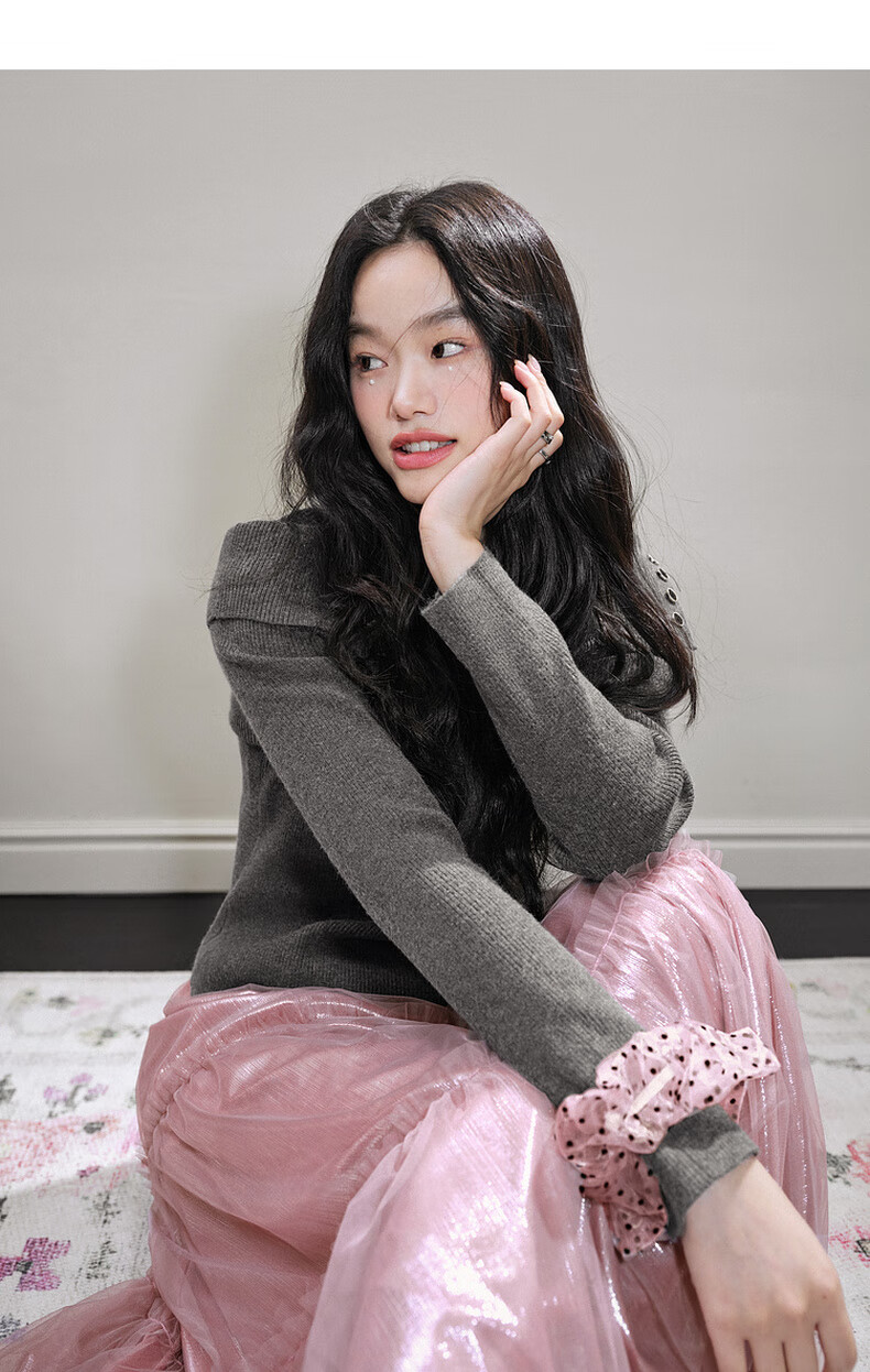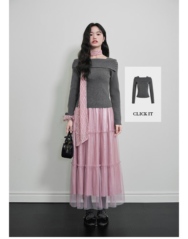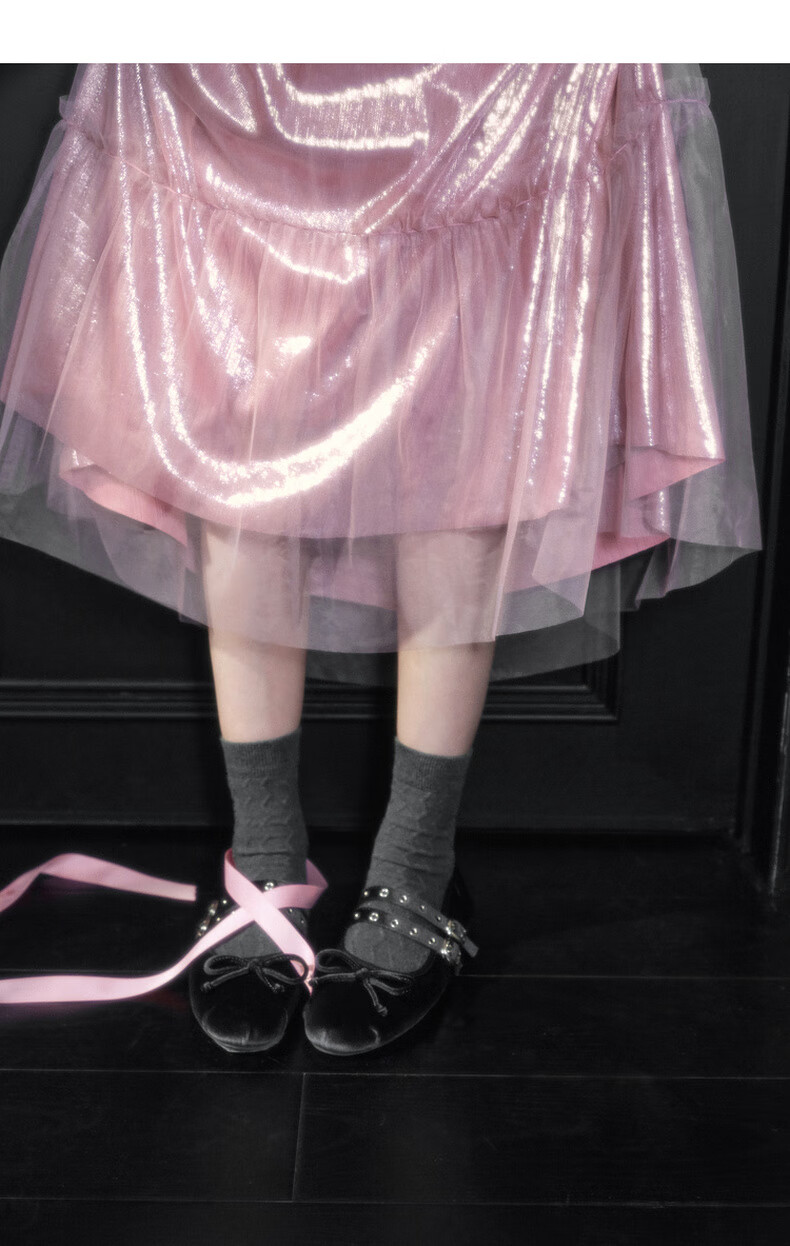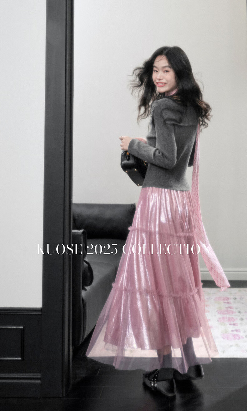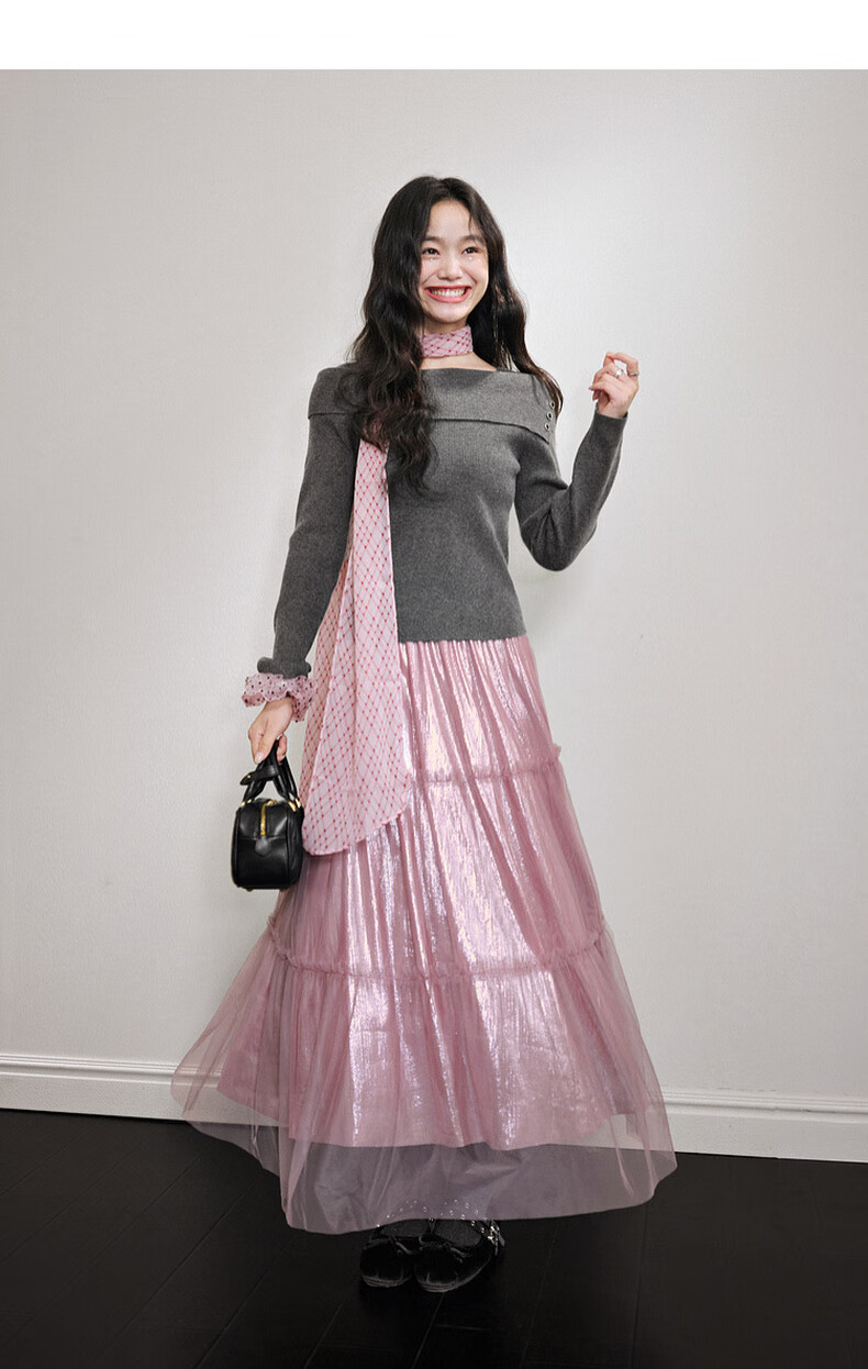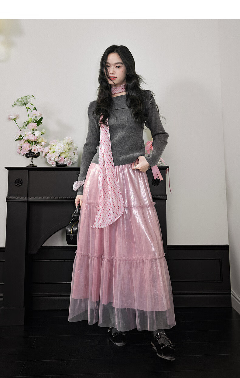 阔色粉色亮闪纱裙气质半身裙a字长裙子2025秋冬季新款女伞裙半裙 粉色 S